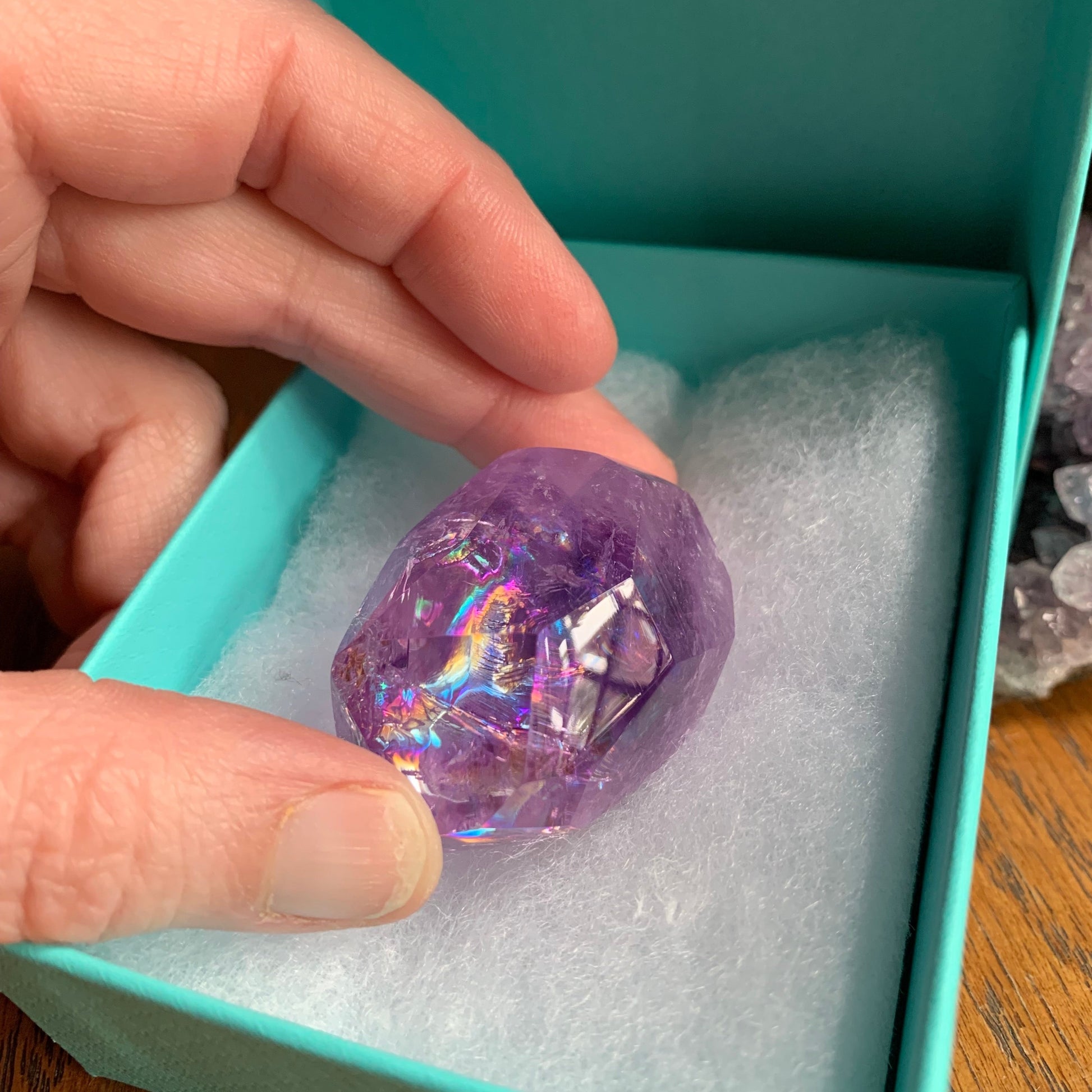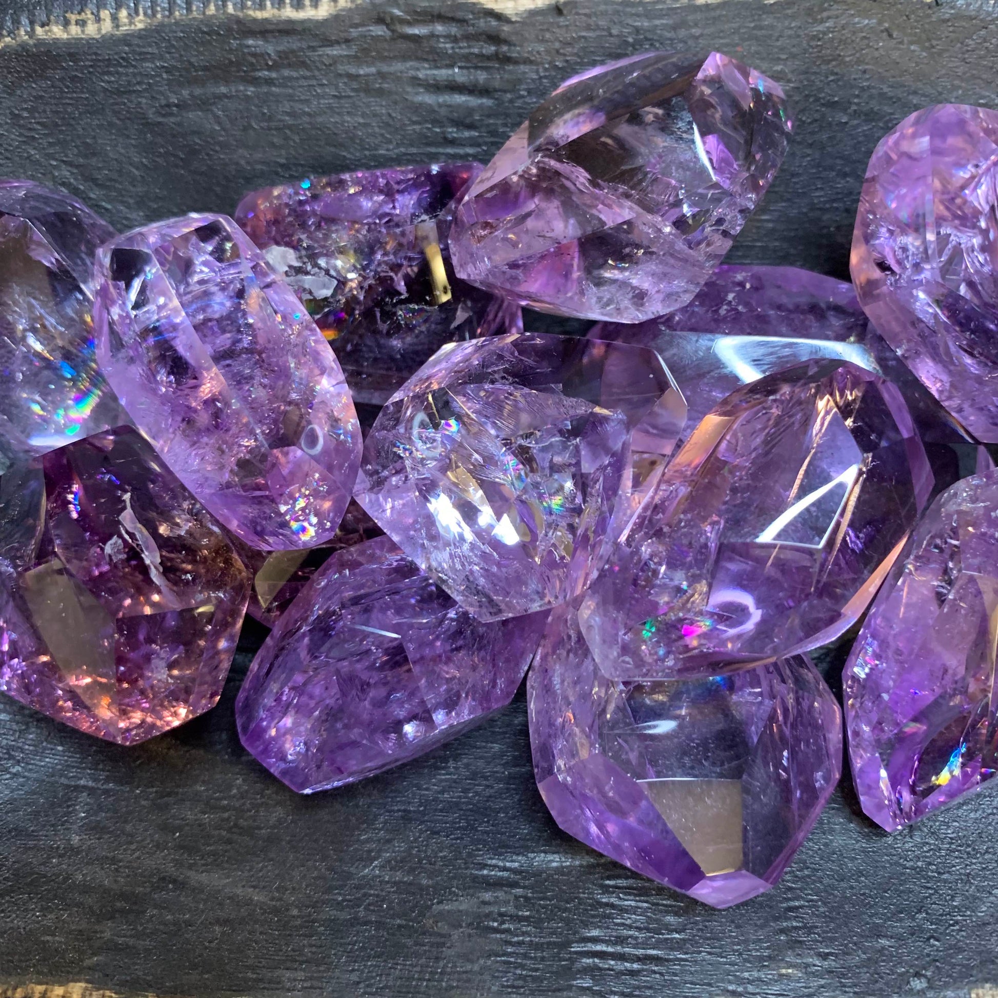 ACK! What can we say other than we are beyond excited to have gotten our little grips on these lovely, gorgeous, stunning, glamorous, mind-bogglingly breathtaking Amethyst Rainbow-Filled Freeforms that you won't want to put down. When you get your hands on them you will gasp.