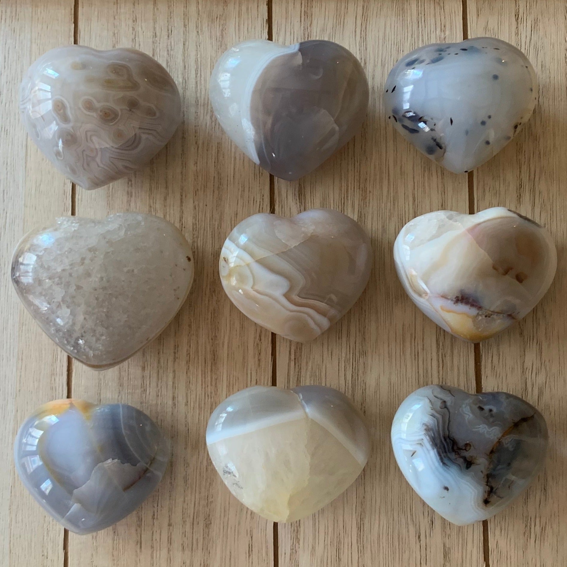 Puffy Agate Hearts. Some have dendrites and some have druzy.