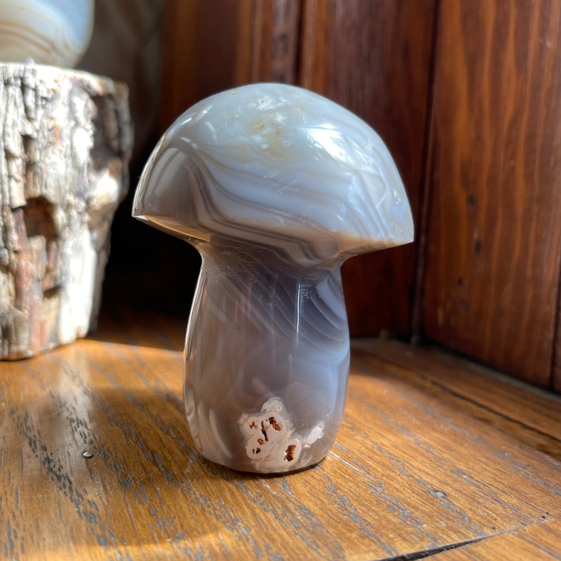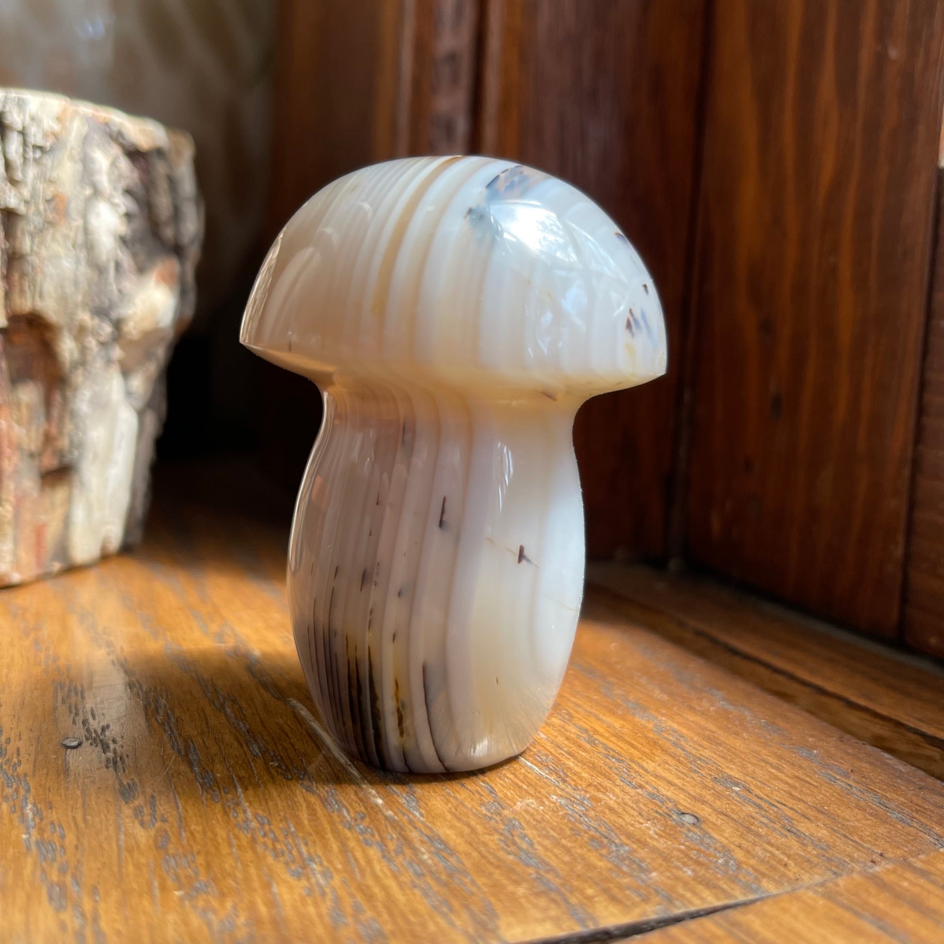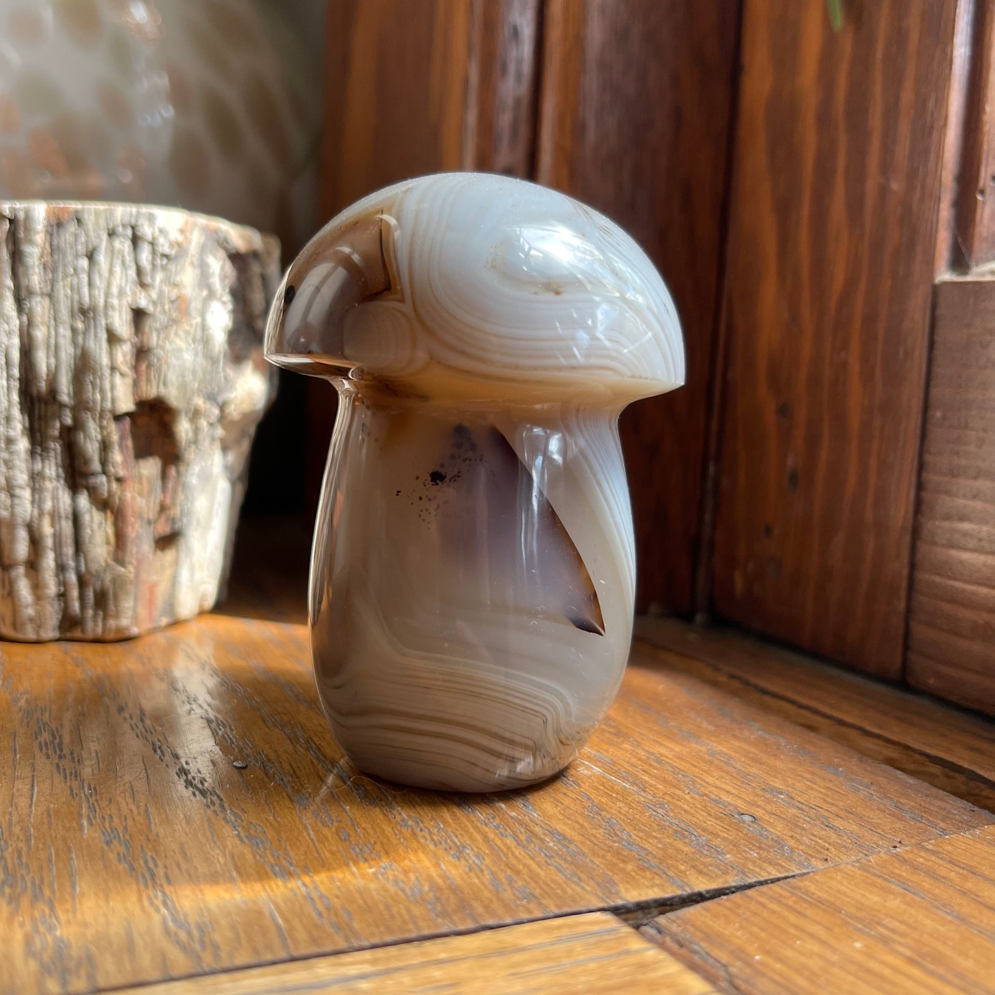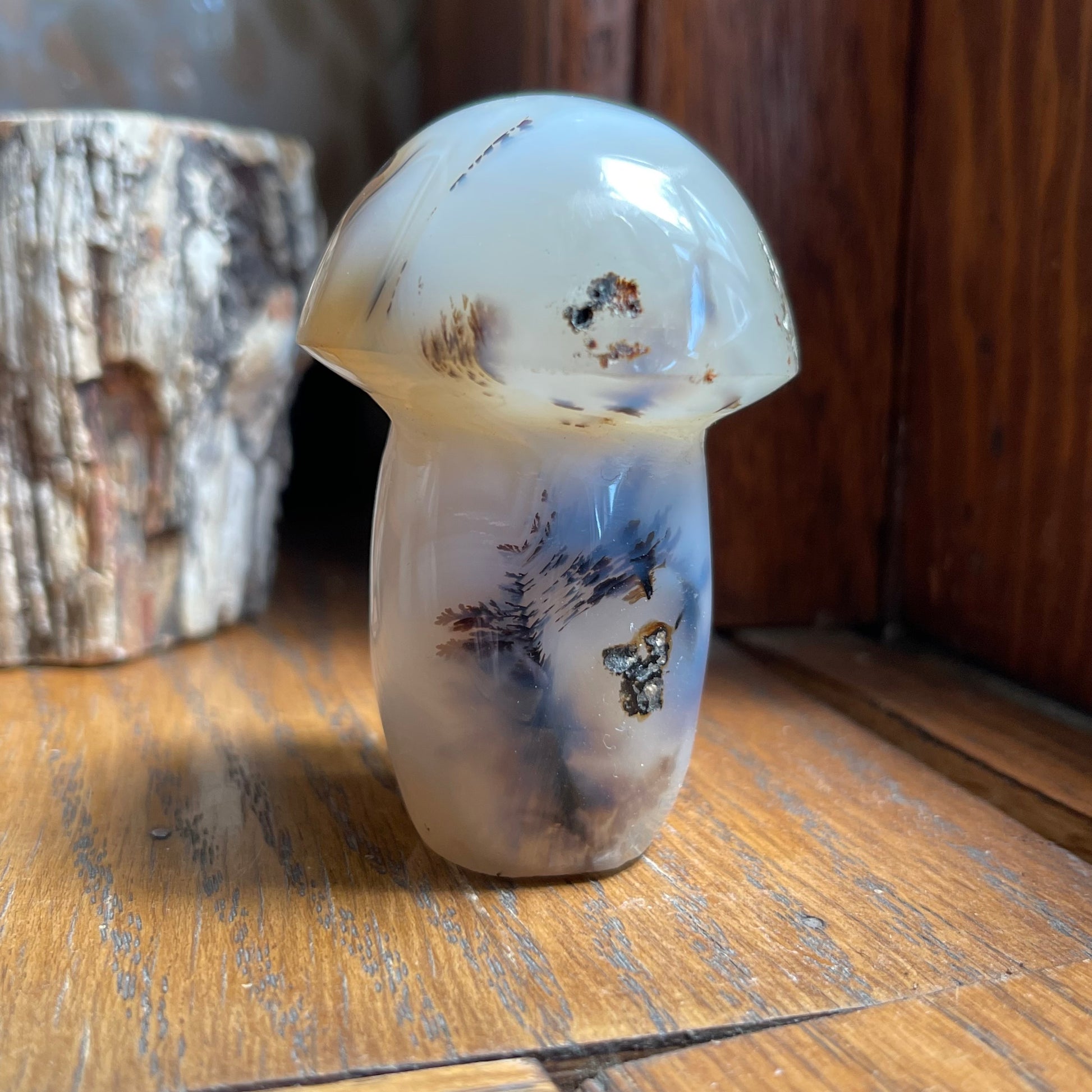 Agate Mushrooms are so much fun to have and they are lovely to put in your plants or garden! Each one of them are unique, with banding, caves, druzy, dendrites...you name it! They all are approx. 2.5" - 3" h.