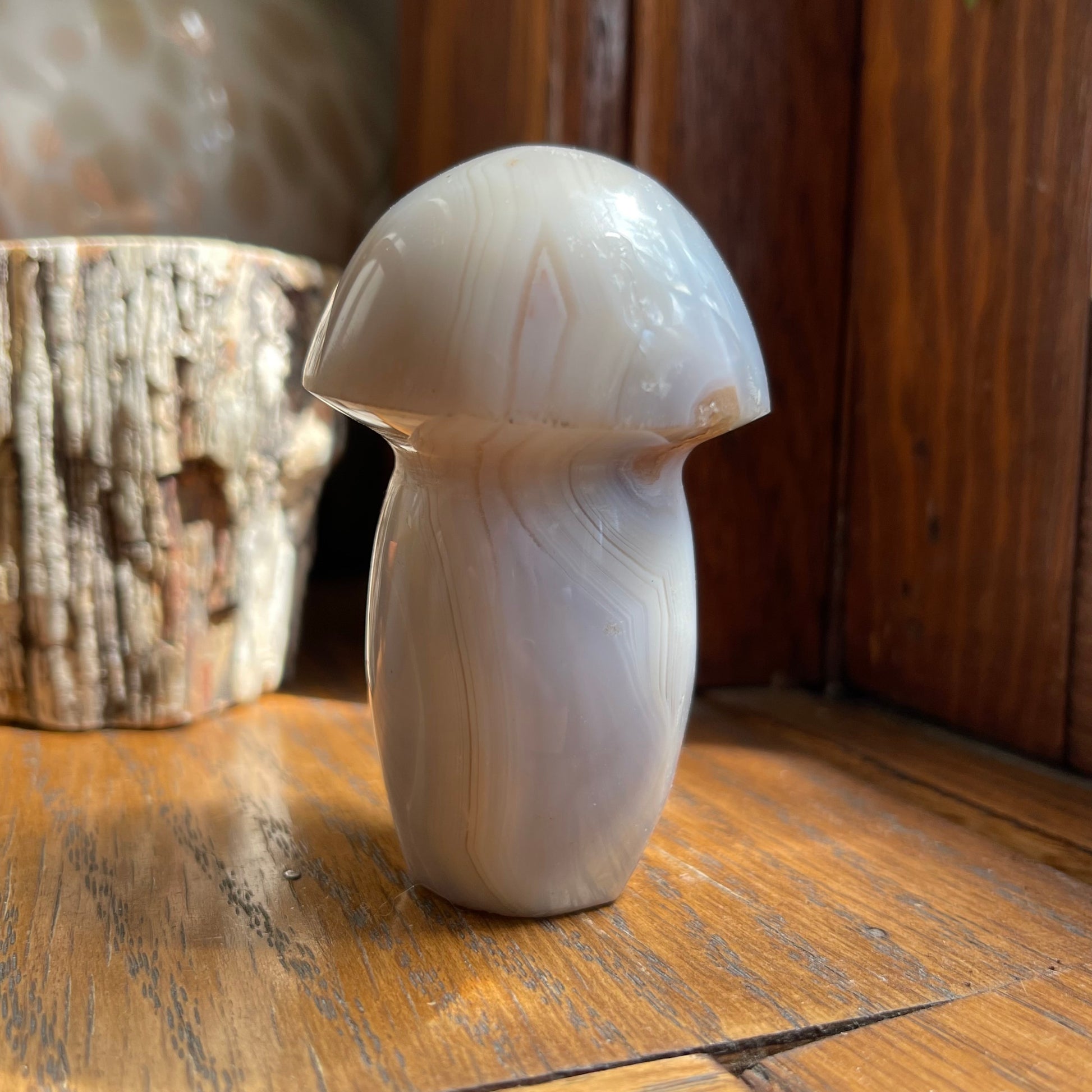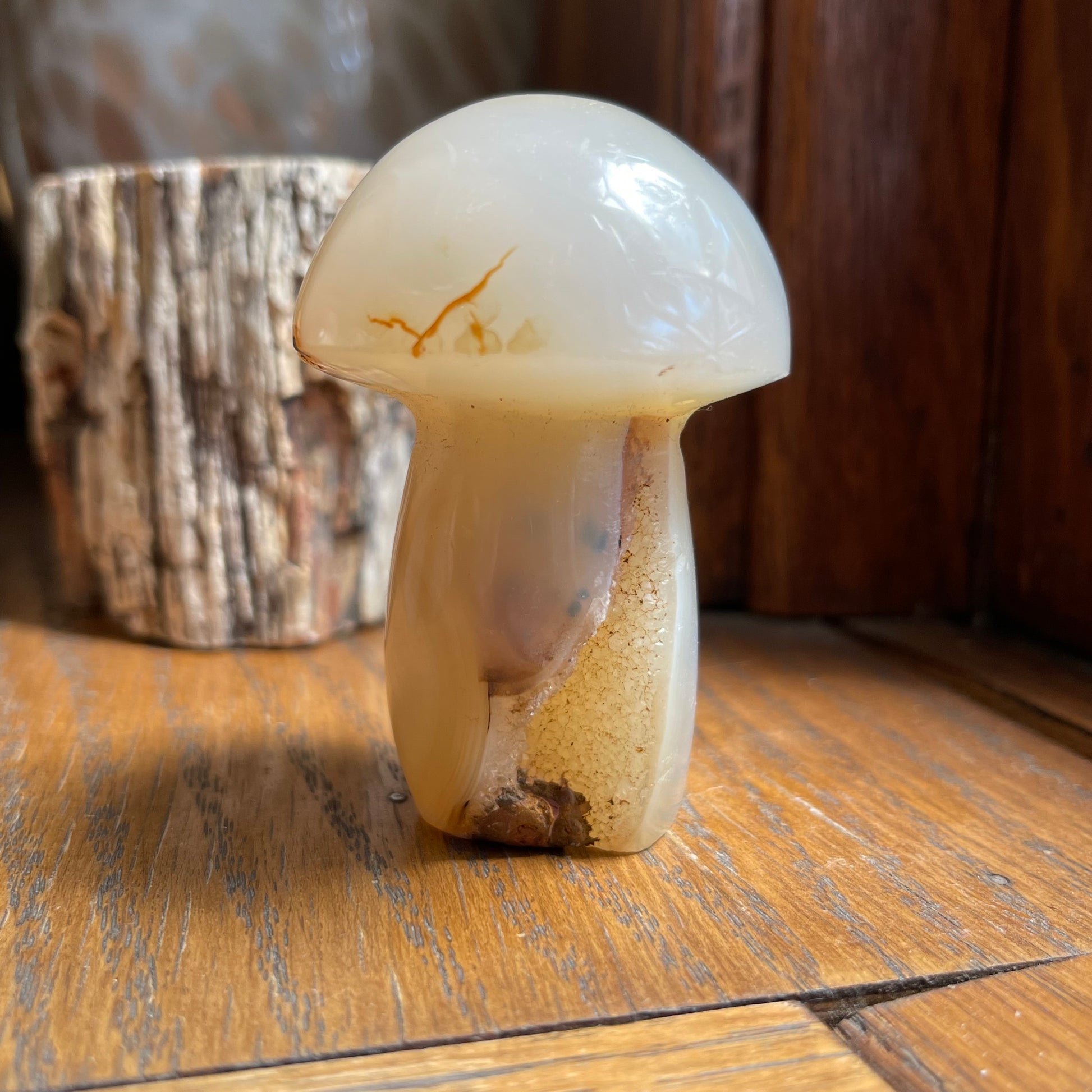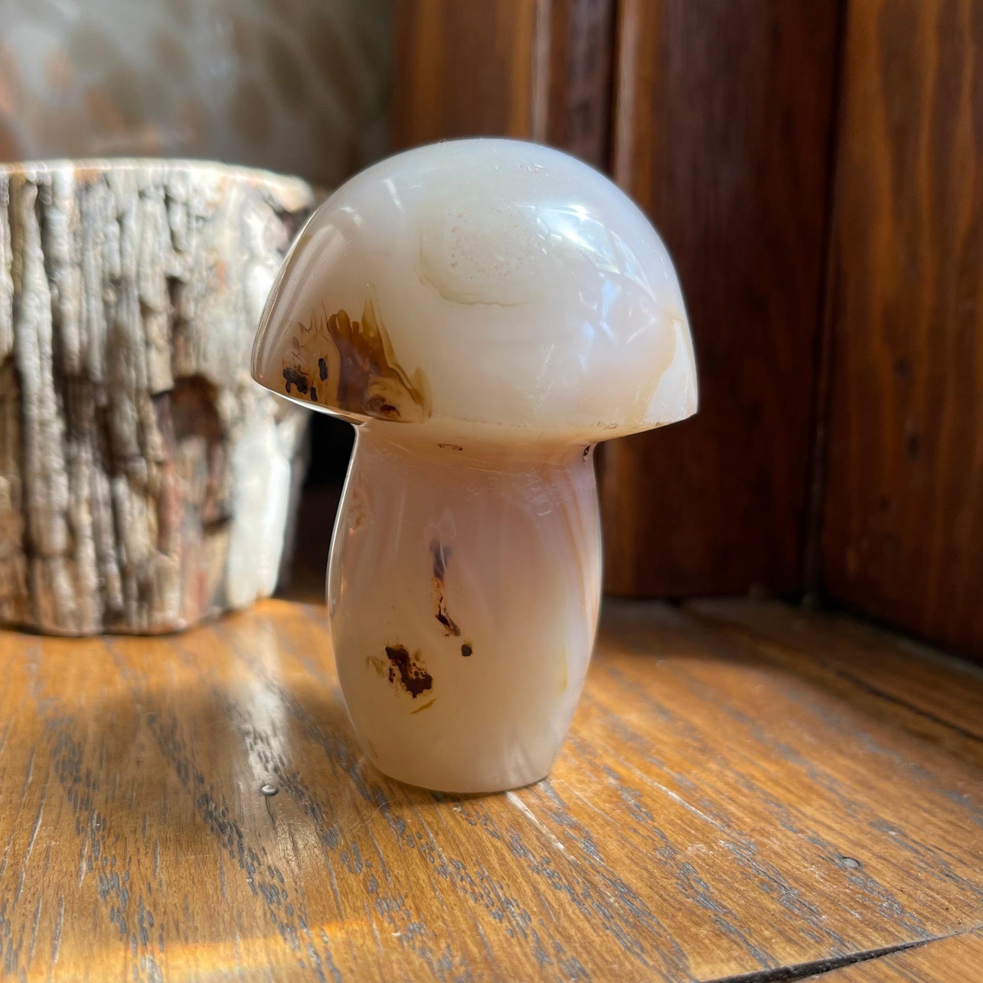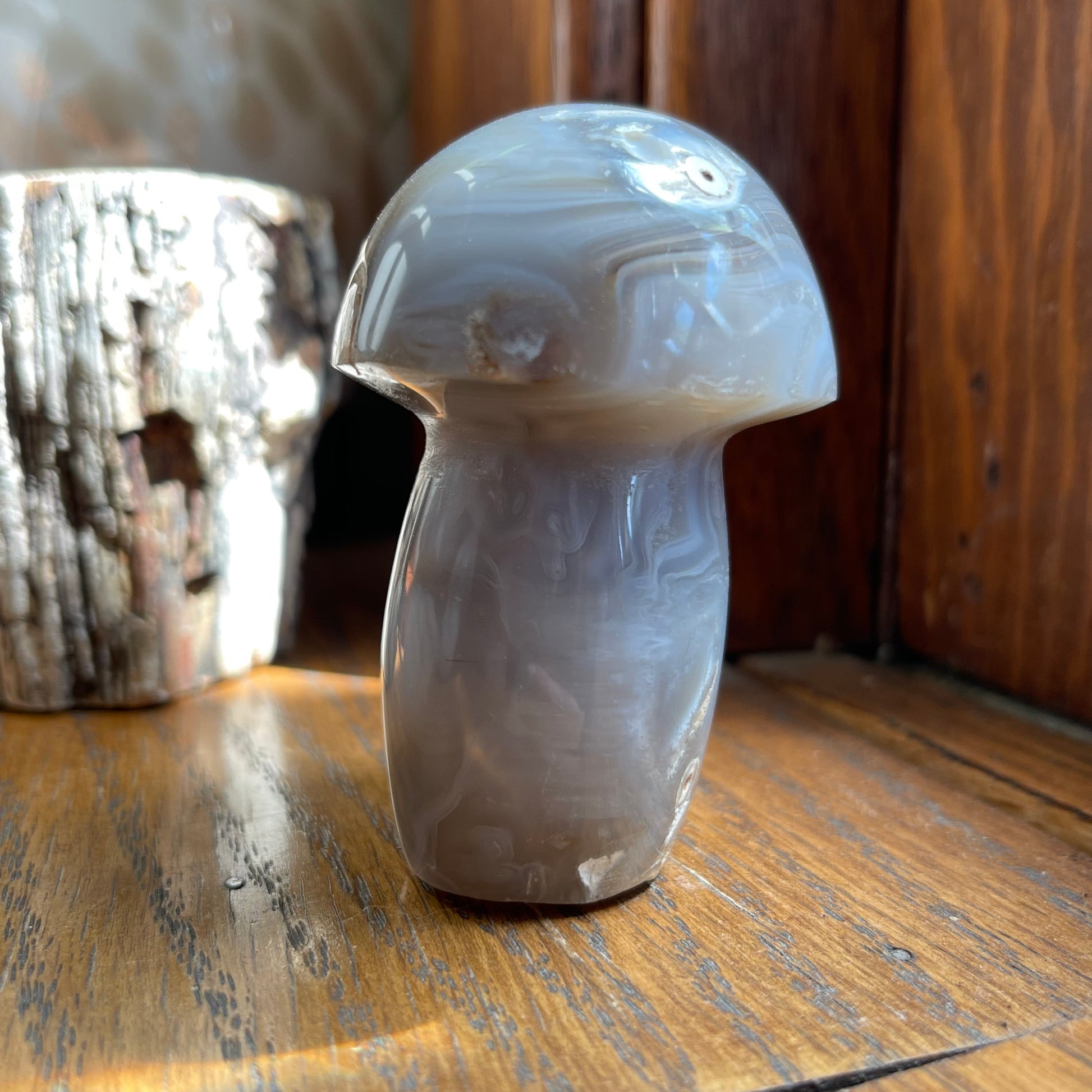 Agate Mushrooms are so much fun to have and they are lovely to put in your plants or garden! Each one of them are unique, with banding, caves, druzy, dendrites...you name it! They all are approx. 2.5" - 3" h.