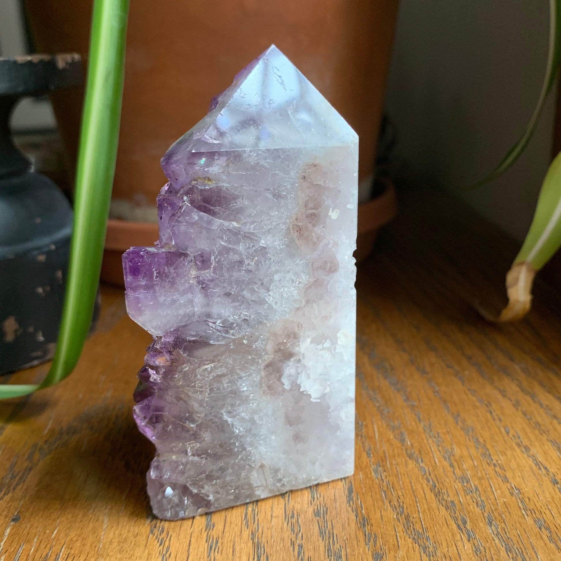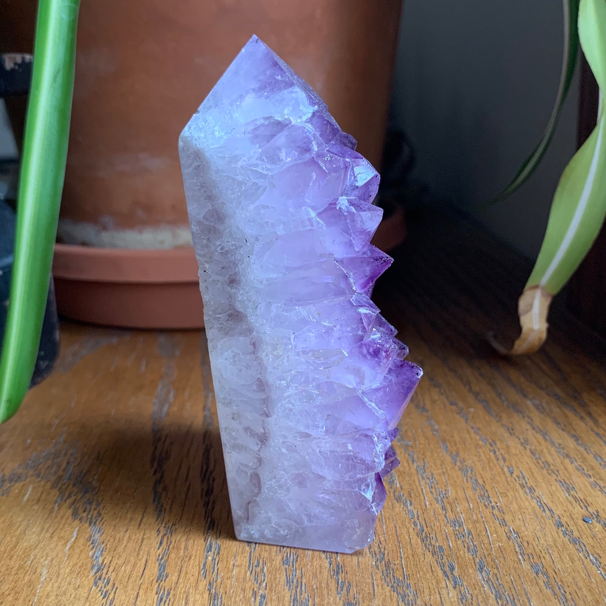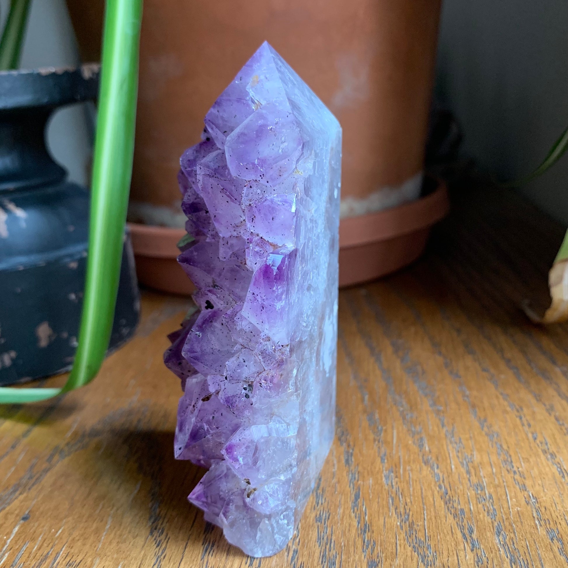 This amazing toothy Amethyst piece has gorgeous color, beautiful formations and inclusions on point faces and rainbows. So lovely!