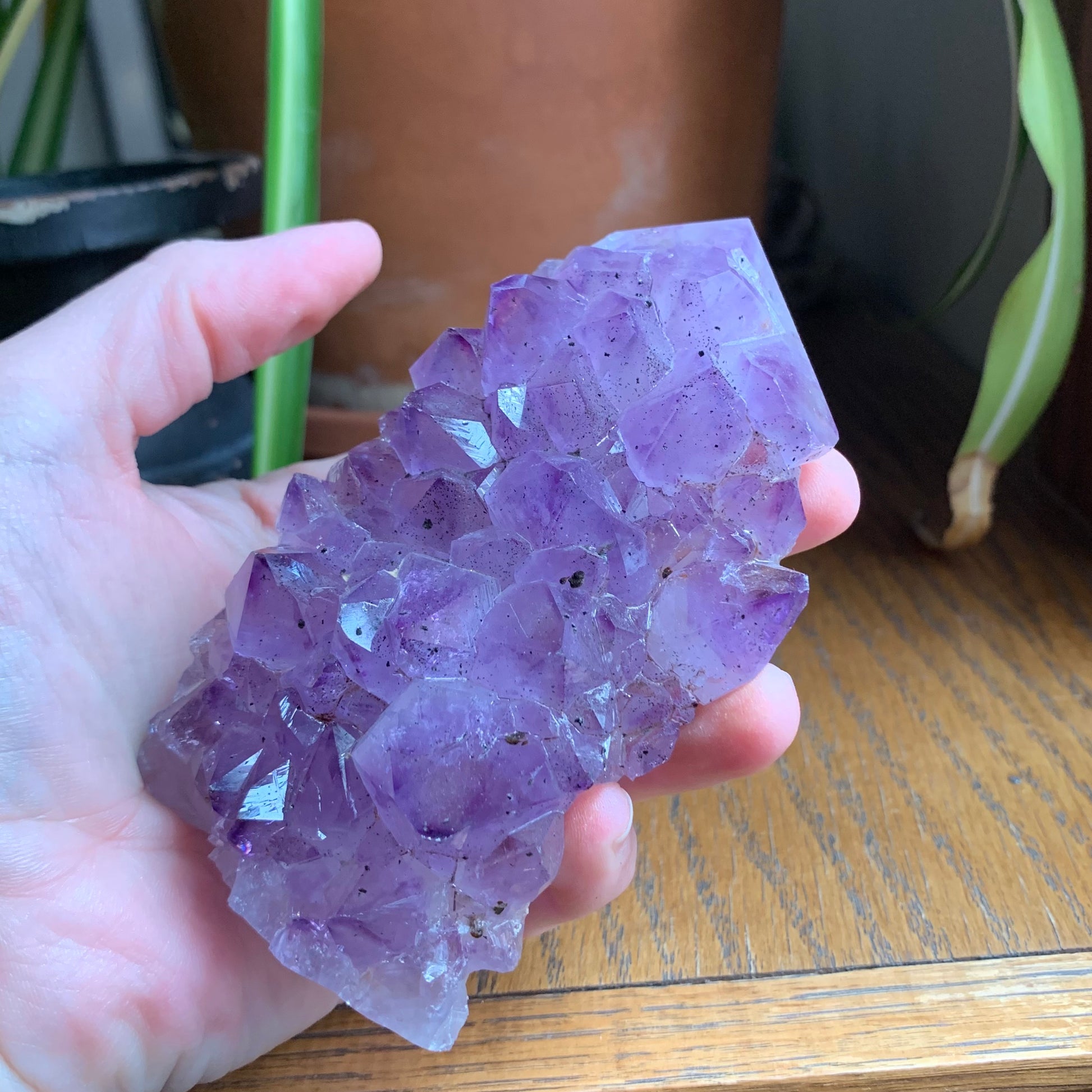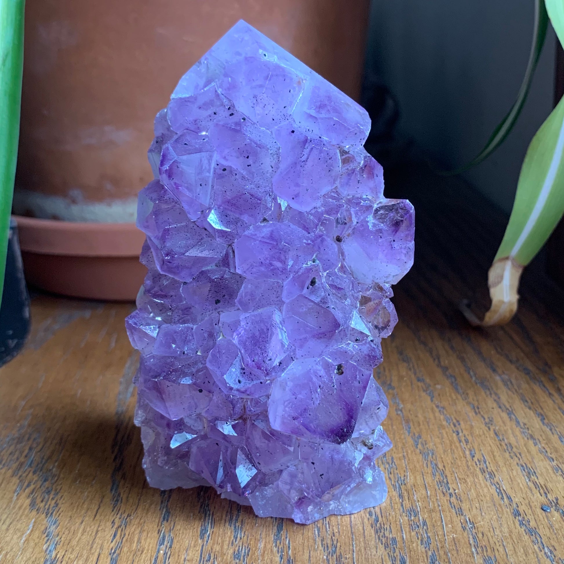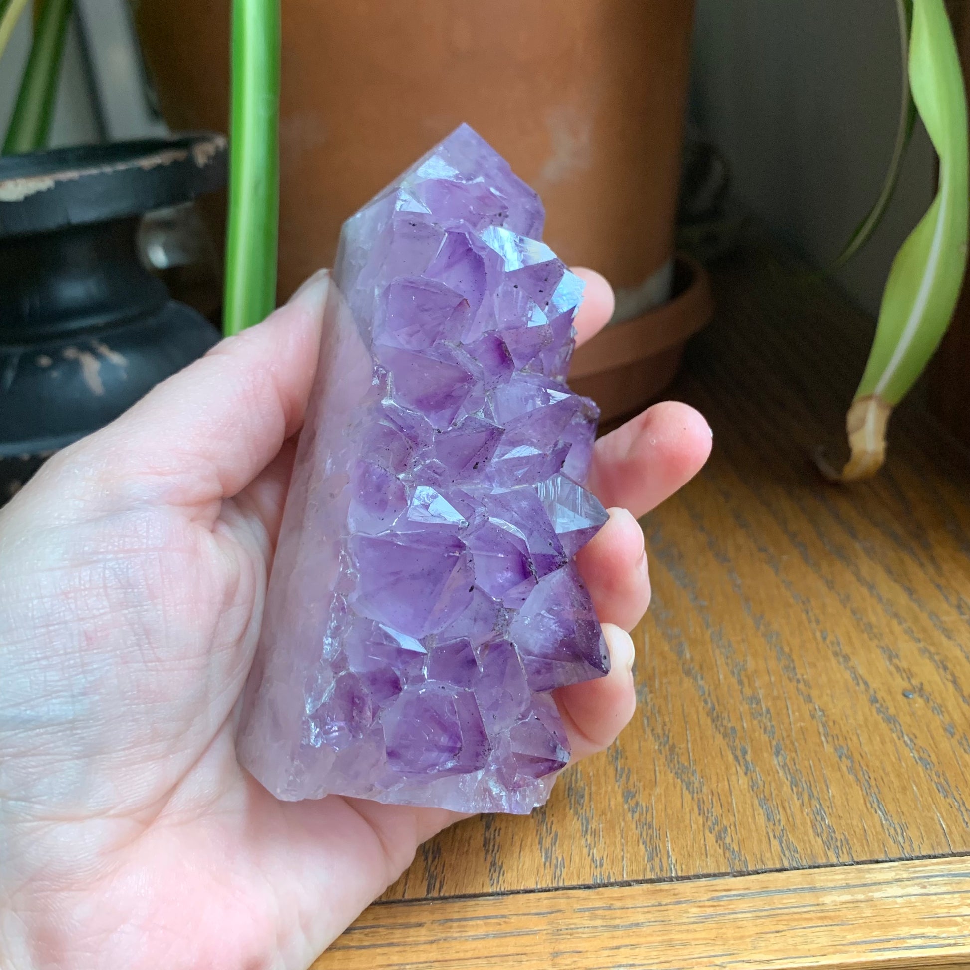 This amazing toothy Amethyst piece has gorgeous color, beautiful formations and inclusions on point faces and rainbows. So lovely!