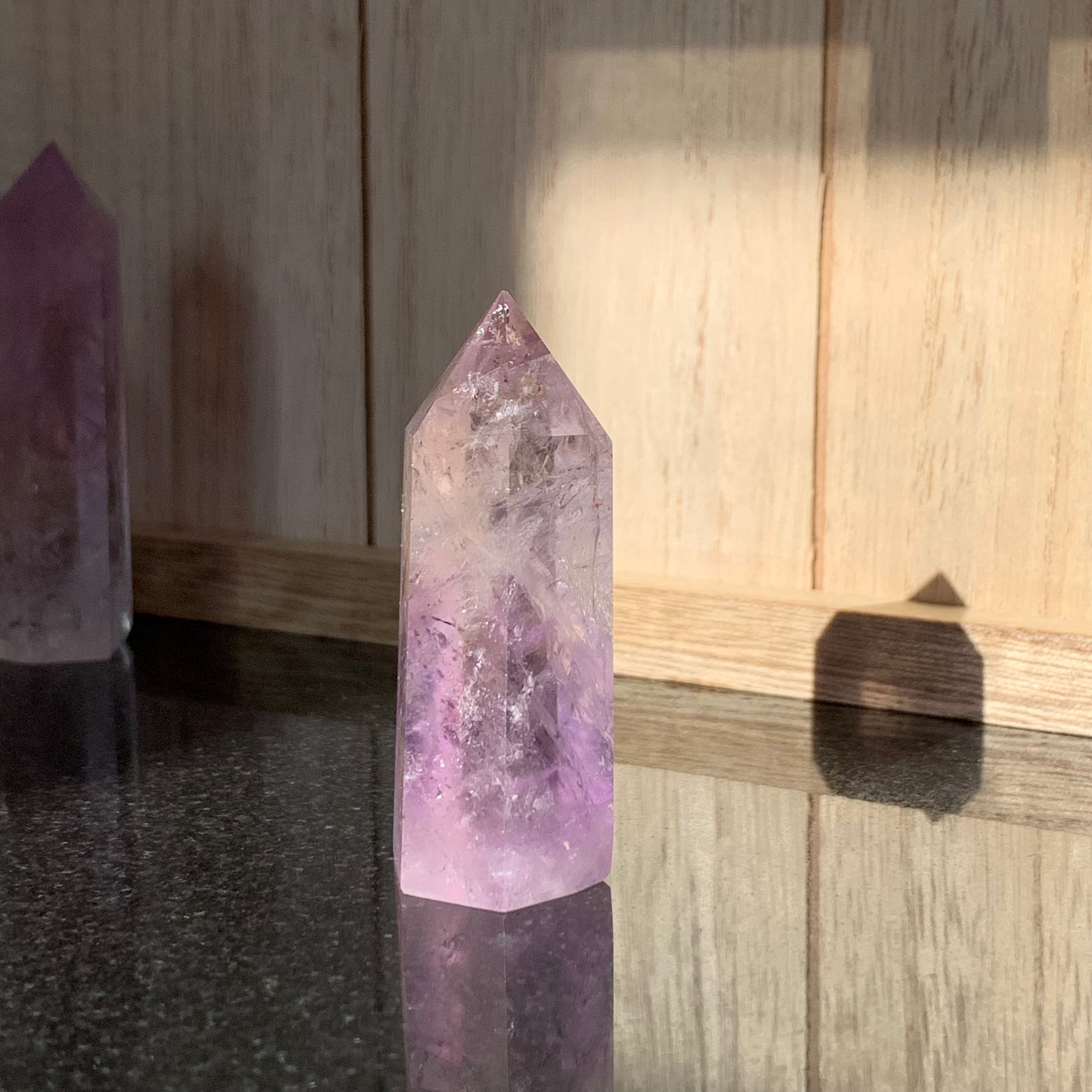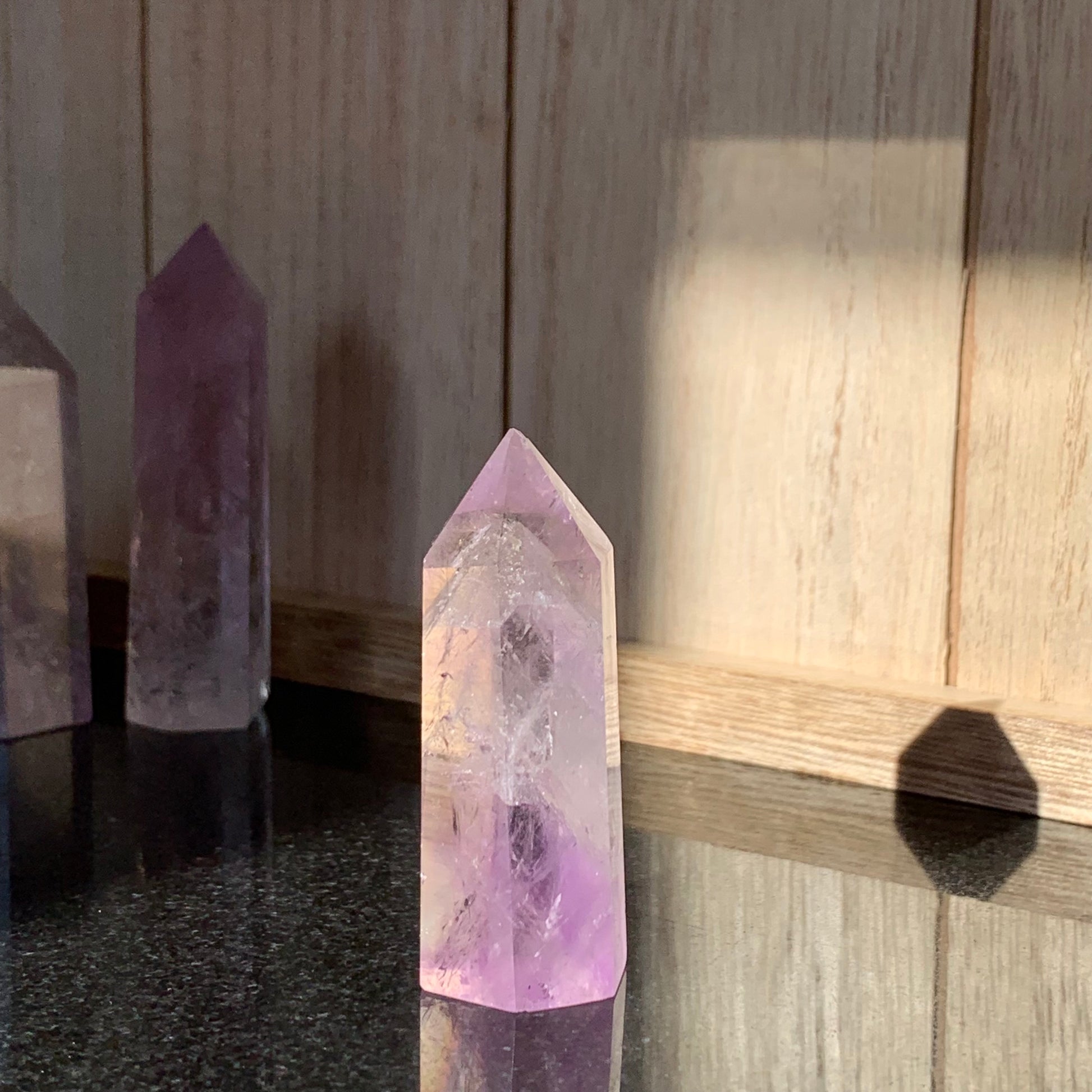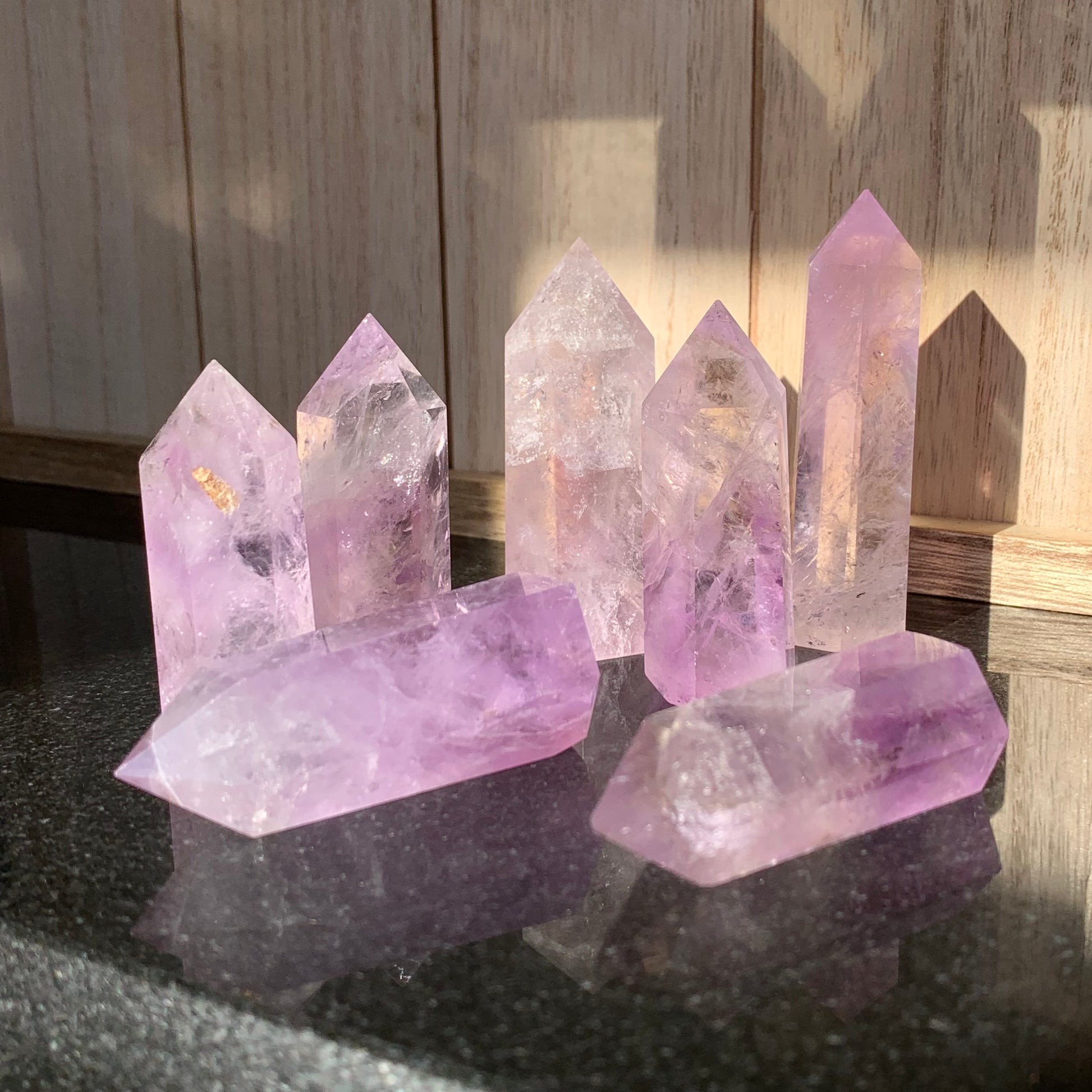 These icy amethyst towers are to die for. They are such stunners at a great price. They each have a little bit of everything: rainbows, phantoms, inclusions, color zoning.
