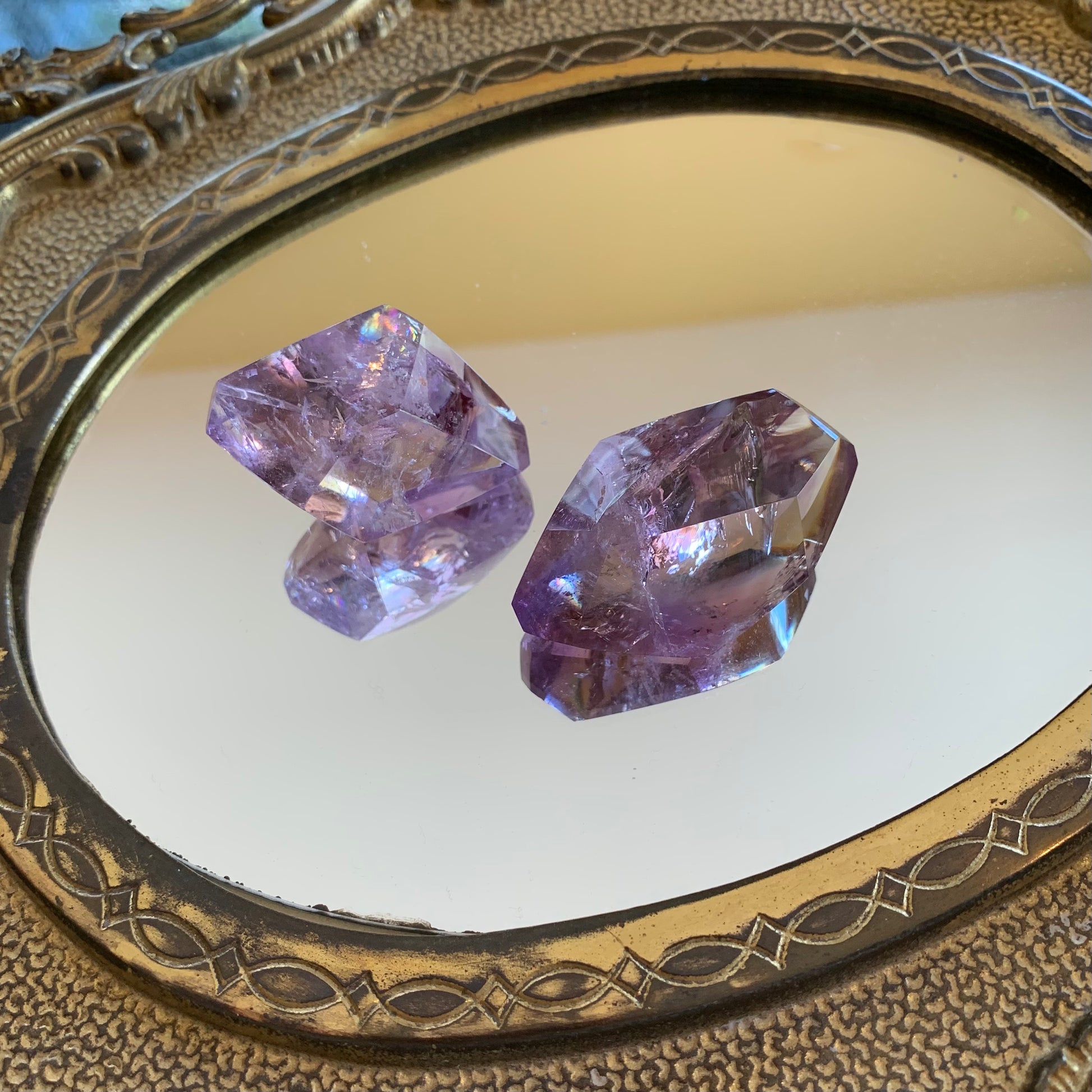 ACK! What can we say other than we are beyond excited to have gotten our little grips on these lovely, gorgeous, stunning, glamorous, mind-bogglingly breathtaking Ametrine Rainbow-Filled Freeforms that you won't want to put down. When you get your hands on them you will gasp.