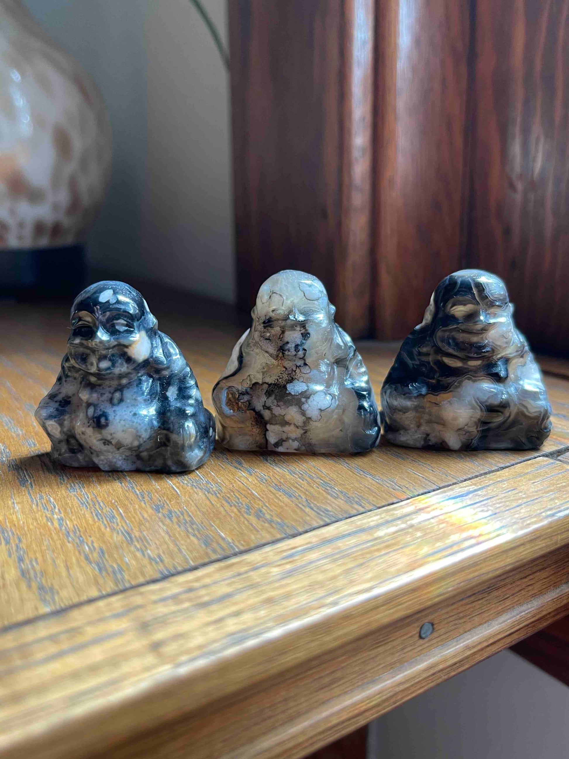 These Happy Buddha carved in Black Flower Agate are so wonderful.
