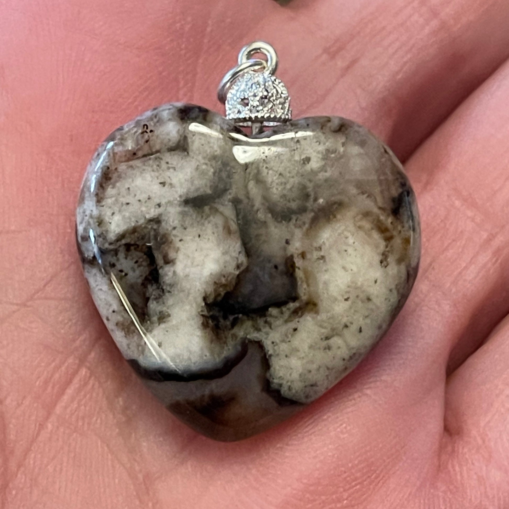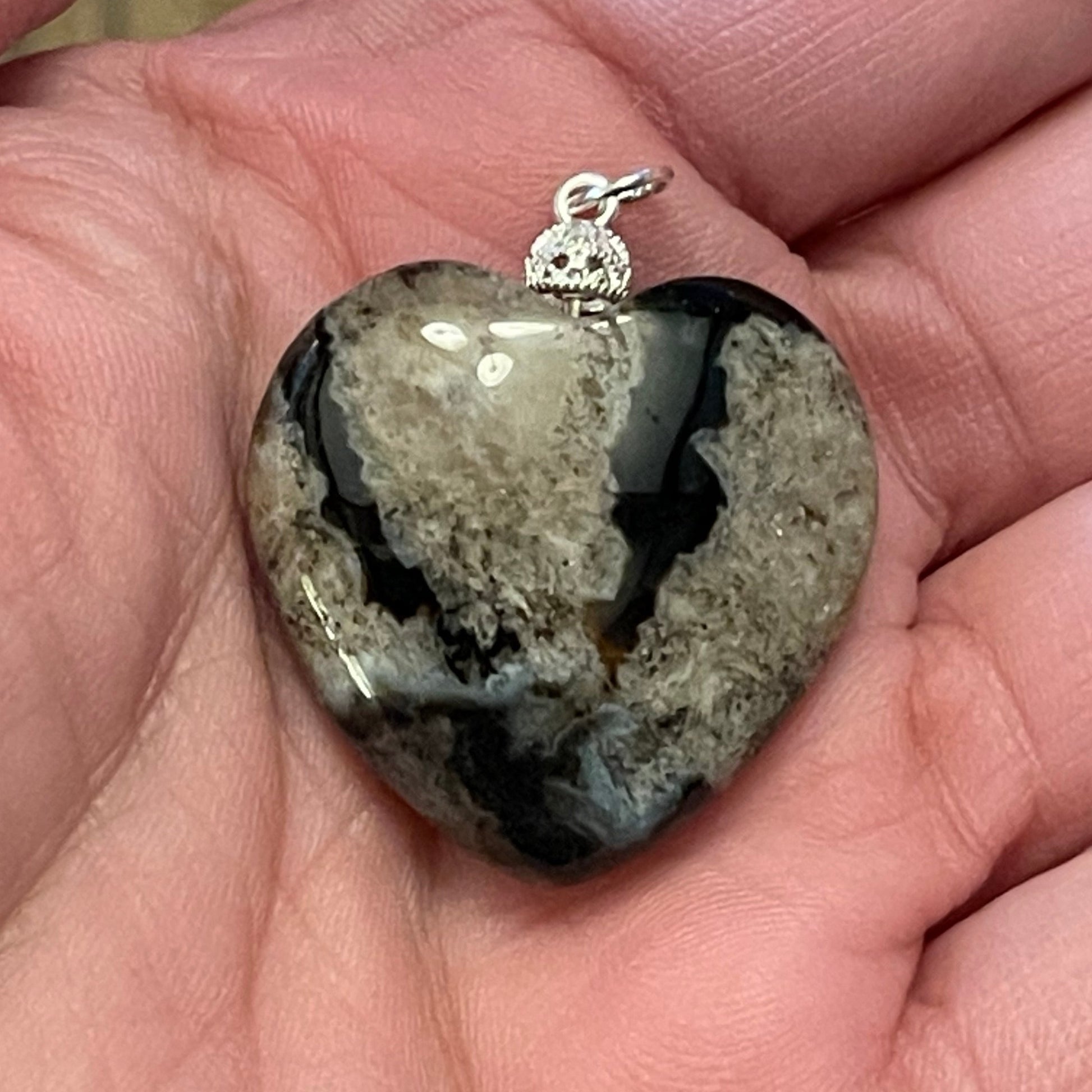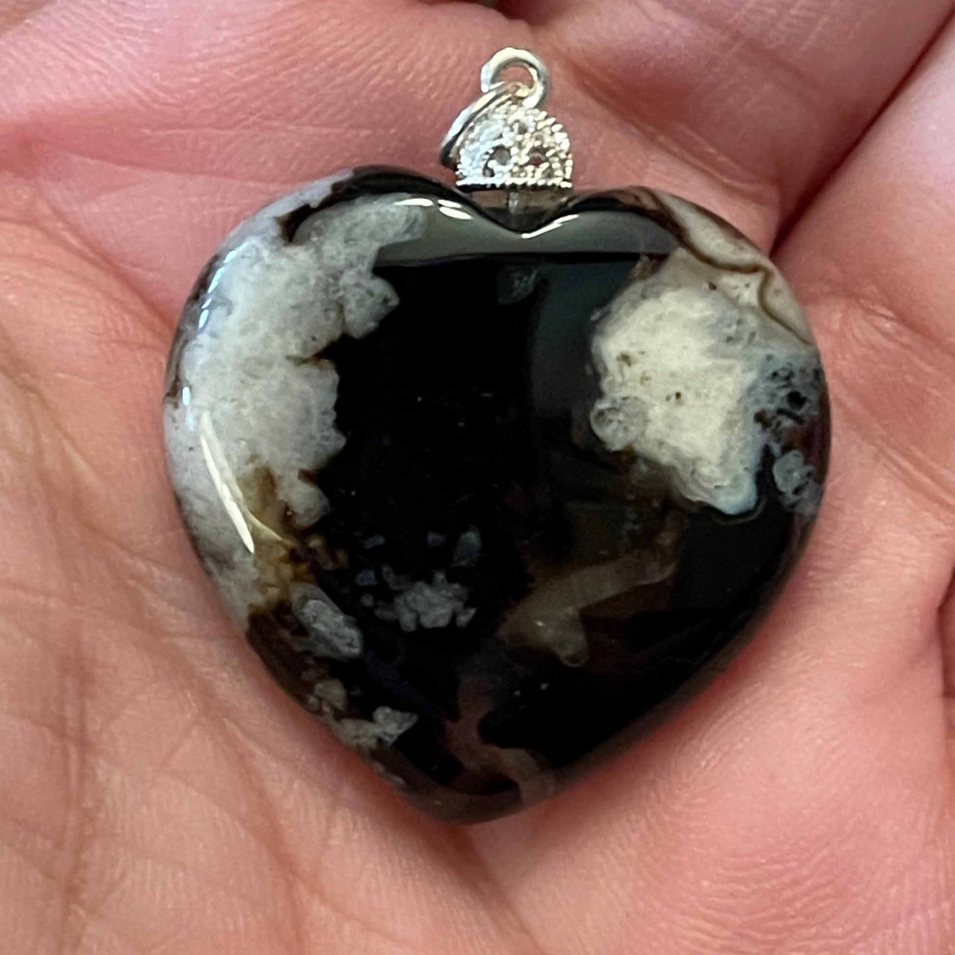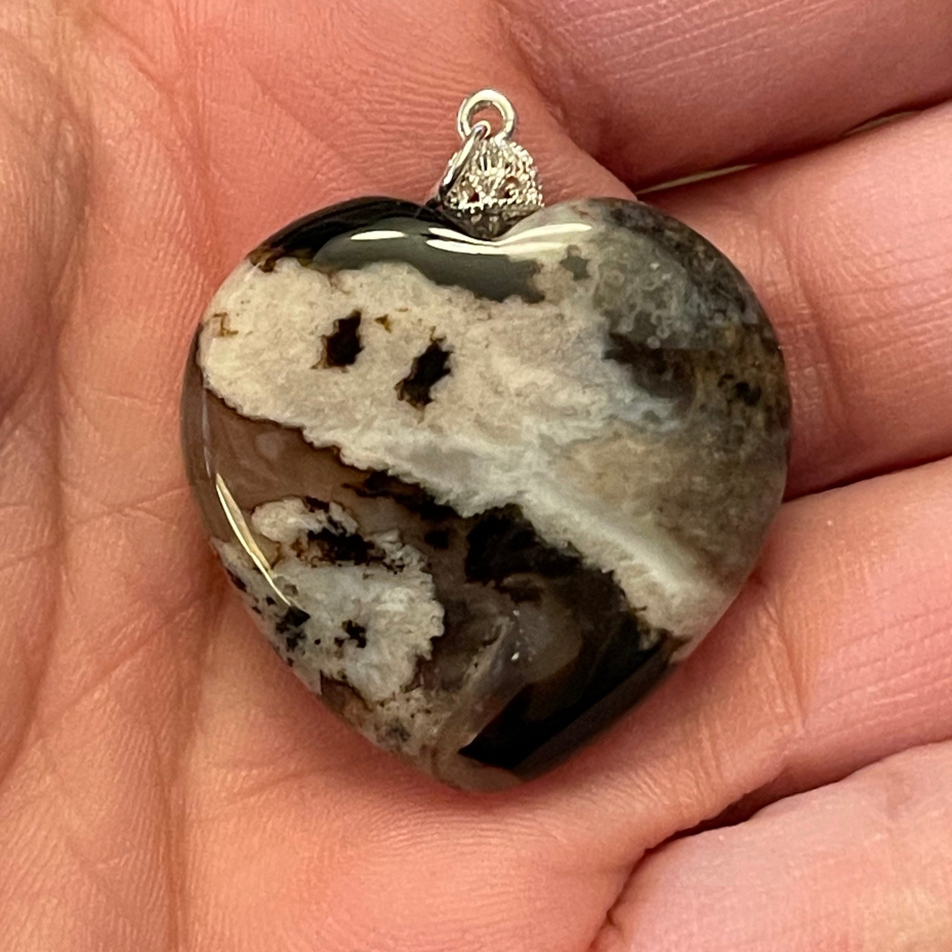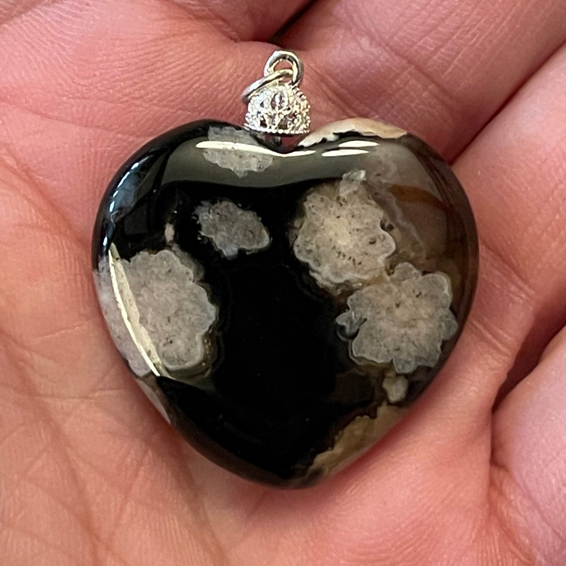 Black Flower Agate Heart Pendant