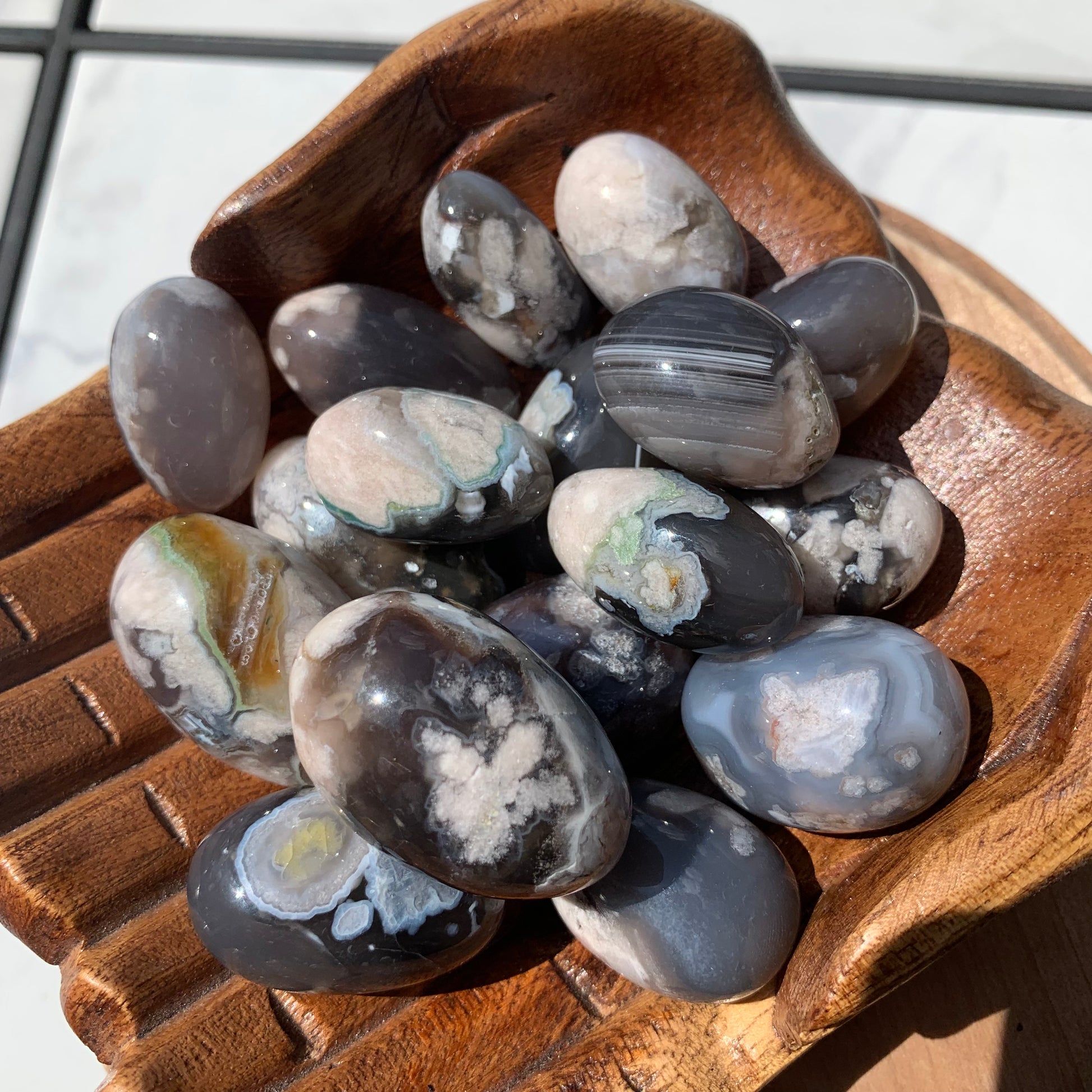Black Flower Agate Tumbles