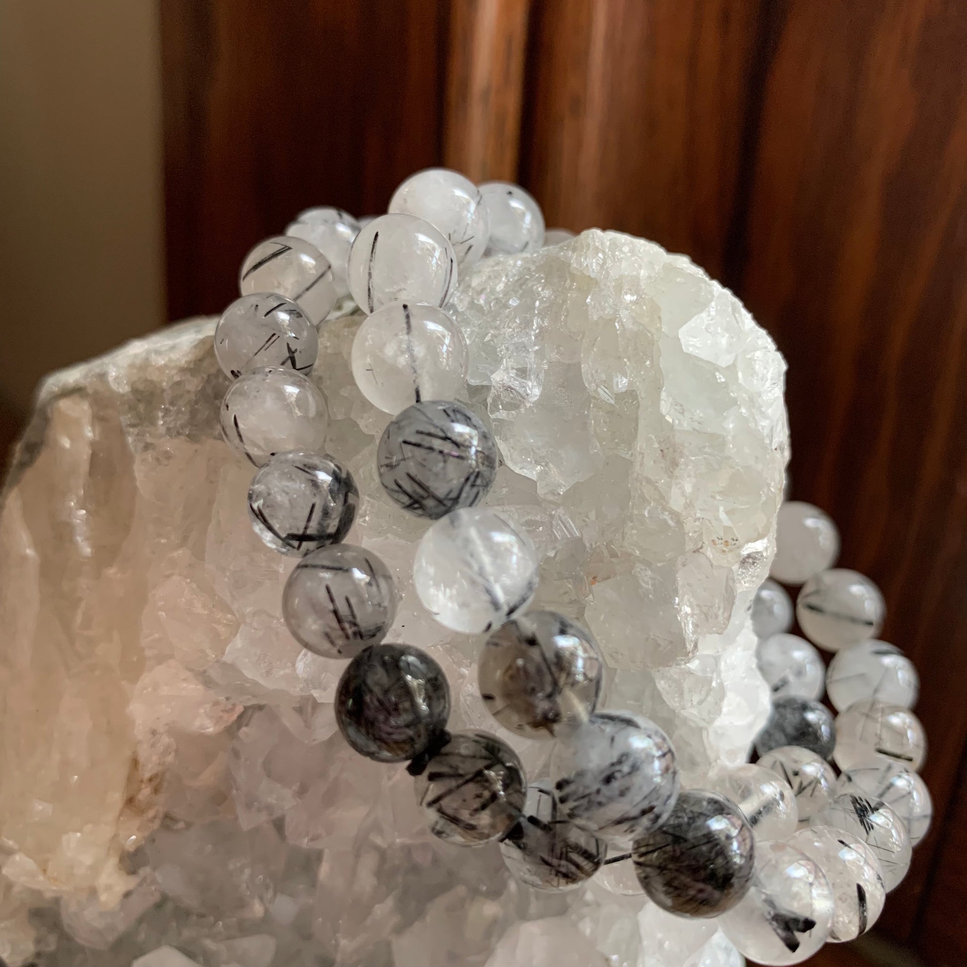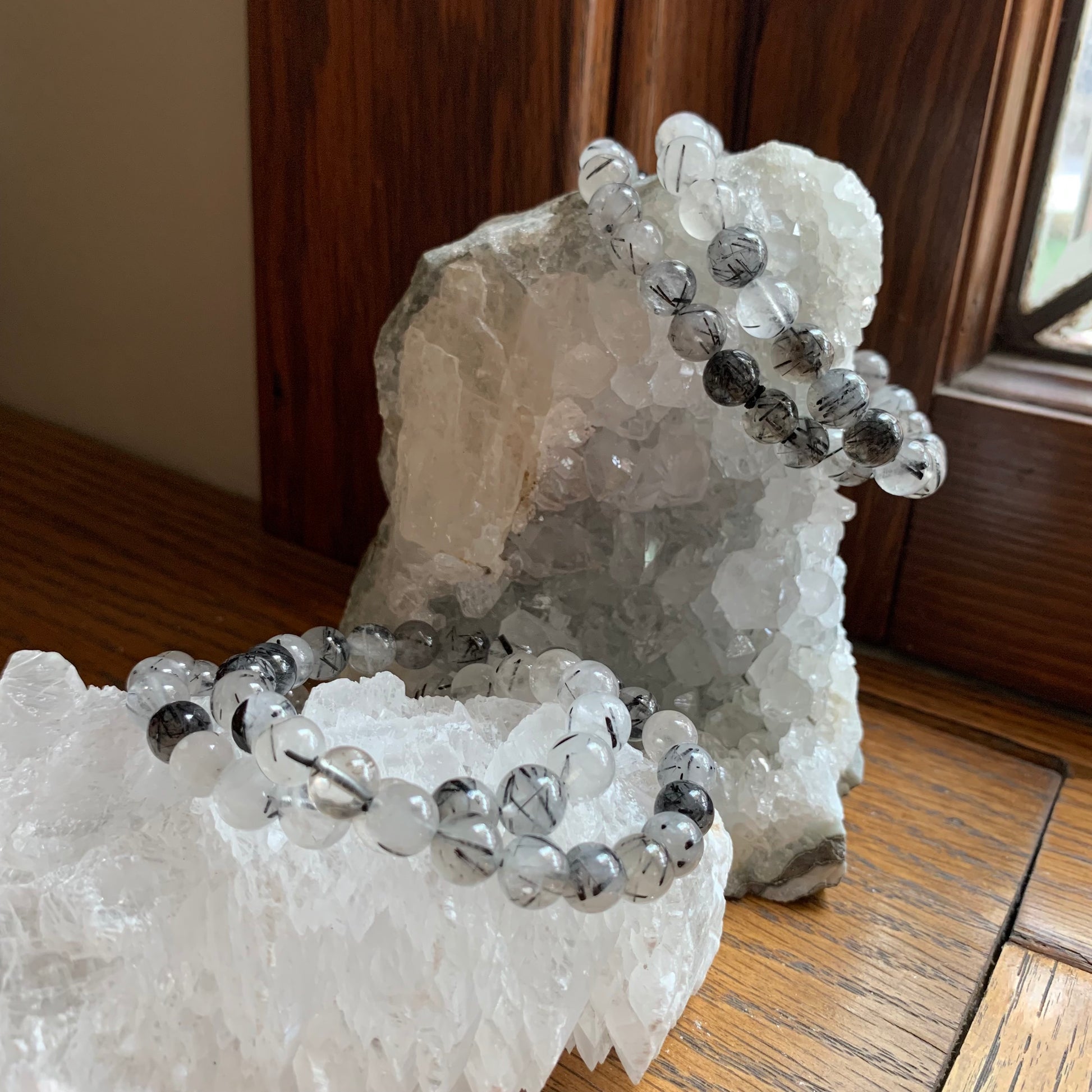 Black Tourmaline in Quartz Bracelets // 7.5mm bead + 7.5" bracelet
