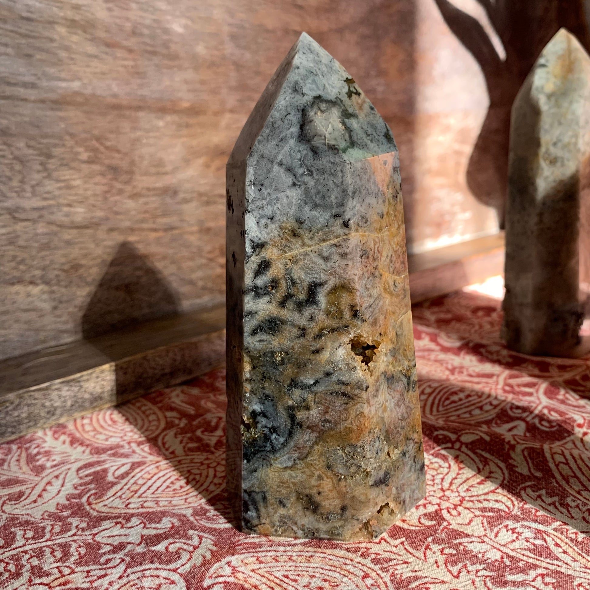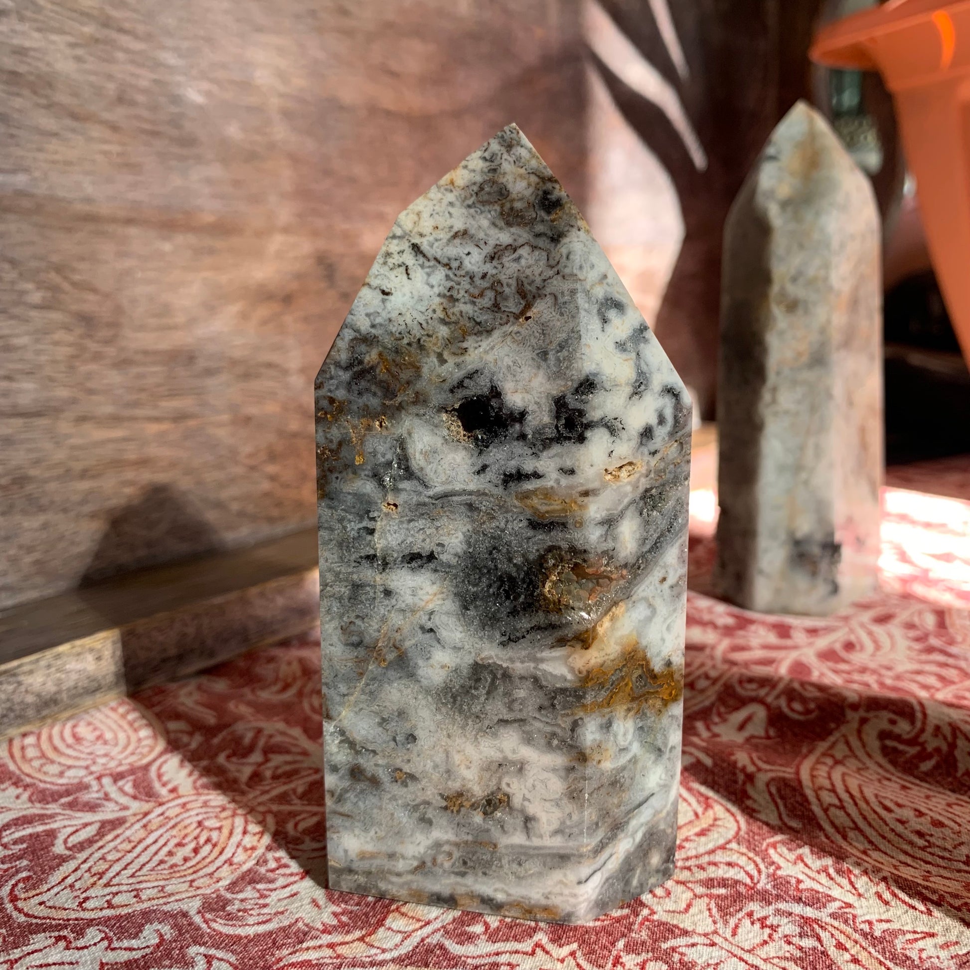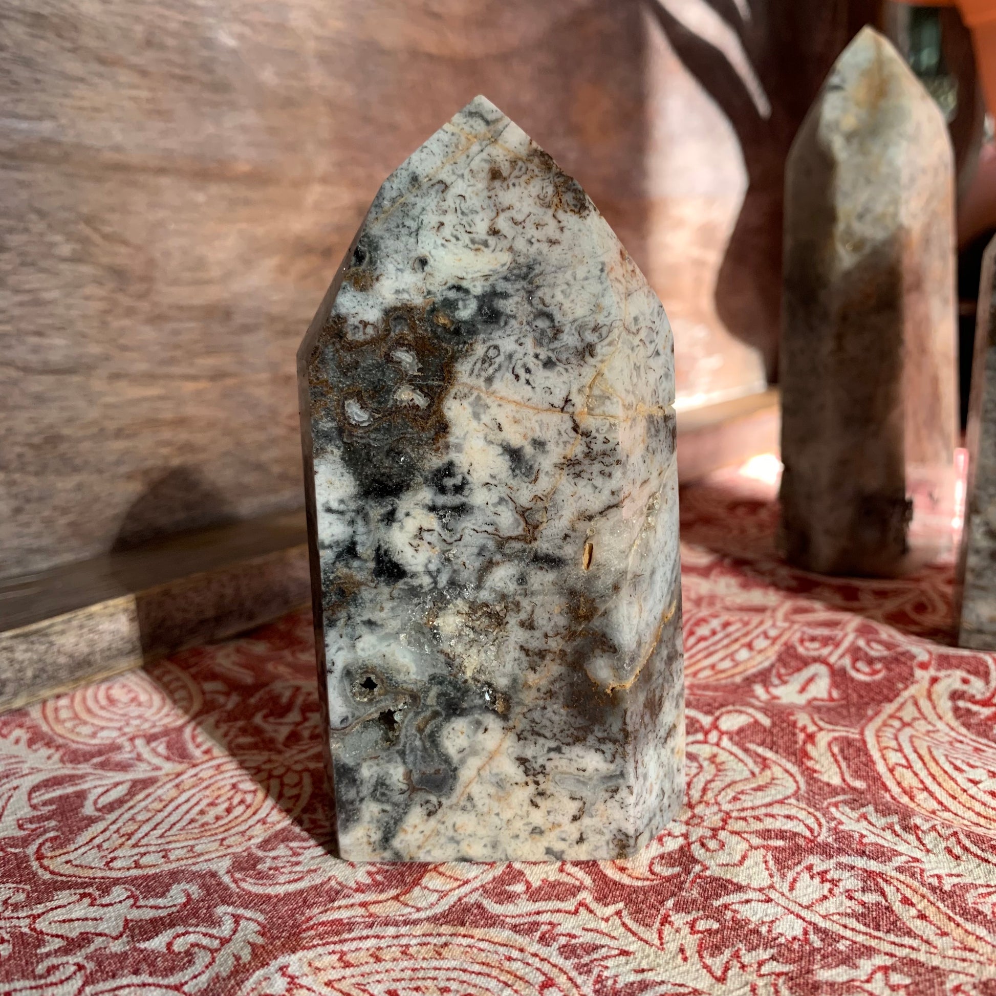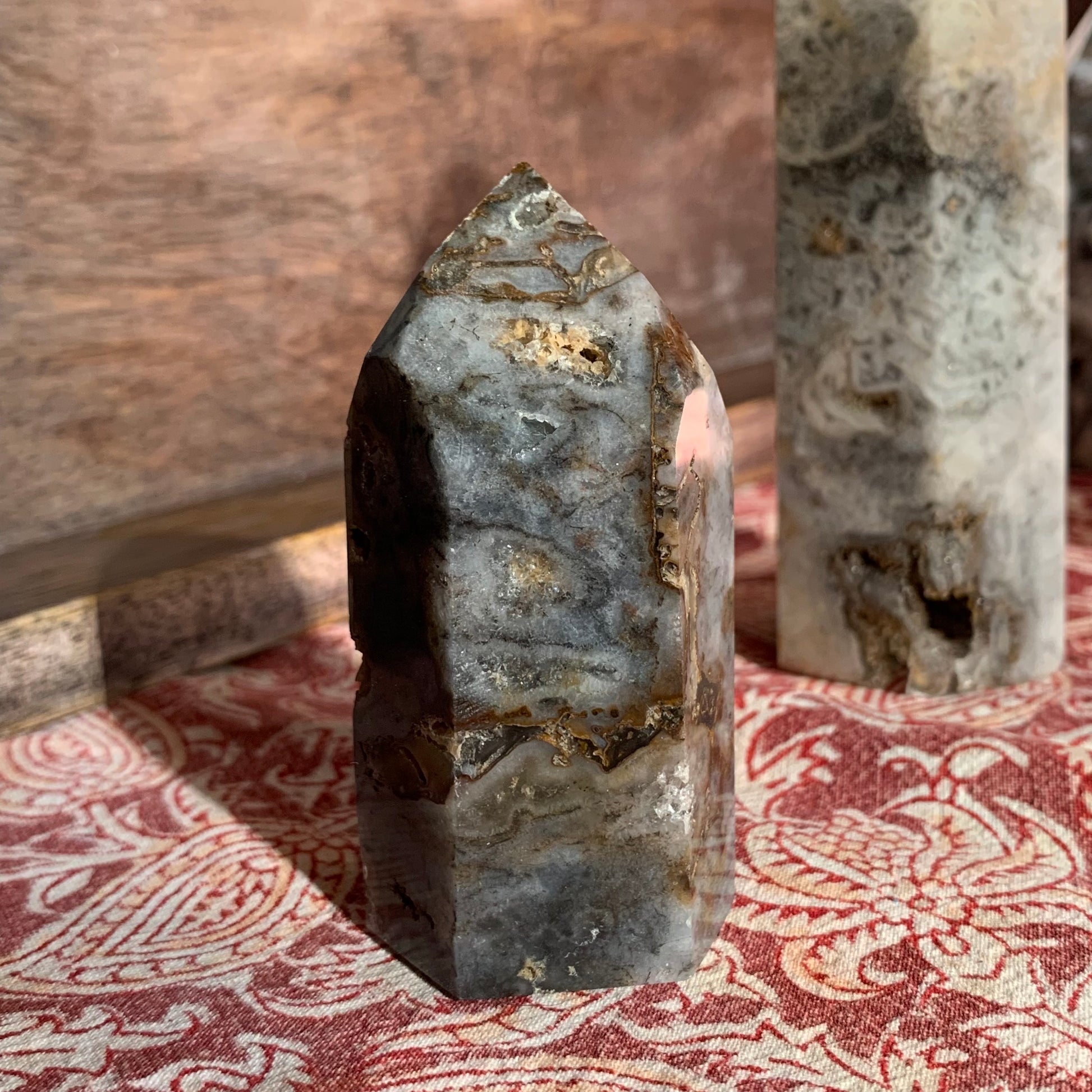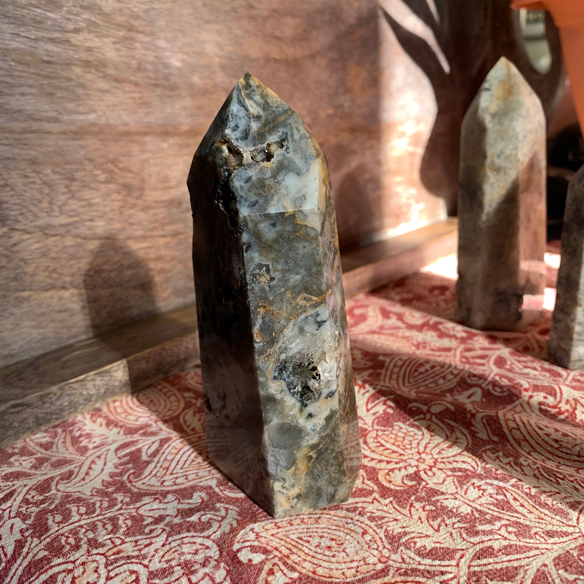 Brazil produces some of the most amazing and interesting pieces. These towers have the most interesting patterns of Crazy Lace and Druzy pockets. We are in love!