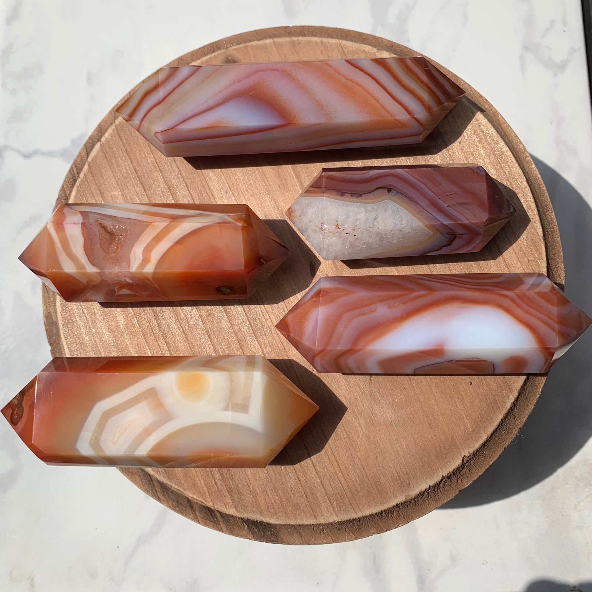 We had a hard time choosing the nicest Carnelian Double Terminated Points as all the patterns to choose from were lovely. Here are just a few that we are offering. The patterns and finish are out of this world!