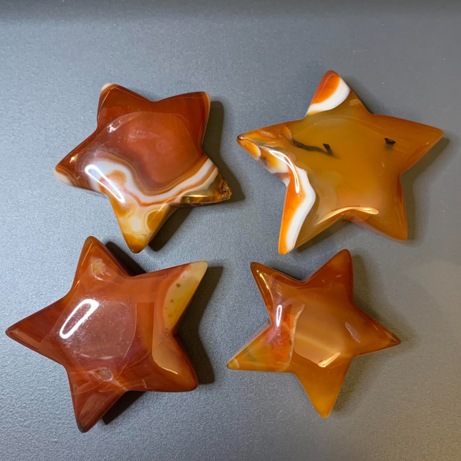 We adore these brightly colored stars carved in this buttery Carnelian. Each one is absolutely gorgeous and has the most unbelievable banding, rich reds and oranges. We love the quality of these star carvings.
