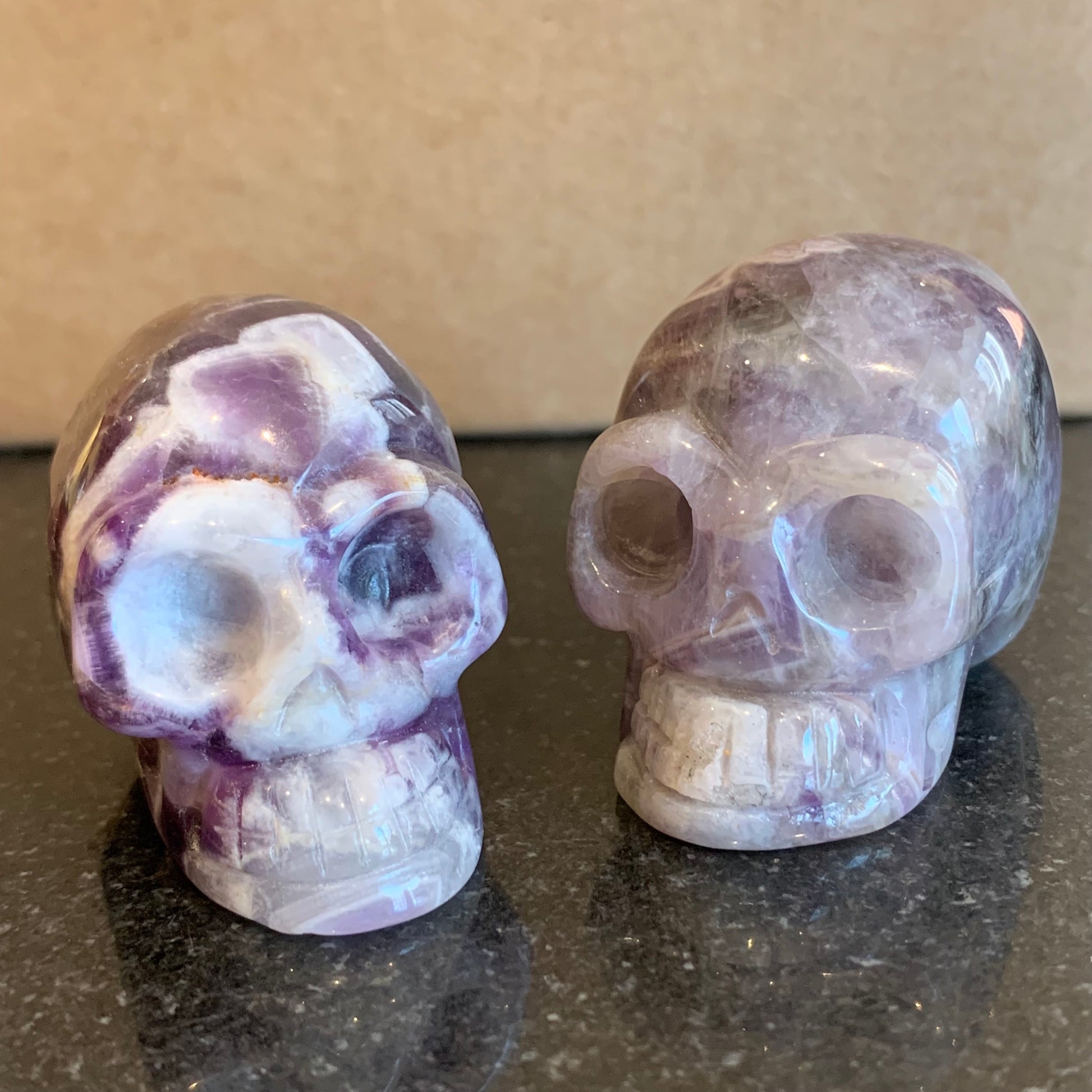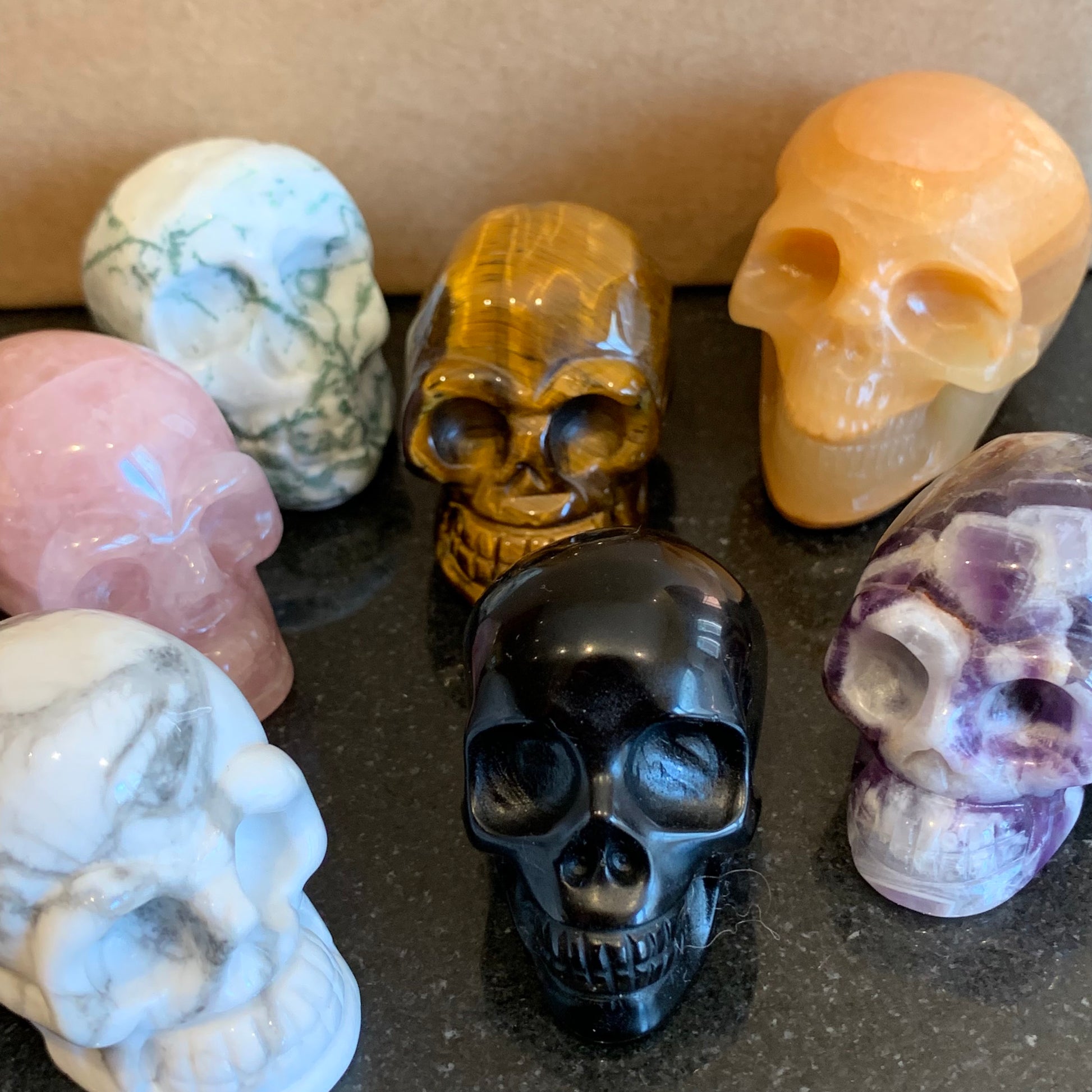 Carved Skulls // Dream Amethyst, Black Obsidian, Rose Quartz, Howlite, Orange Calcite, Tiger's Eye