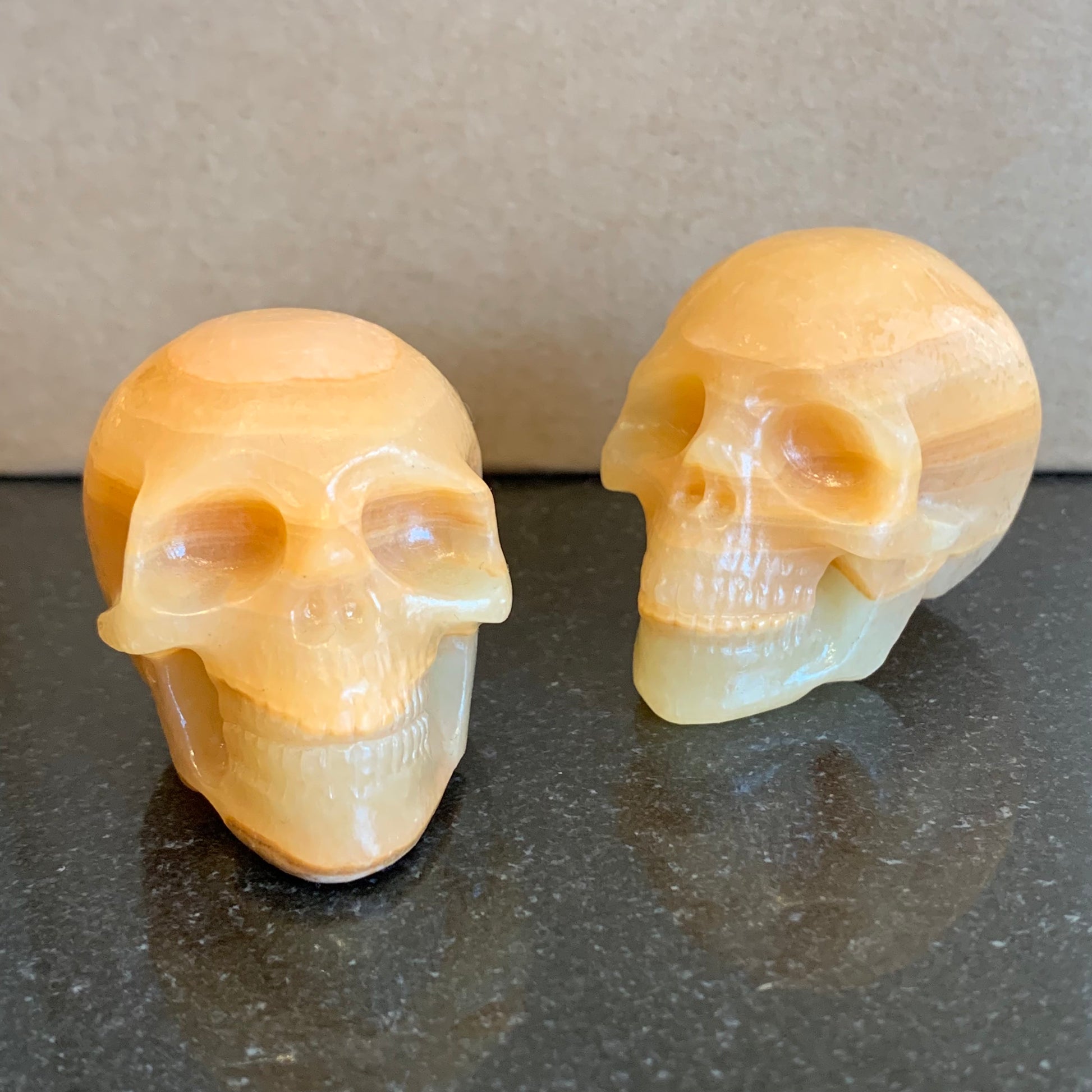 Accelerate your Skull Collection by loading up for Halloween with these Skulls while they are in stock. They all measure approx.1.50" h 1.5" w x 2.00" deep. One will be intuitively chosen.