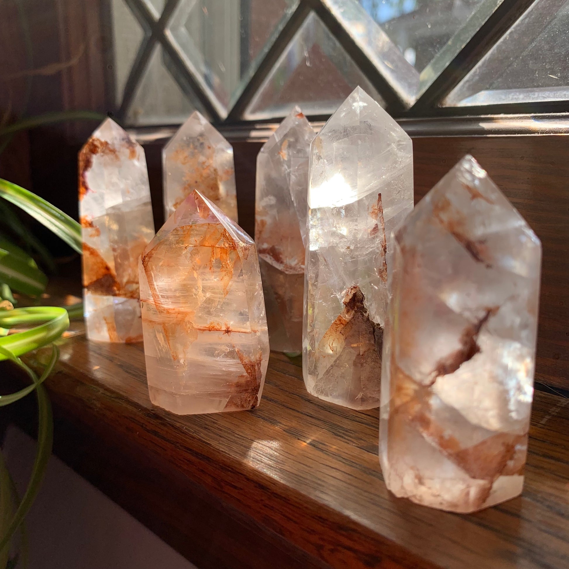 Clear Fluorite Towers with Lots of Golden Healer // Clear + Rainbowy // Heavy Ribbons of Golden Healer