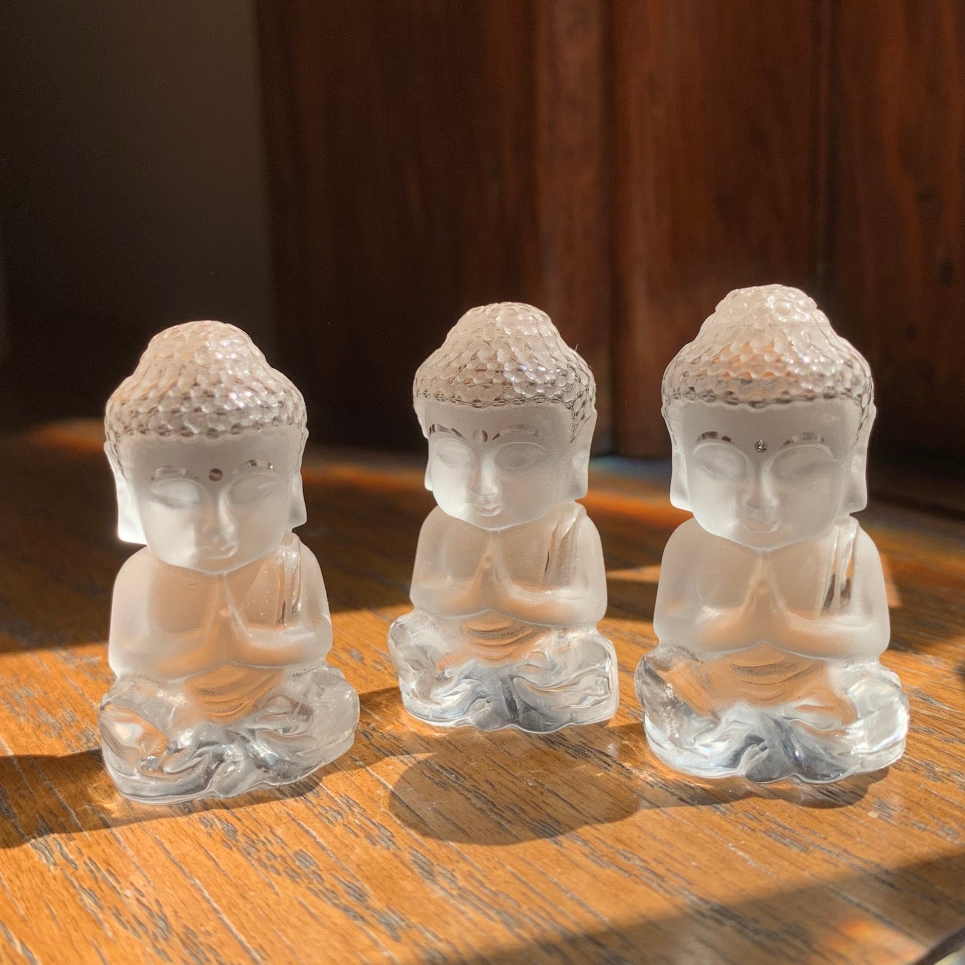 This Clear Quartz version of Praying Buddha is lovely. The detail between the glossy finish and matte finish elevates the quality and visual interest of this carving.
