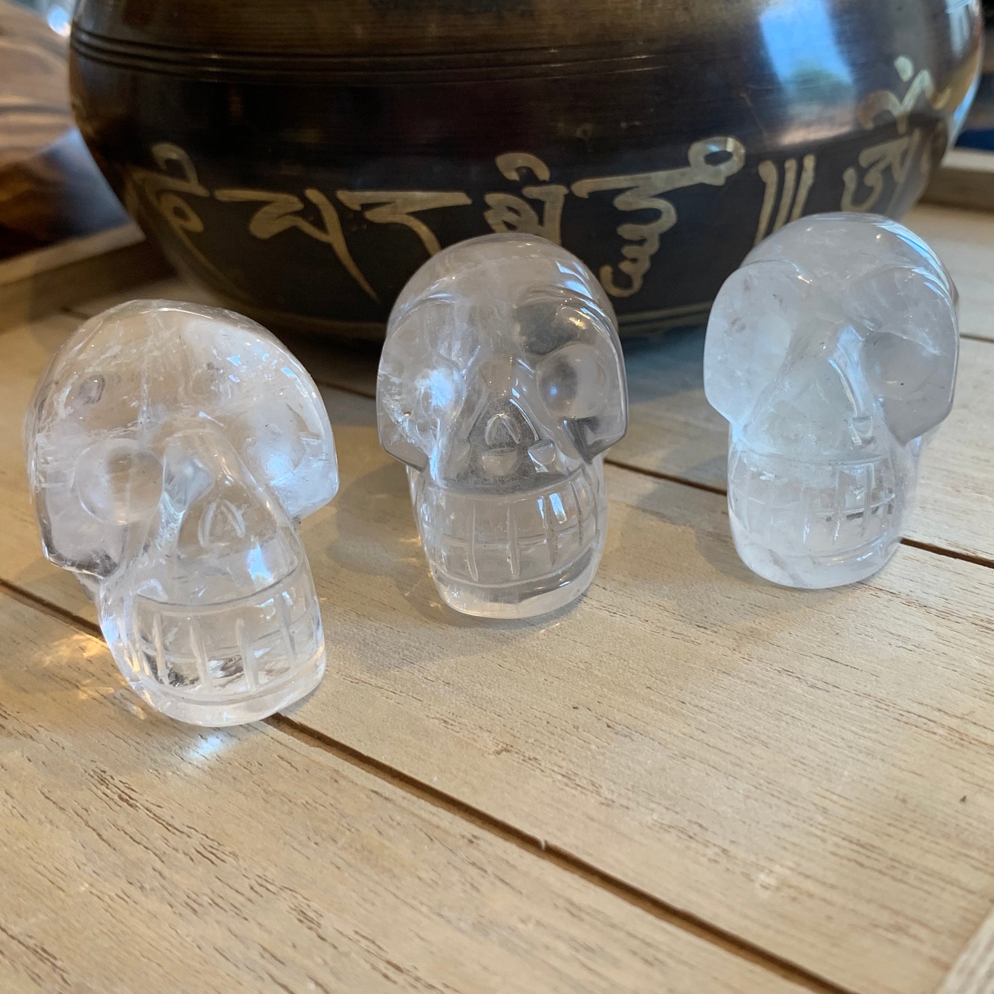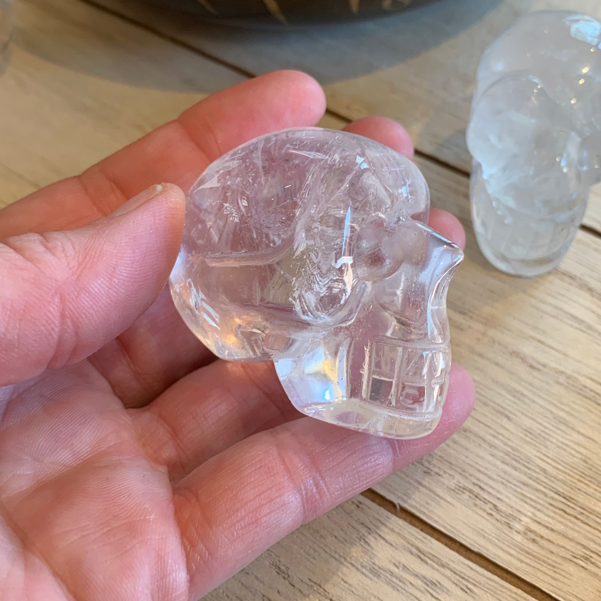 Nothing is nicer than a Clear Quartz Skull. These babies have beautiful clarity, some golden healer, inclusions and beautiful rainbows. You can't go wrong.