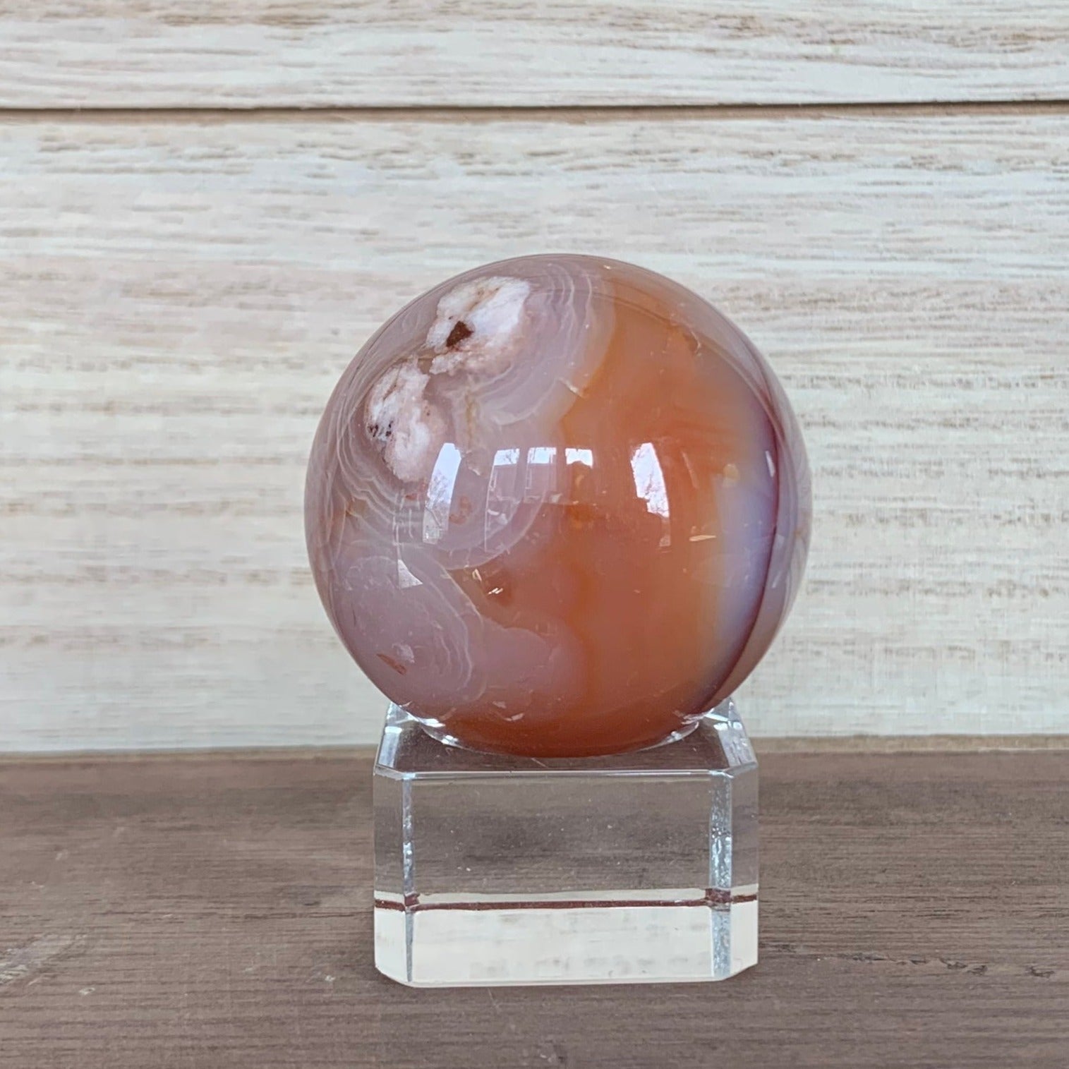 The blue banding on this guy says more carnelian than flower agate but it sure is a beaut. Love the detailing on it! 40mm
