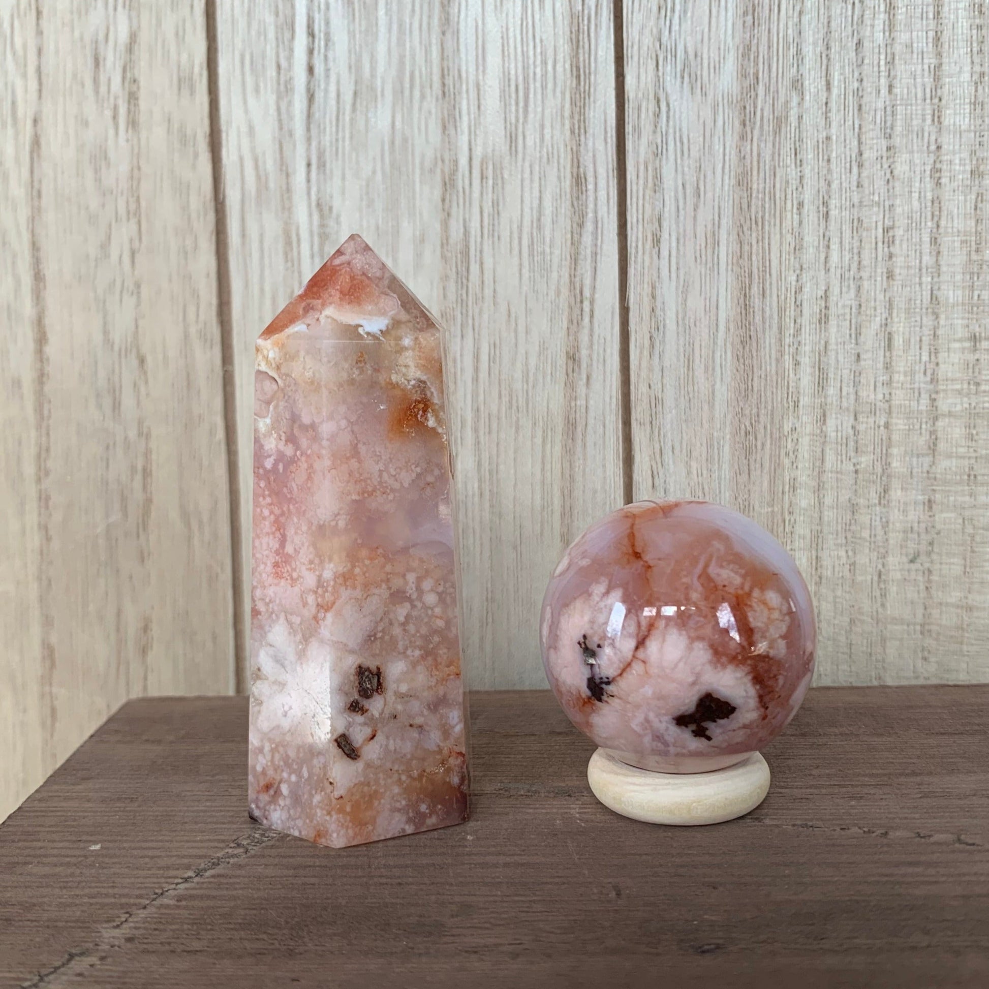 Bella Carnelian Flower Agate Sphere + Tower Set