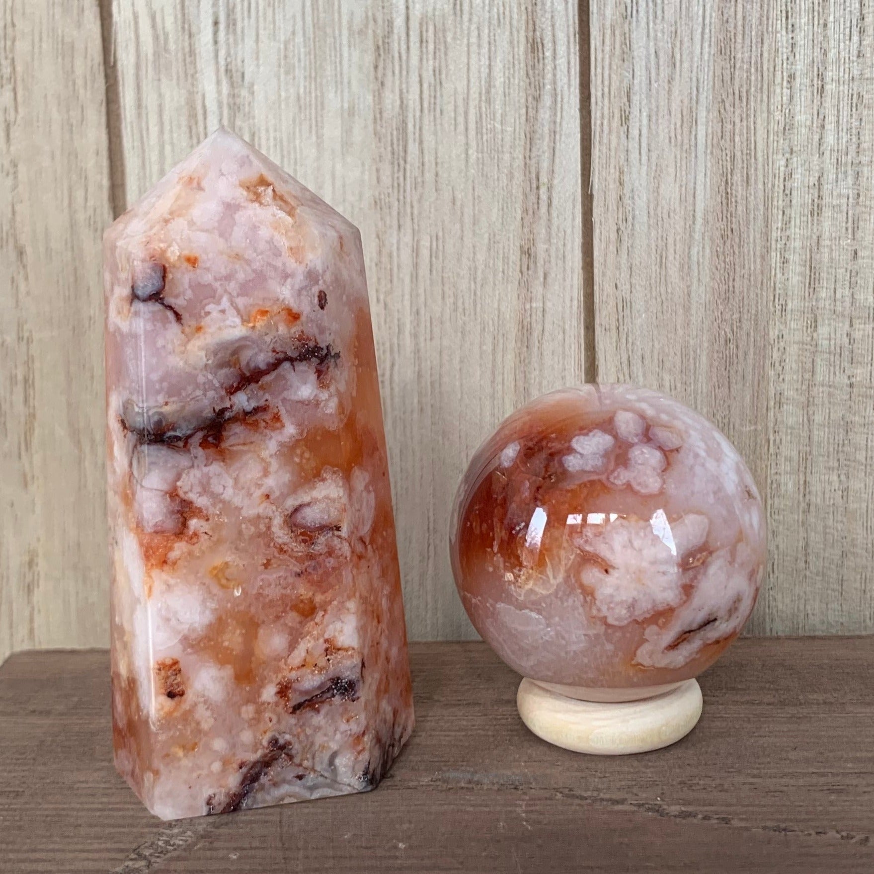 Mirabel Carnelian Flower Agate Sphere + Tower Set