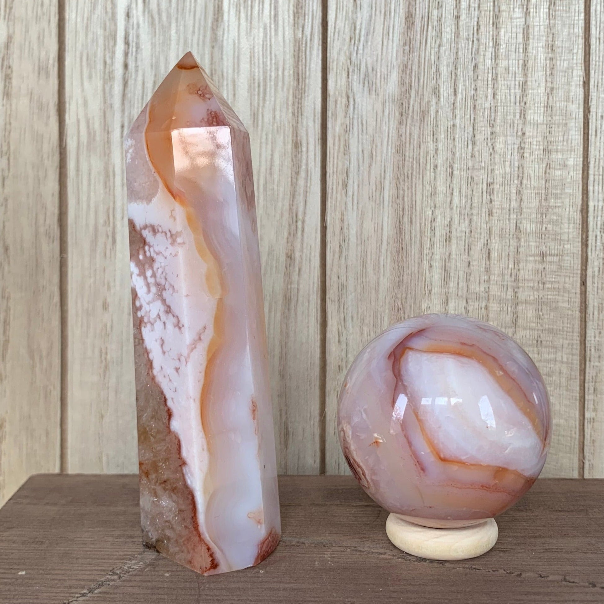 Phoebe Carnelian Flower Agate Sphere + Tower Set