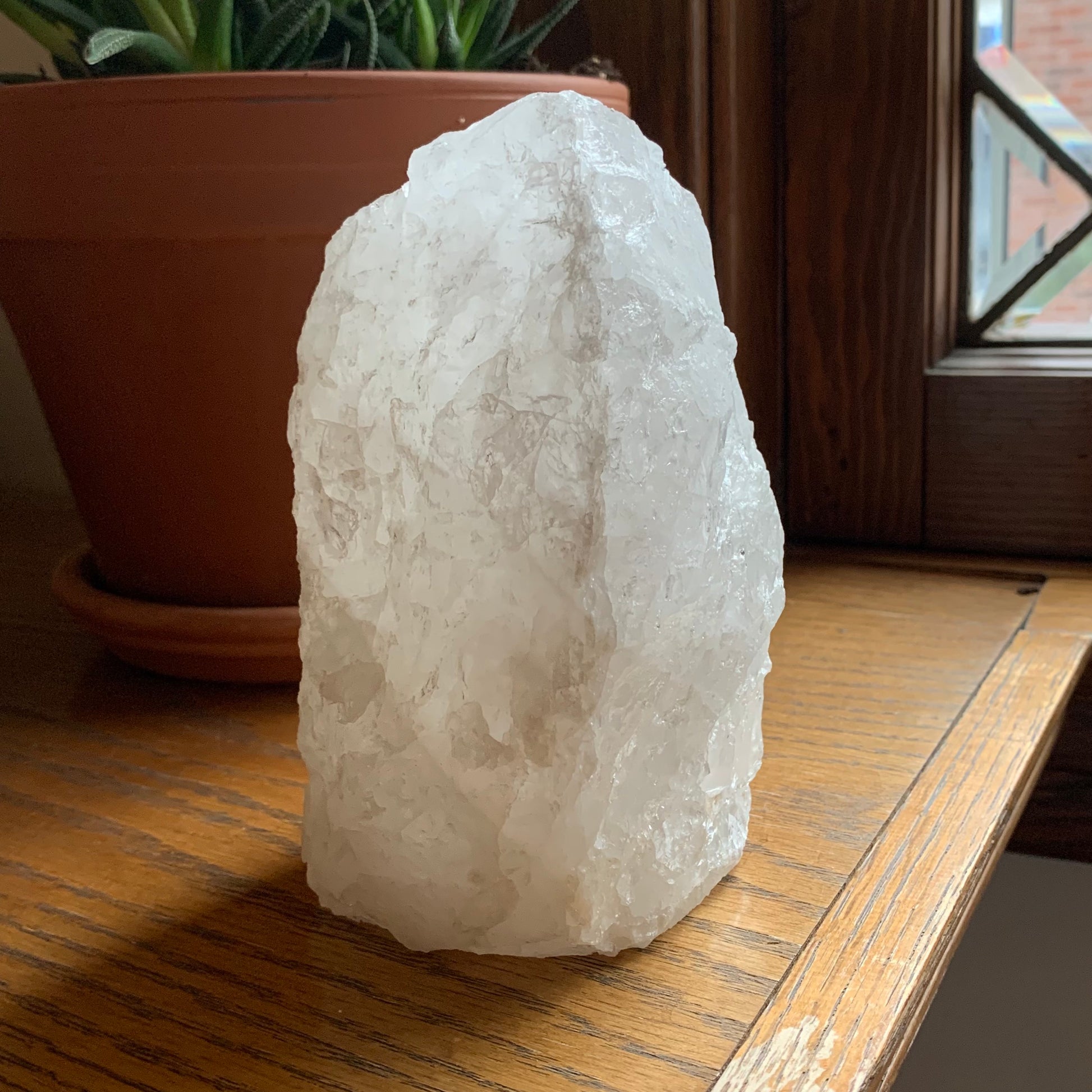 Brighten up your space with one of these Raw Clear Quartz Lamps. They provide a peaceful glow to any space. Each are unique. One will be intuitively chosen. They come with one LED USB plug. The are approx. 5-6" in height.