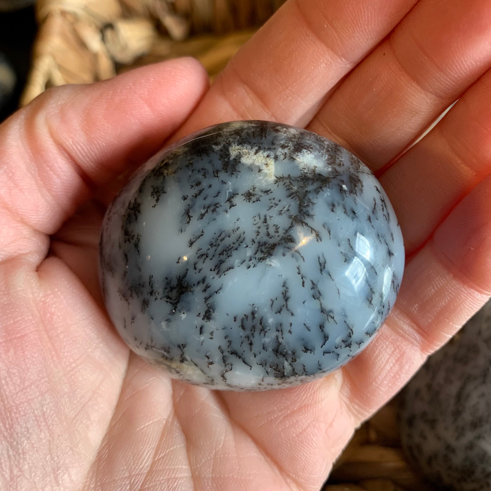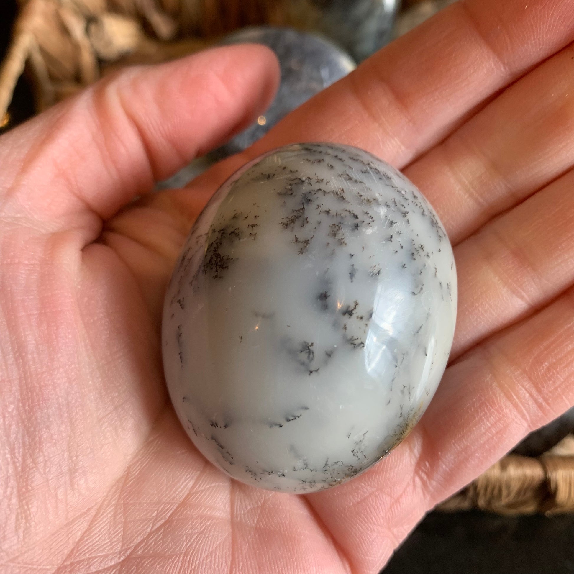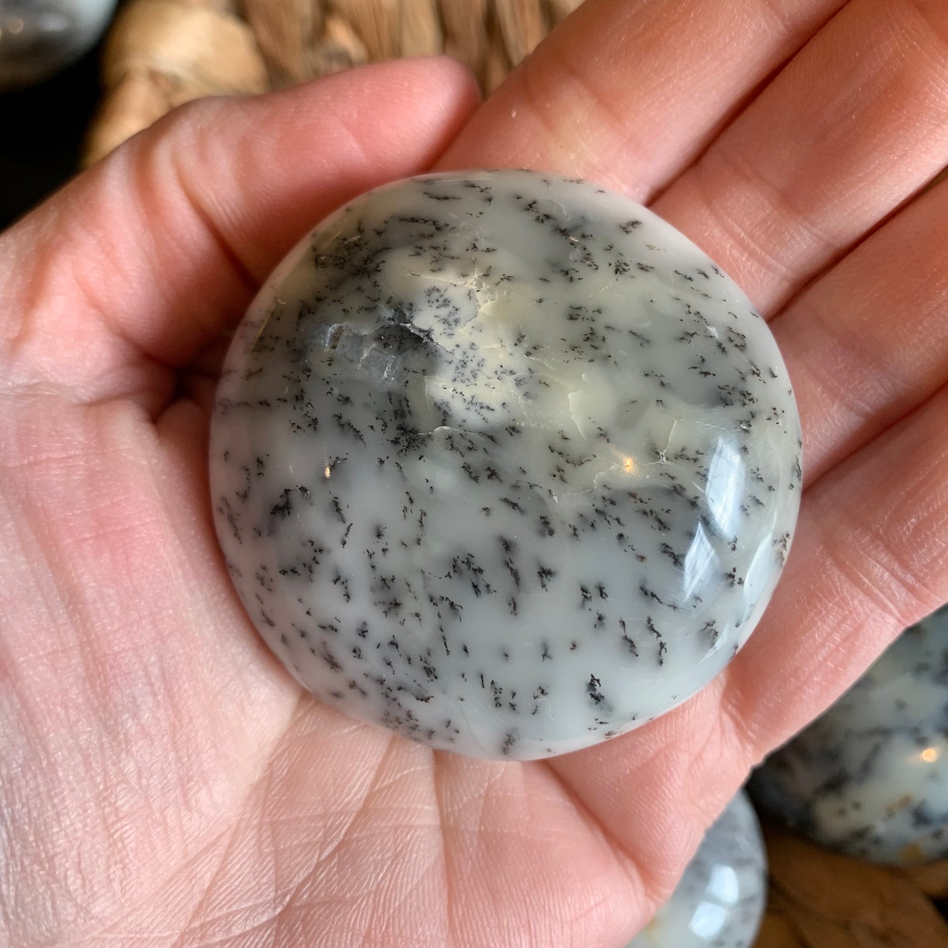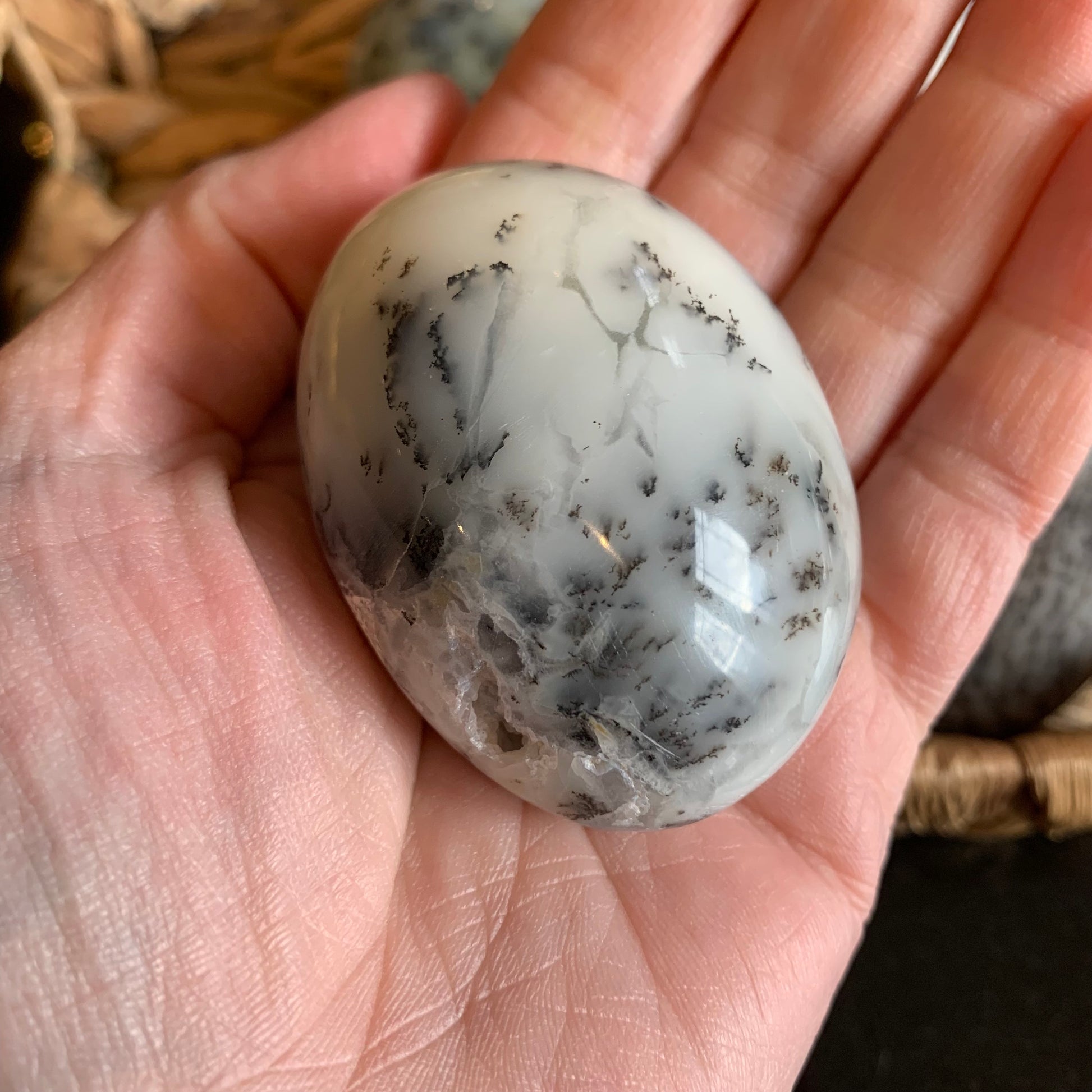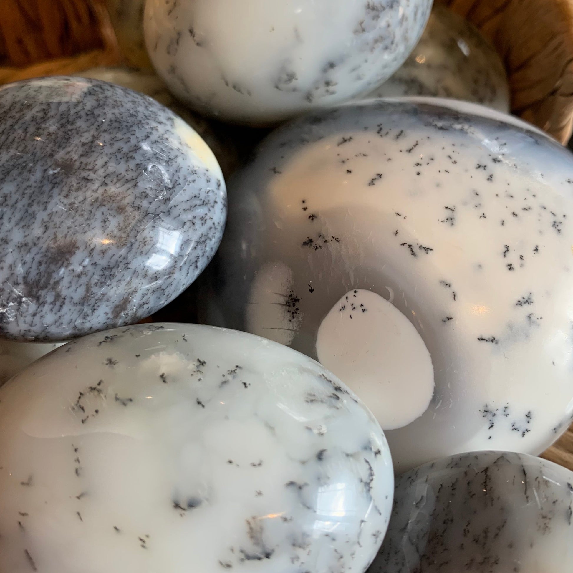 We are obsessed with dendrites and you will be too, once you get your hands on these creamy, Dendritic Agate Palm Stones. The texture on these are so buttery and smooth!