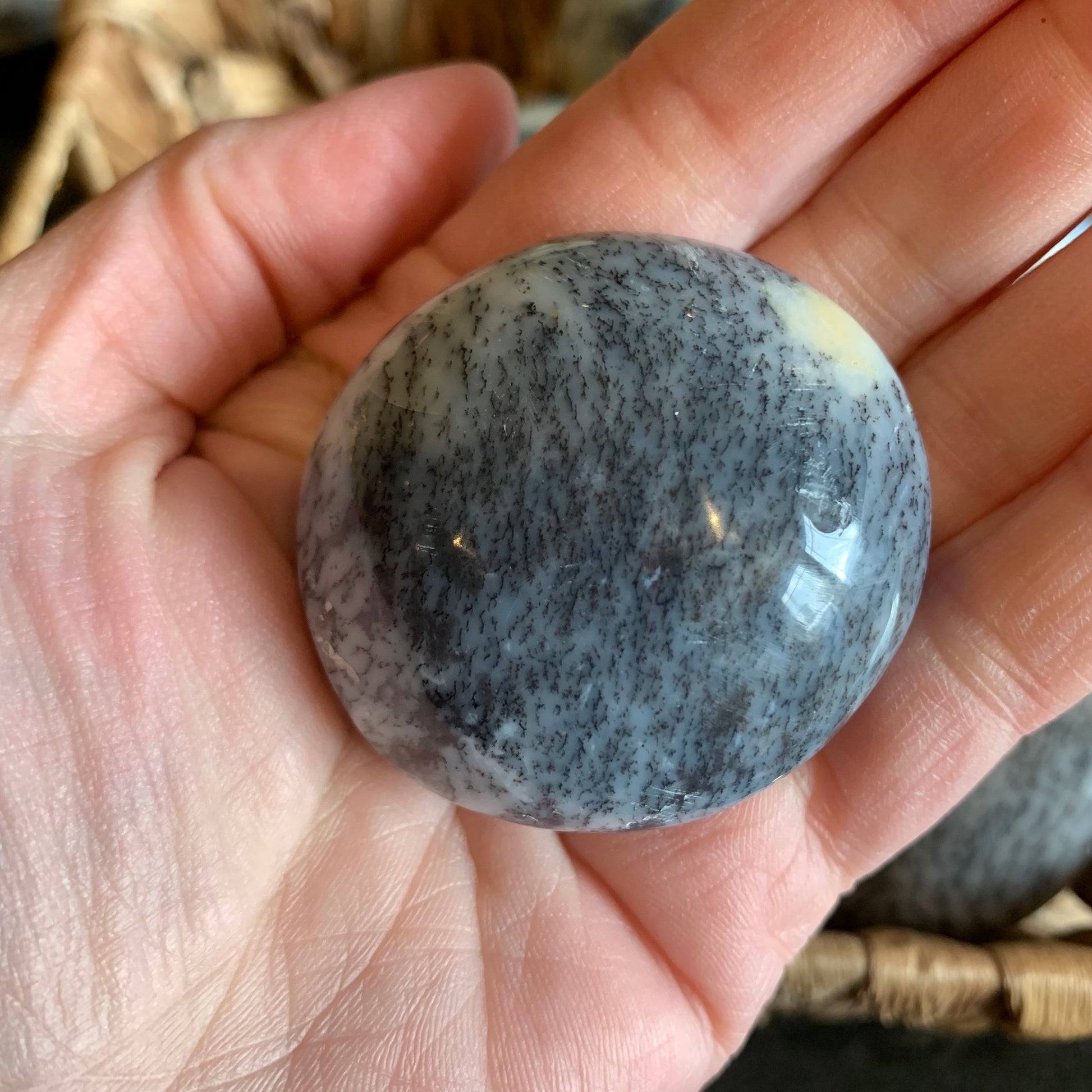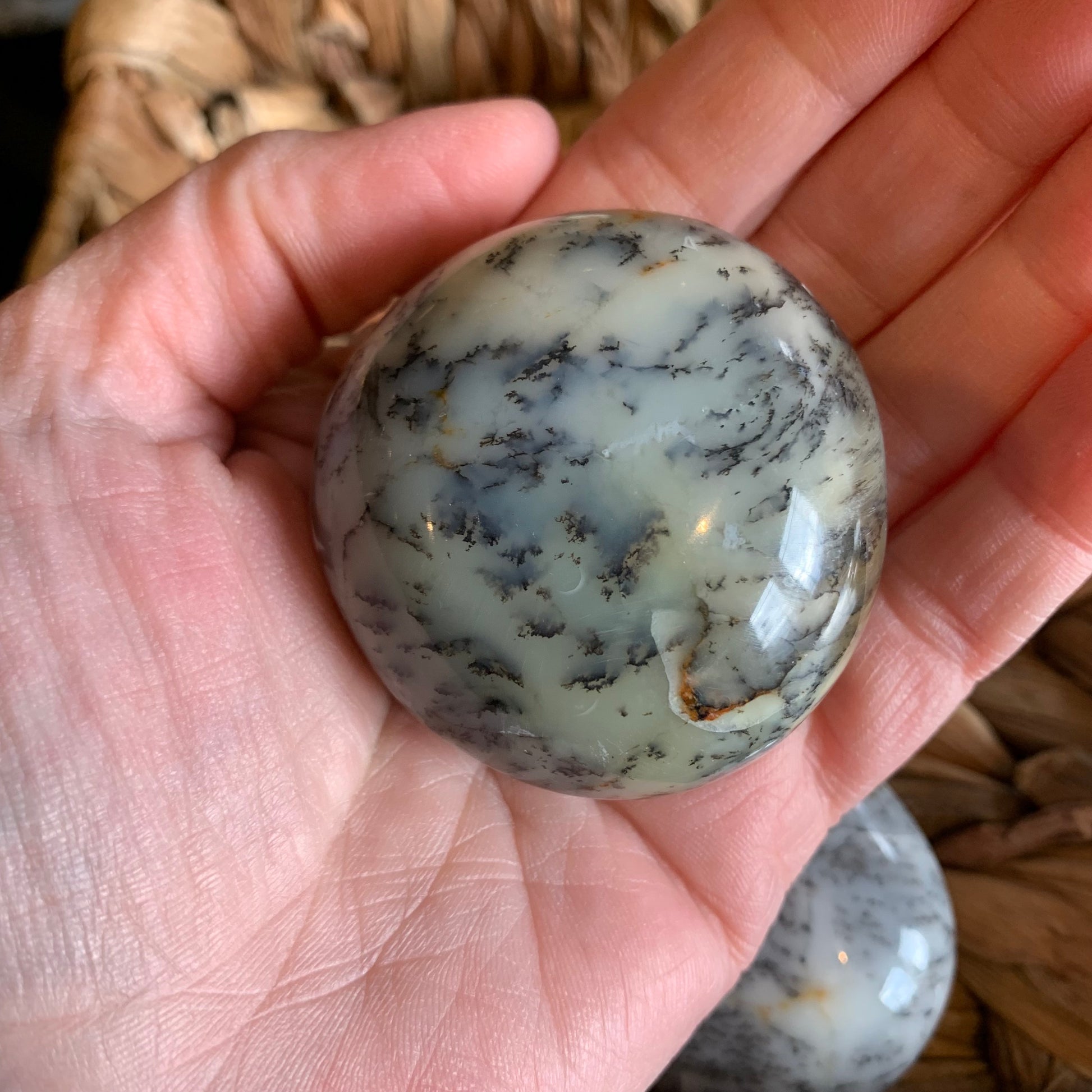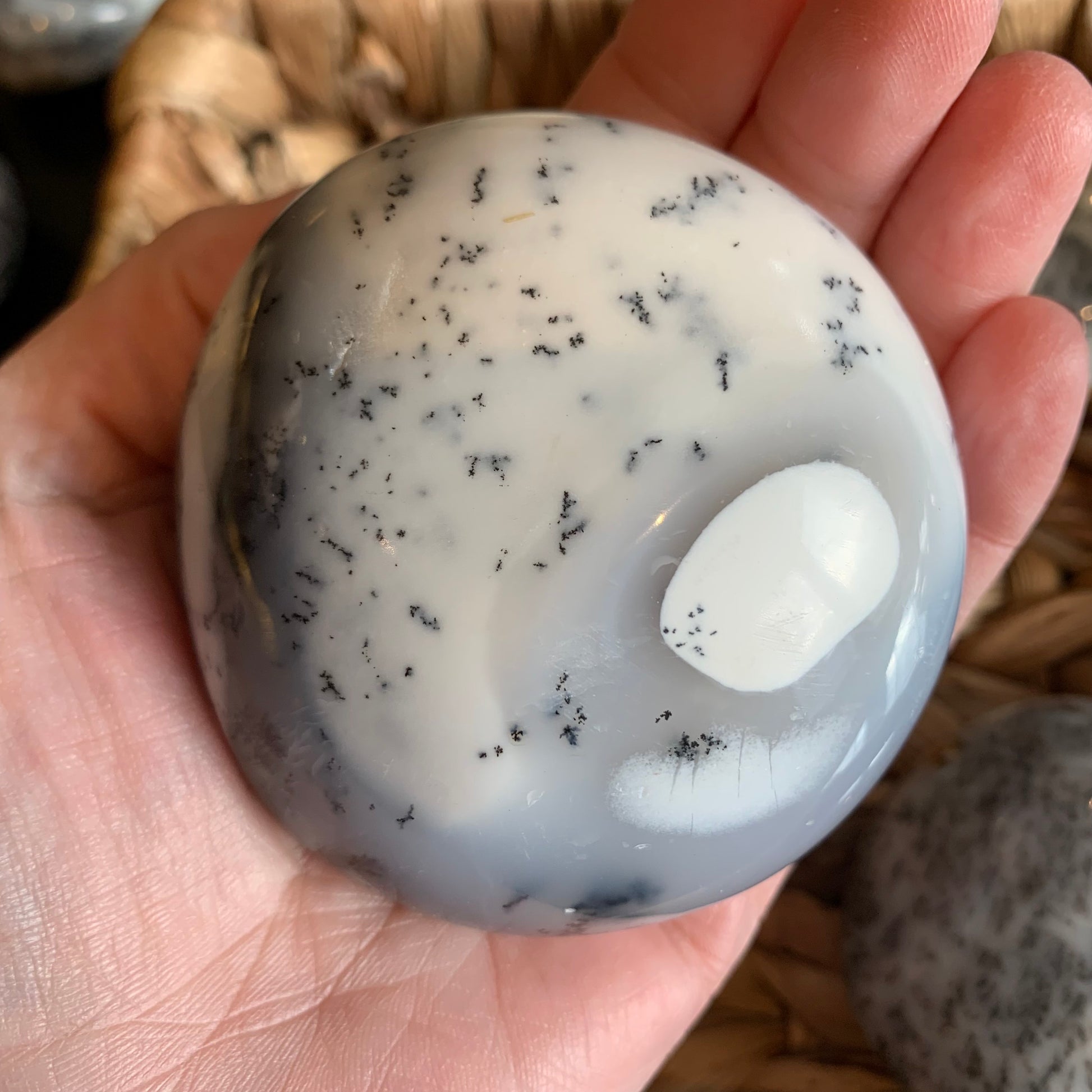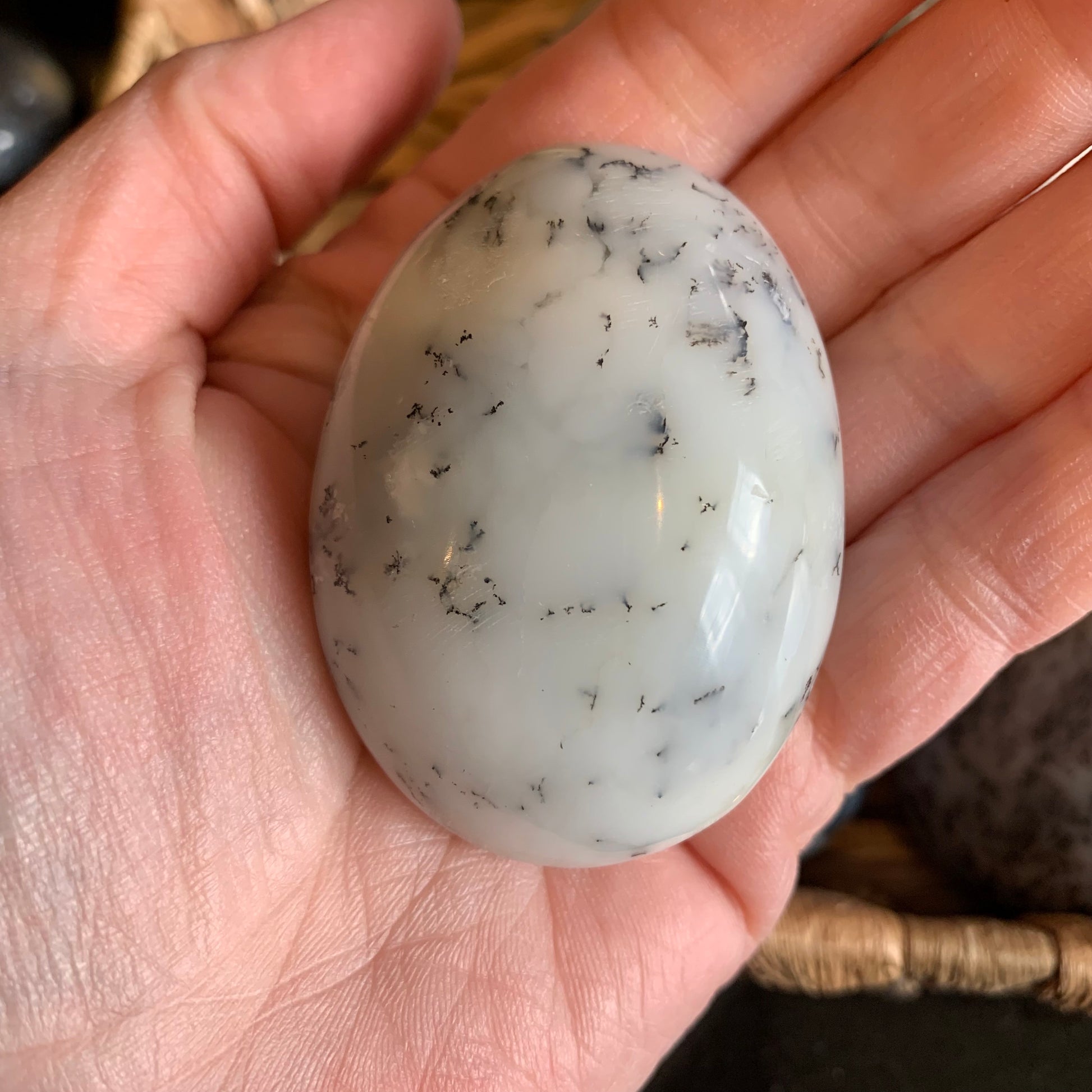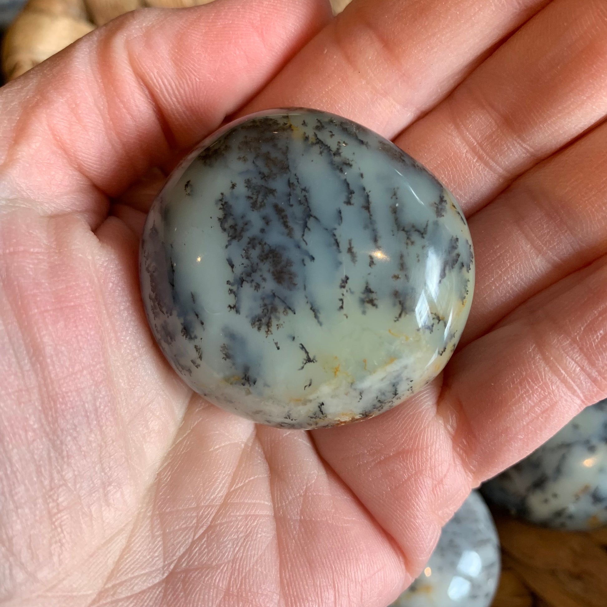 We are obsessed with dendrites and you will be too, once you get your hands on these creamy, Dendritic Agate Palm Stones. The texture on these are so buttery and smooth!