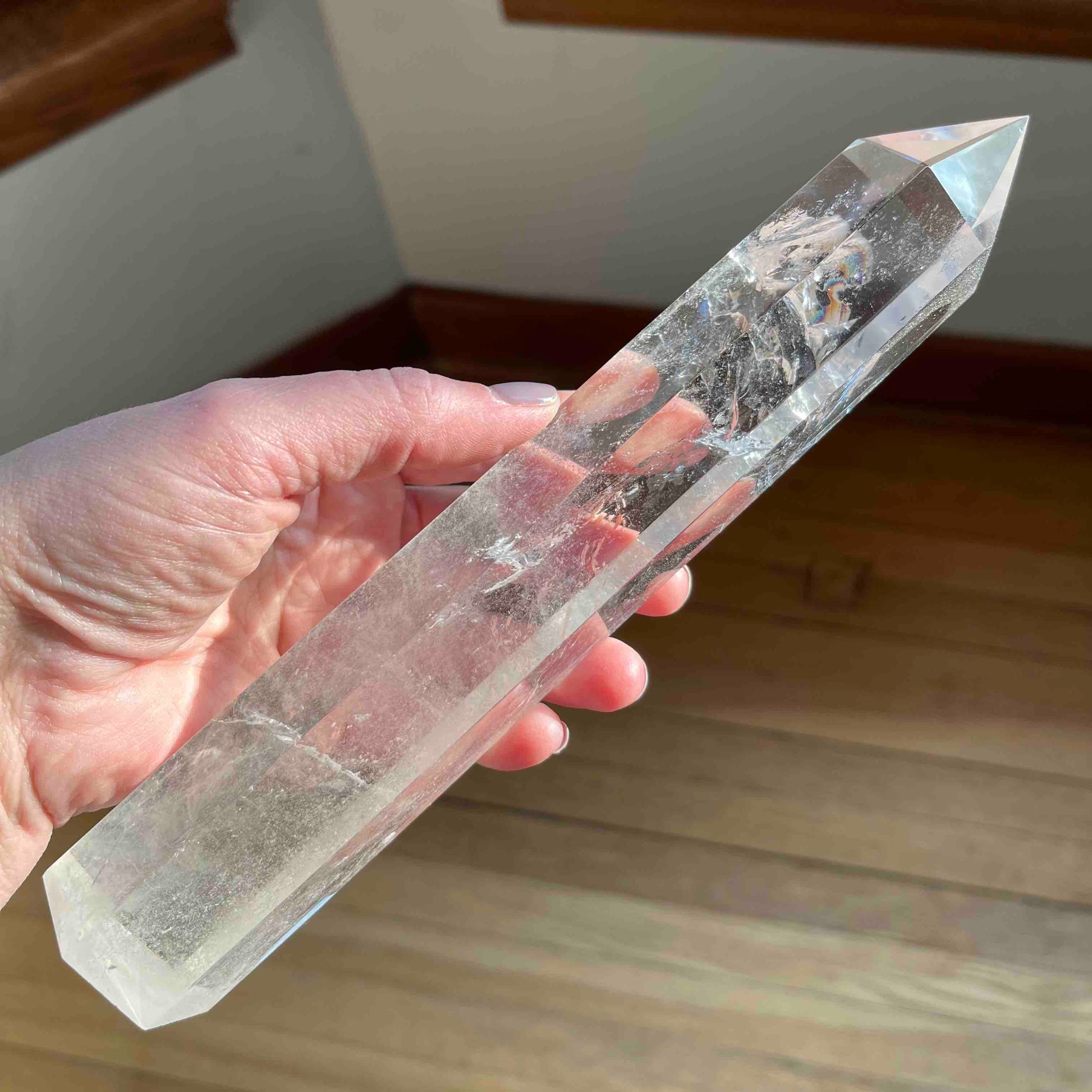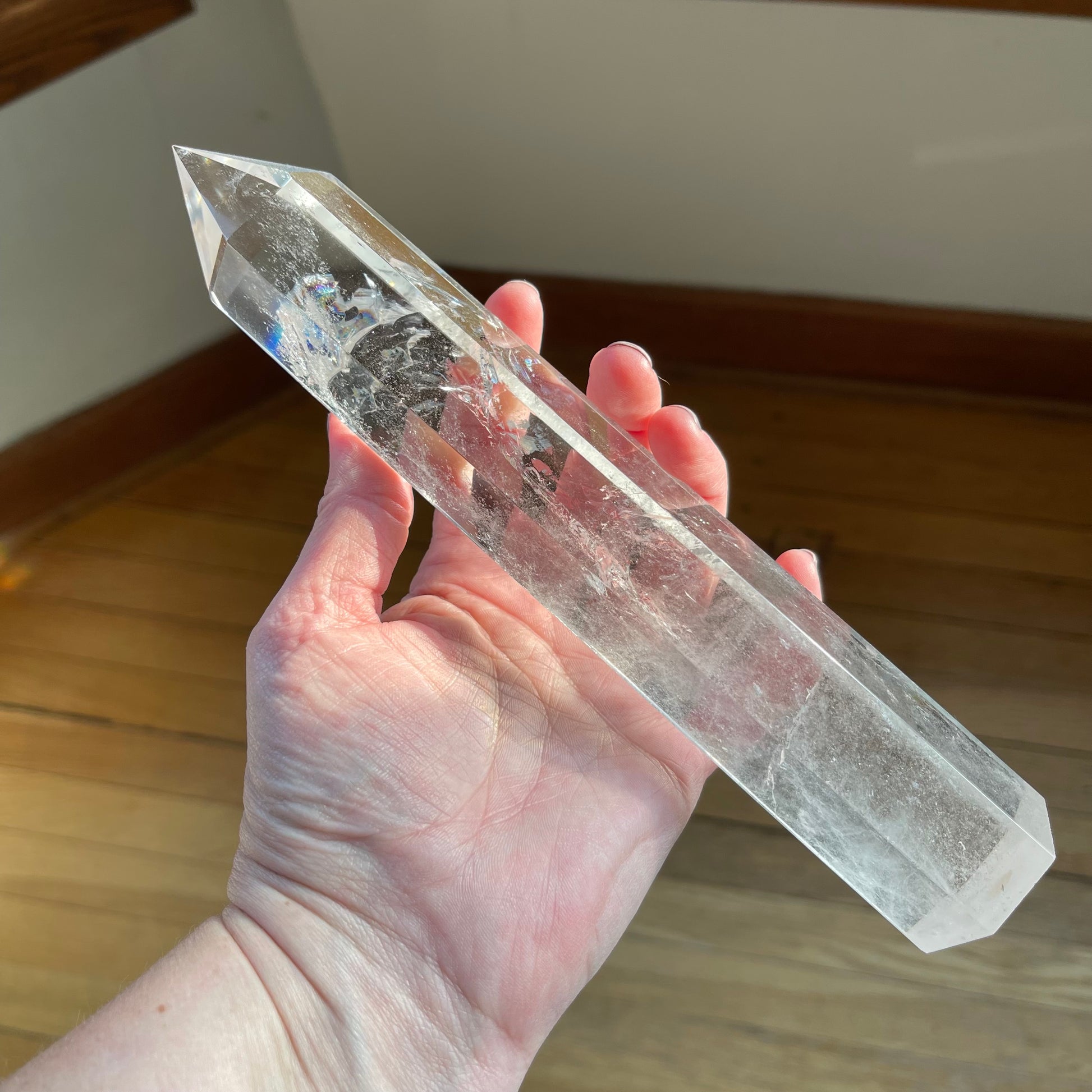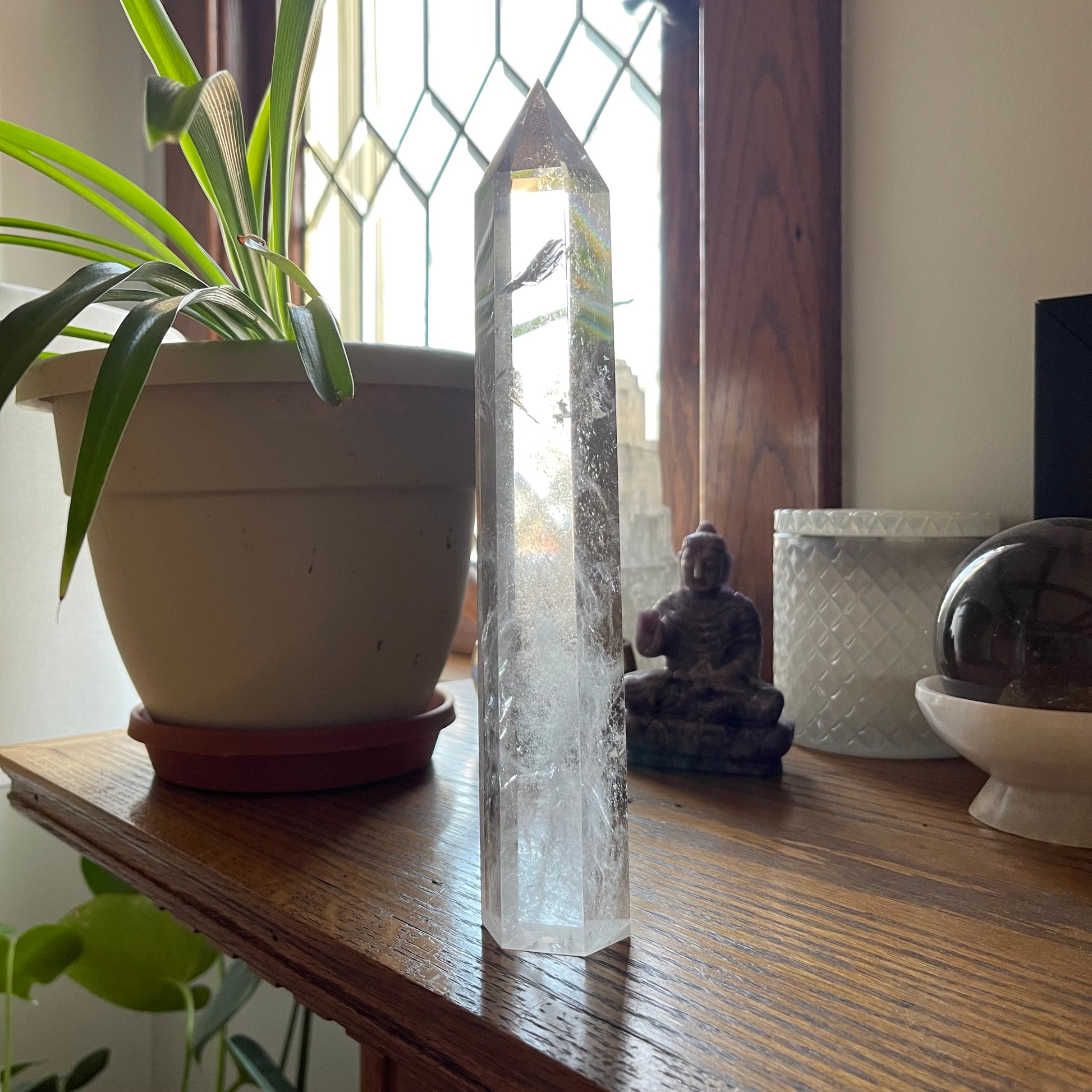 Extra Tall Clear Quartz Tower with Rainbows // 9" tall