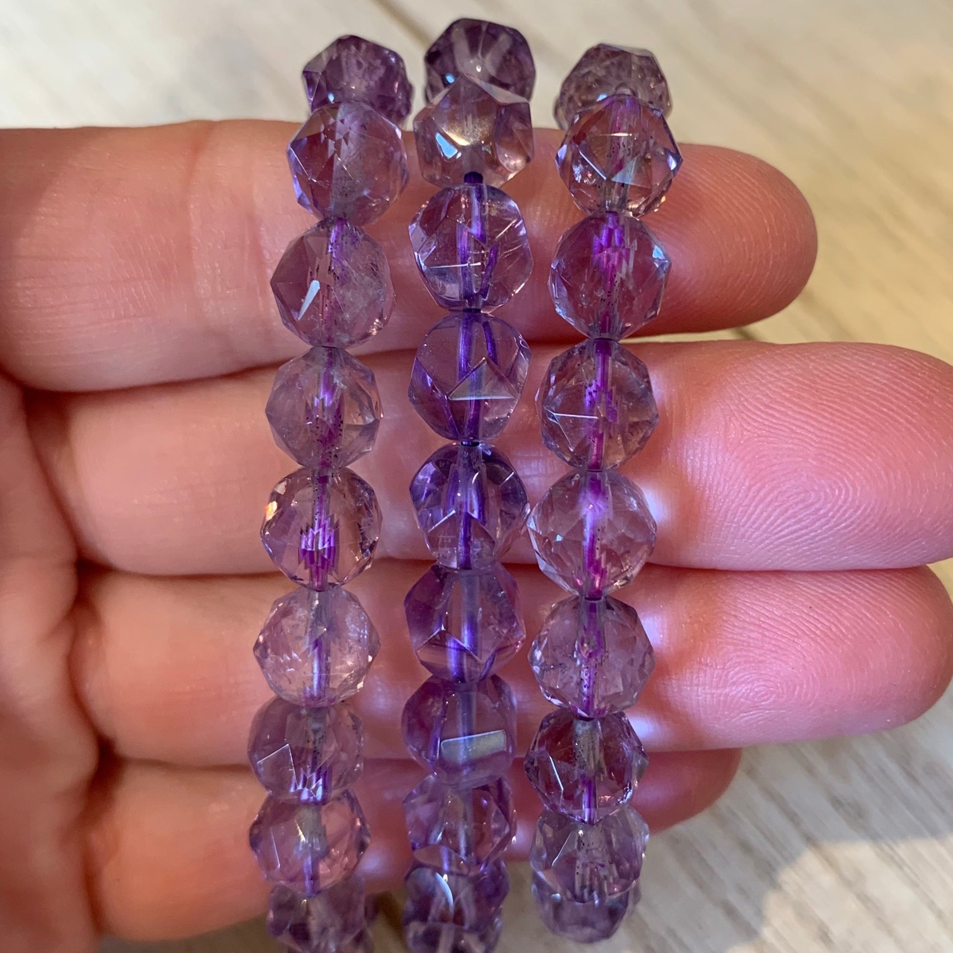 These faceted Amethyst bracelets give a new dimension to the normal beaded bracelet. These are 8mm bead and 7".