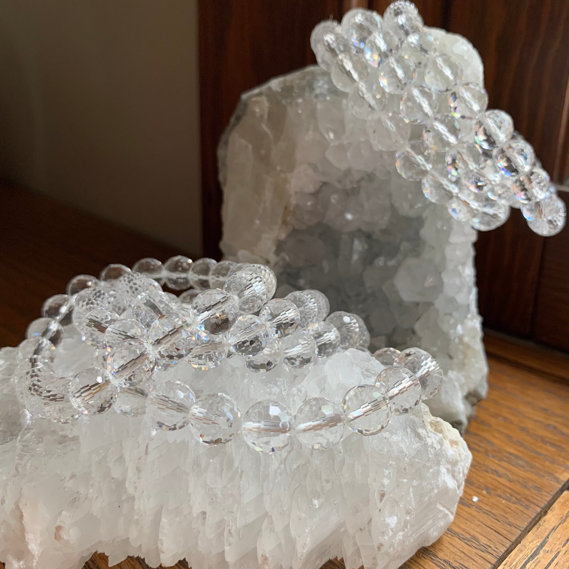 Faceted Clear Quartz Bracelets // 10mm + 7.5" bracelet