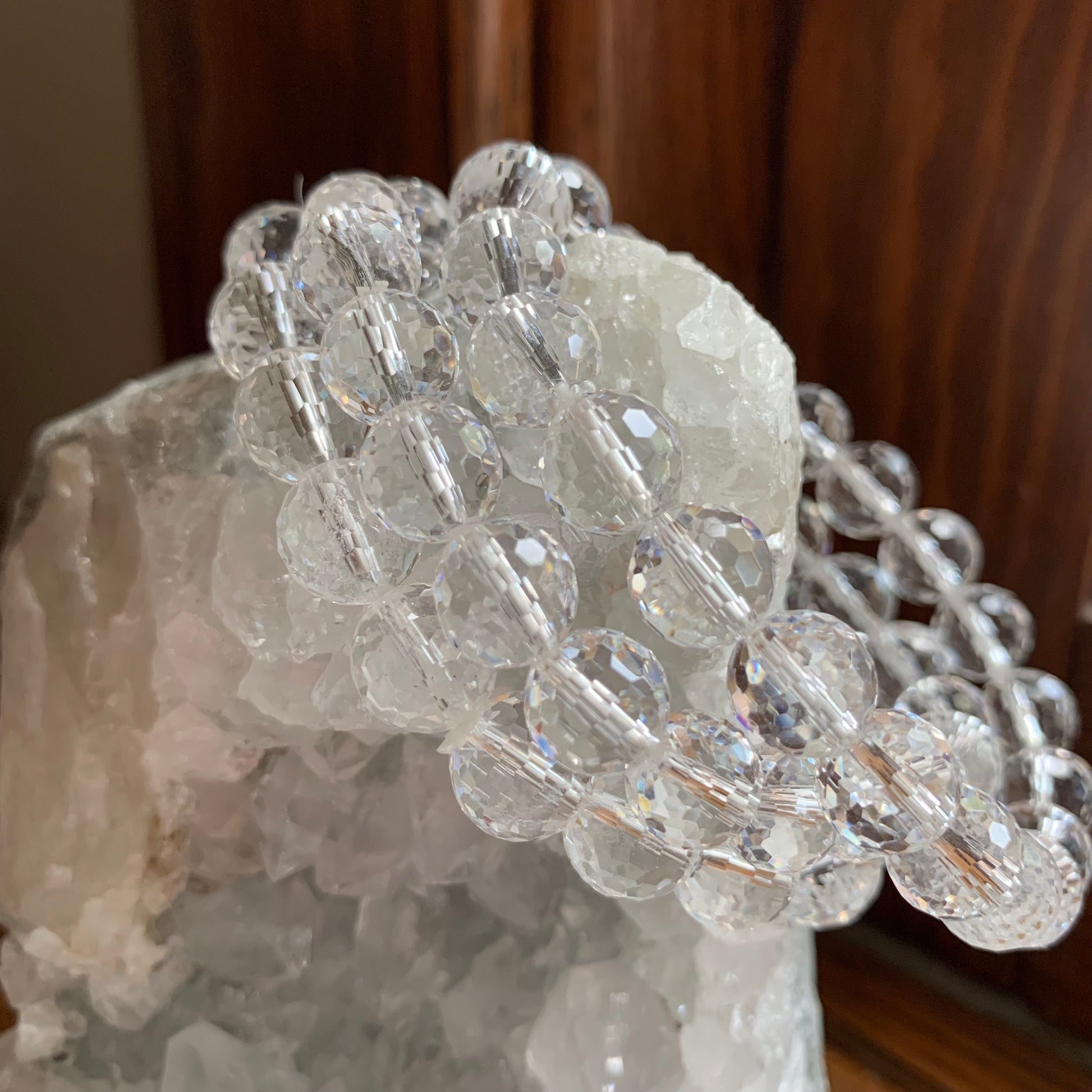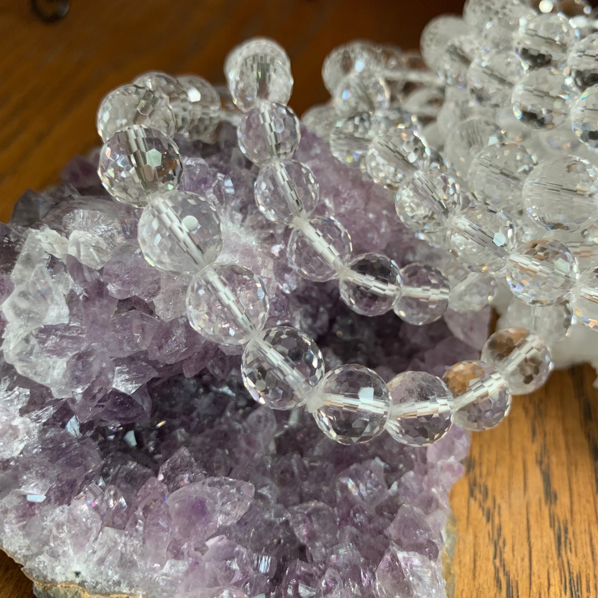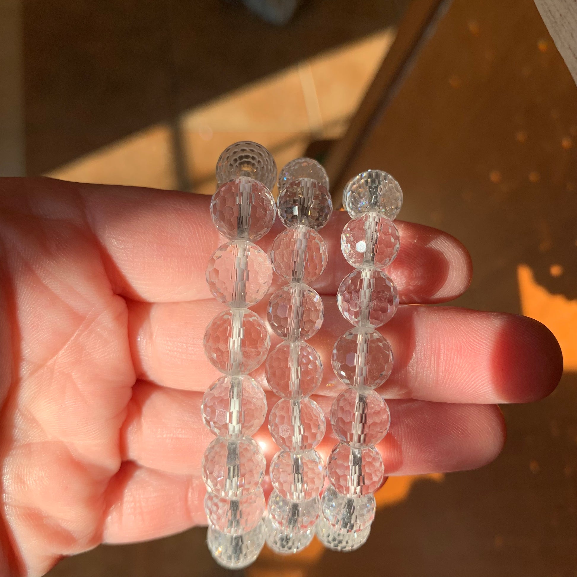 These faceted Clear Quartz bracelets are simply gorgeous. They are like mini disco globes. Super high clarity. These are 10mm bead and 7.5".