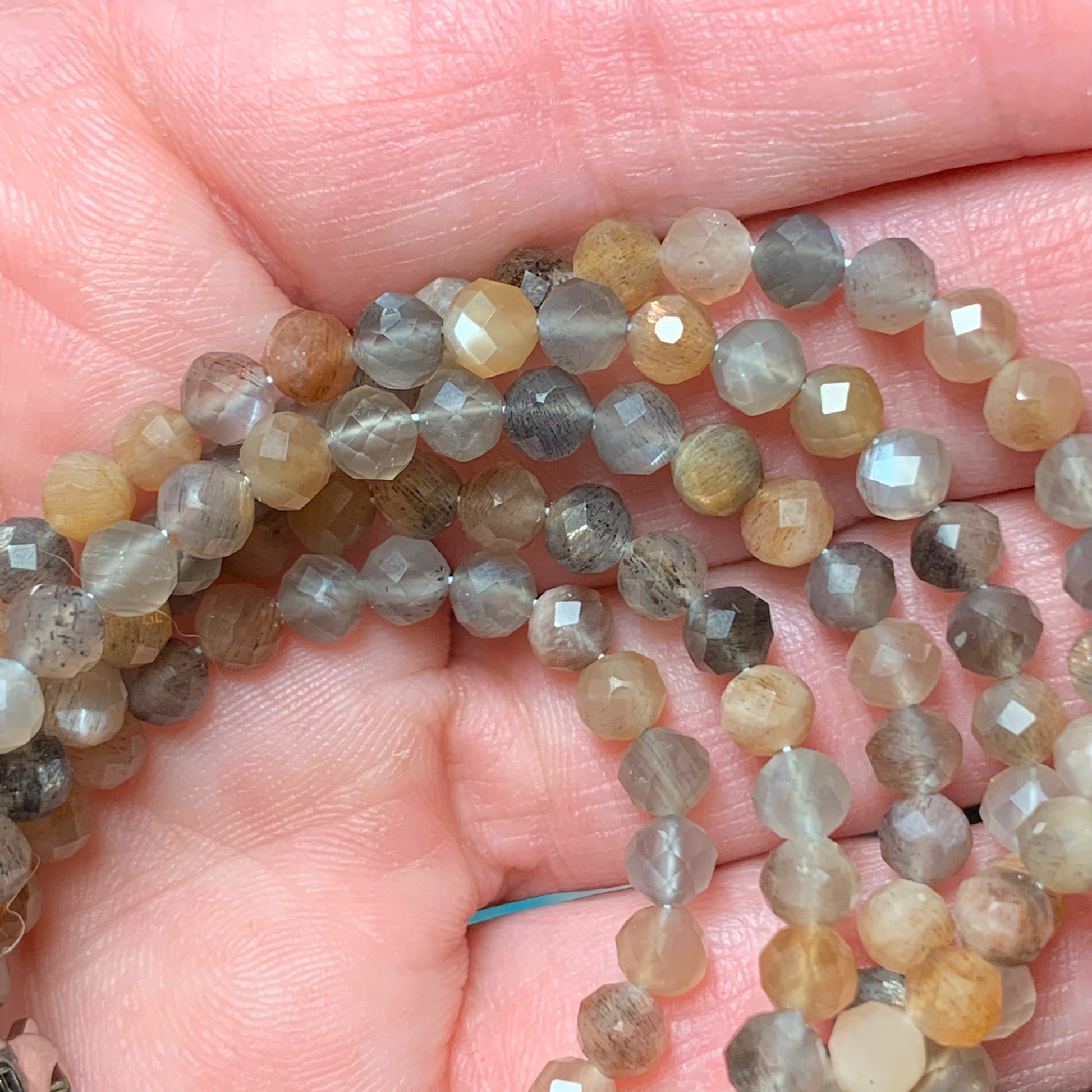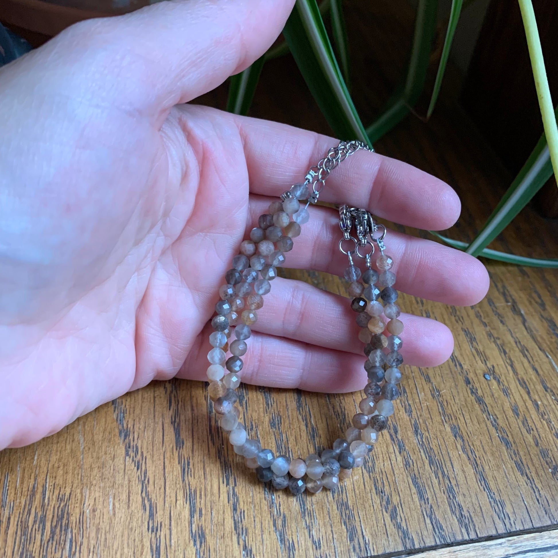 Faceted Peach + Black Moonstone with adjustable lobster claw clasp
