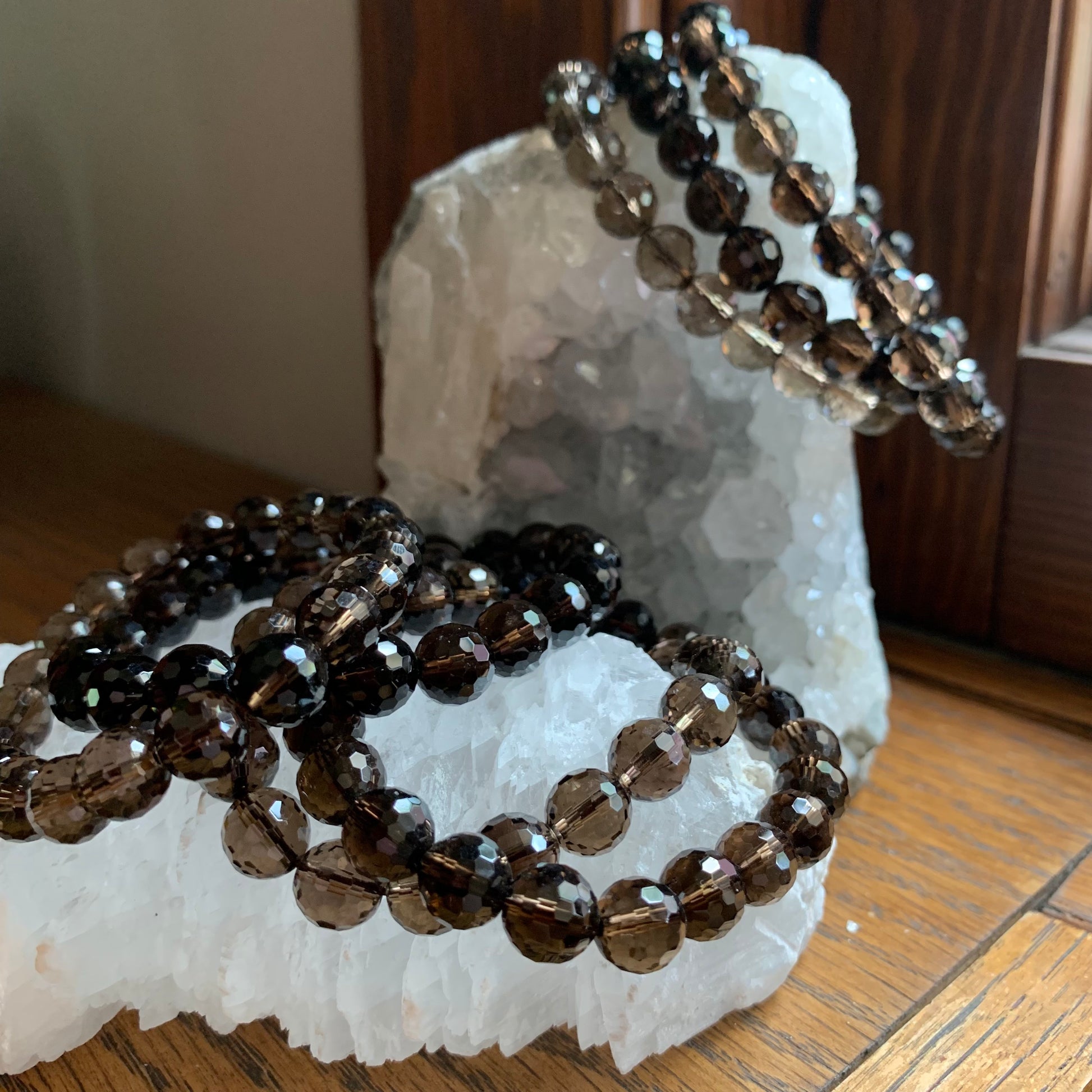 Faceted Smoky Quartz Bracelets // 8-9mm bead + 7.5" bracelet
