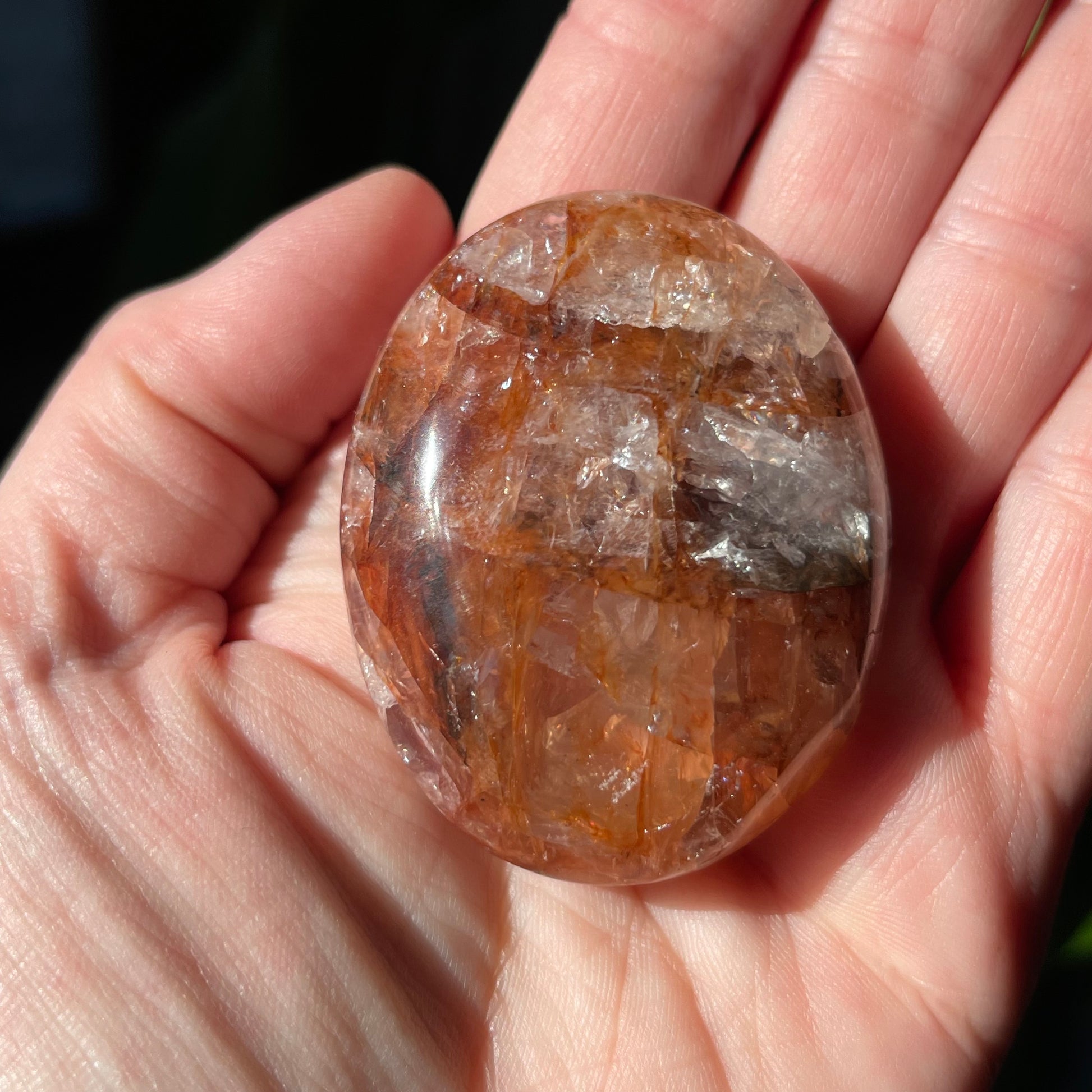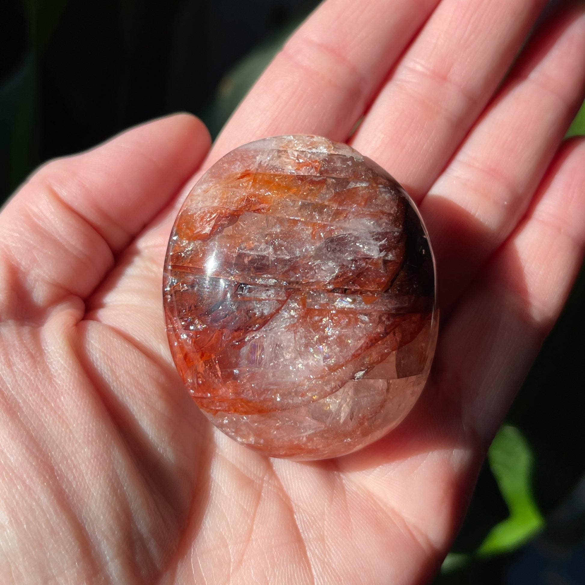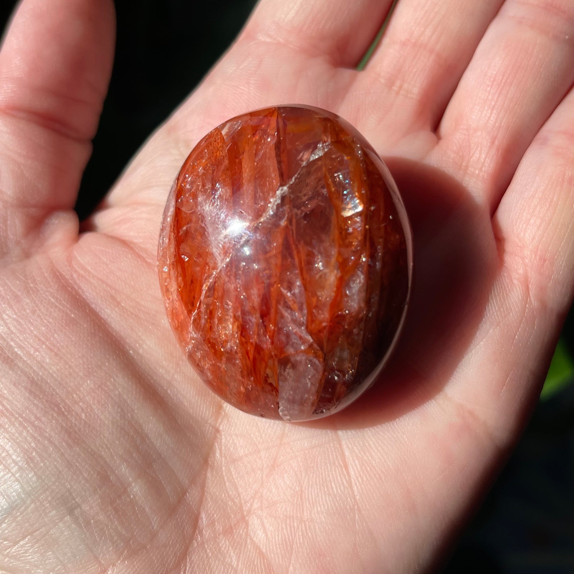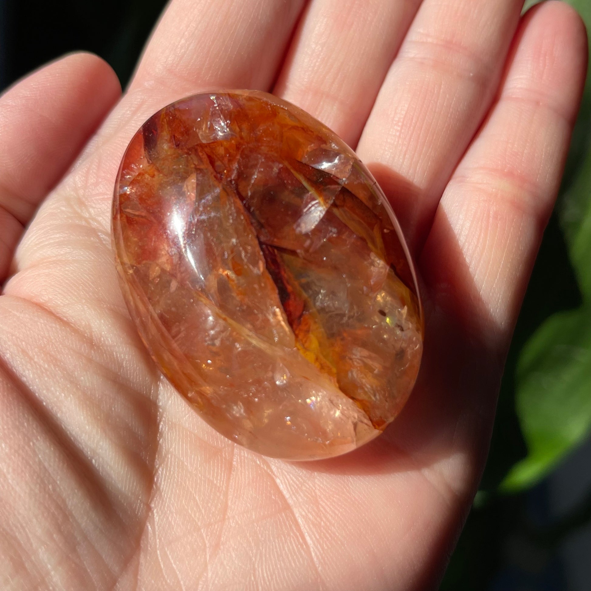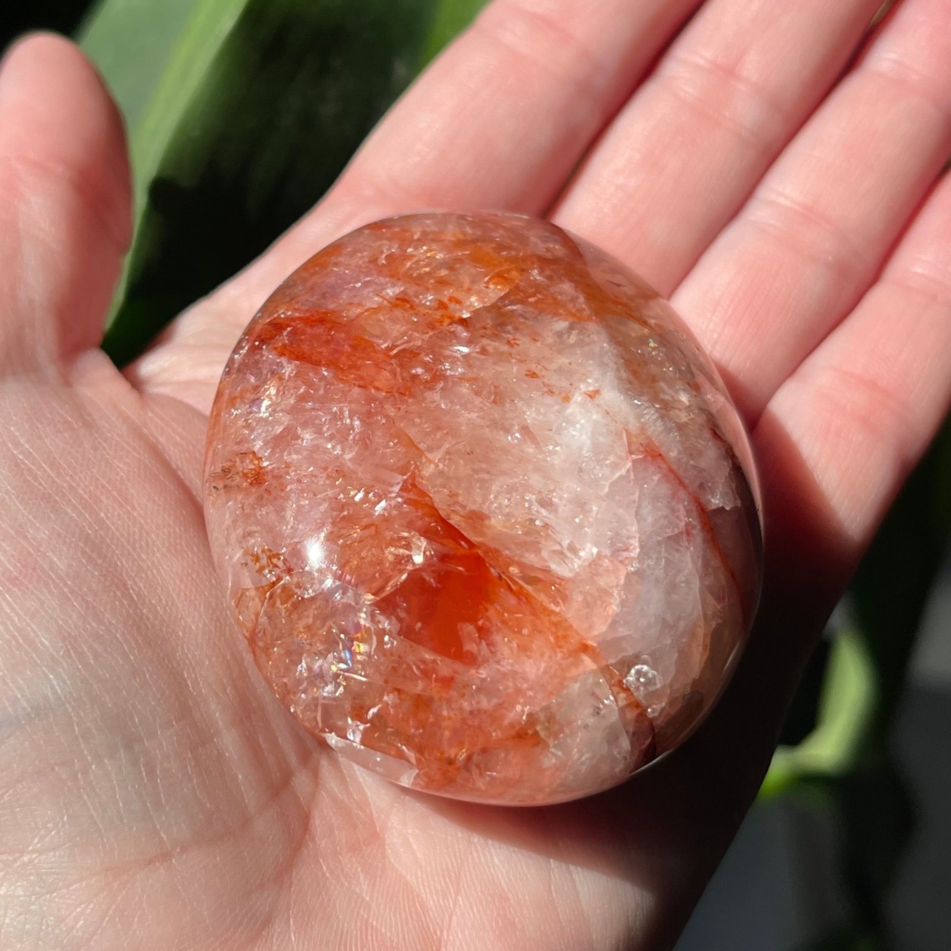 Fire Quartz Palm Stones are such a great way to connect to your root and sacral chakras. These are nice palms that have killer definition and rainbows!