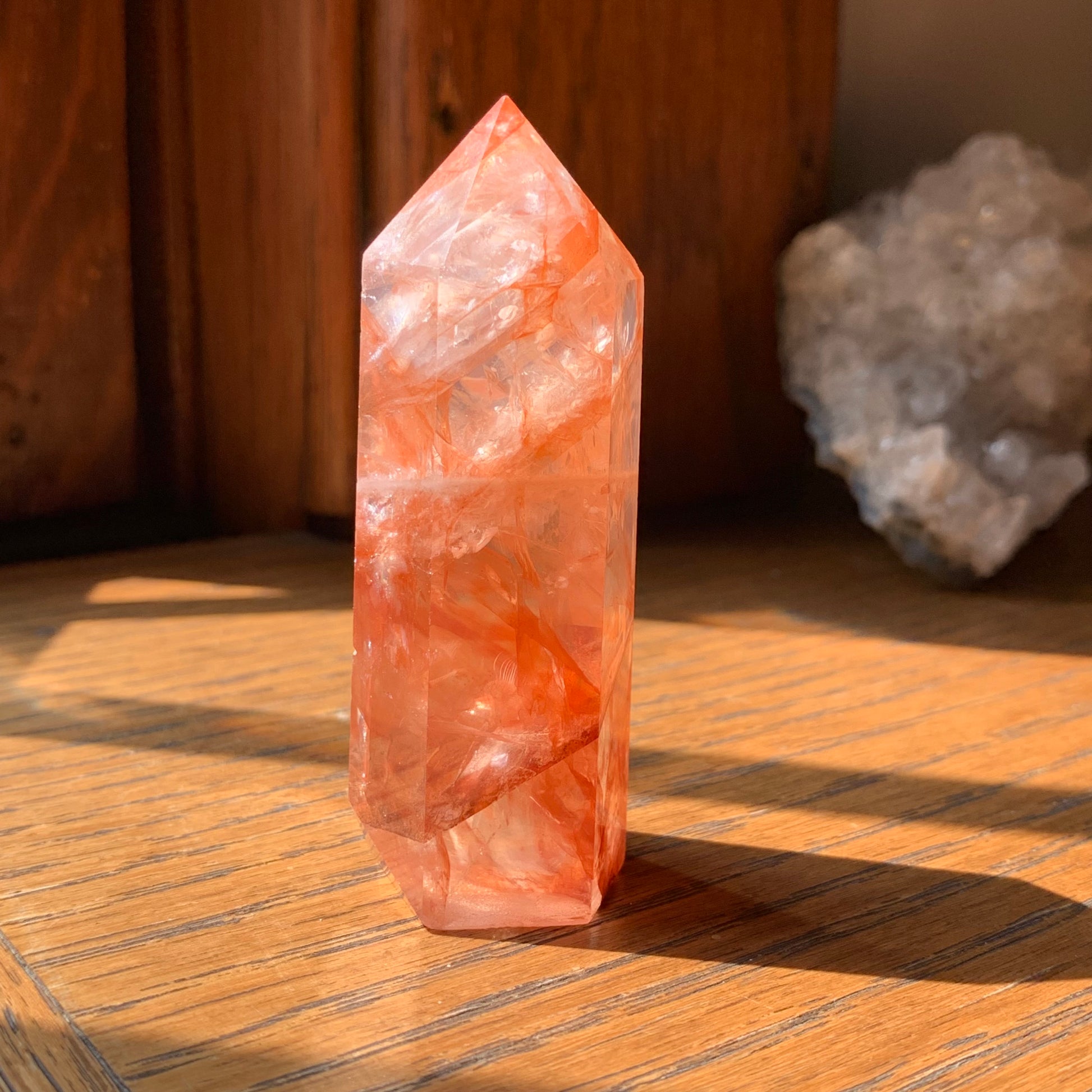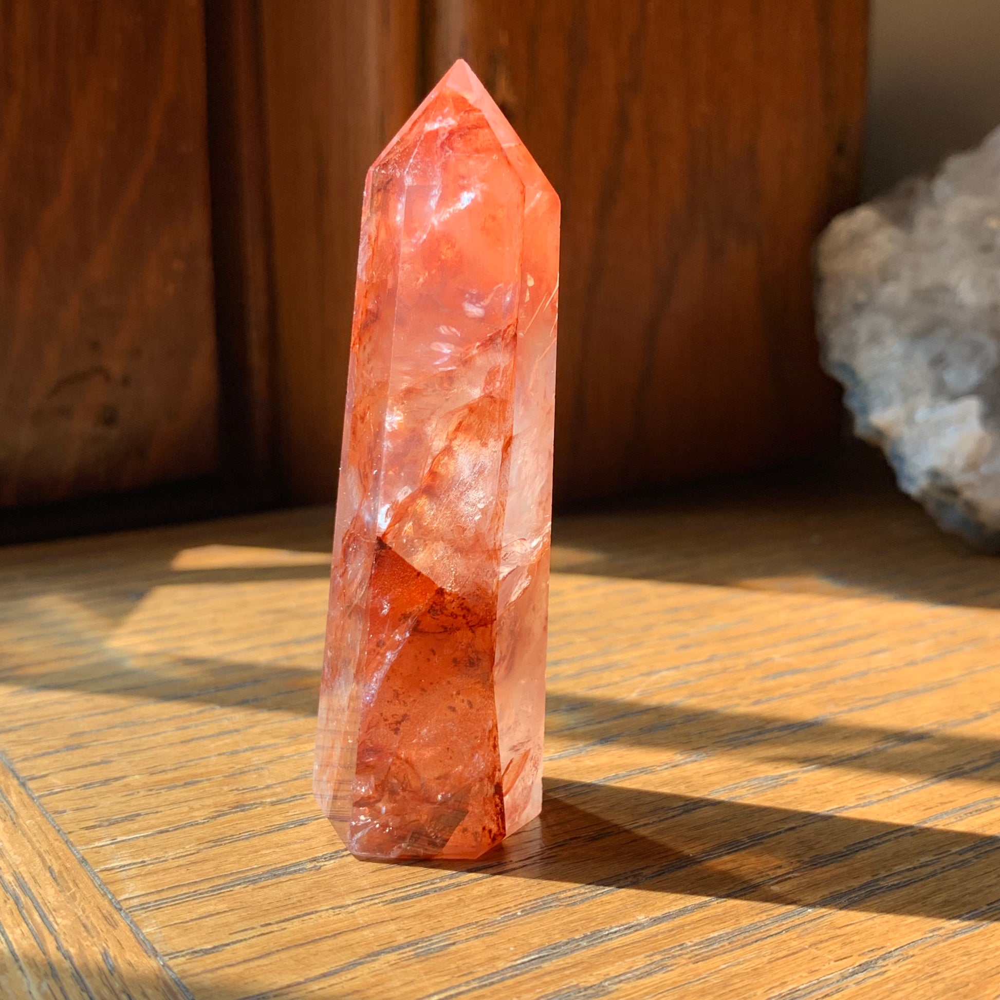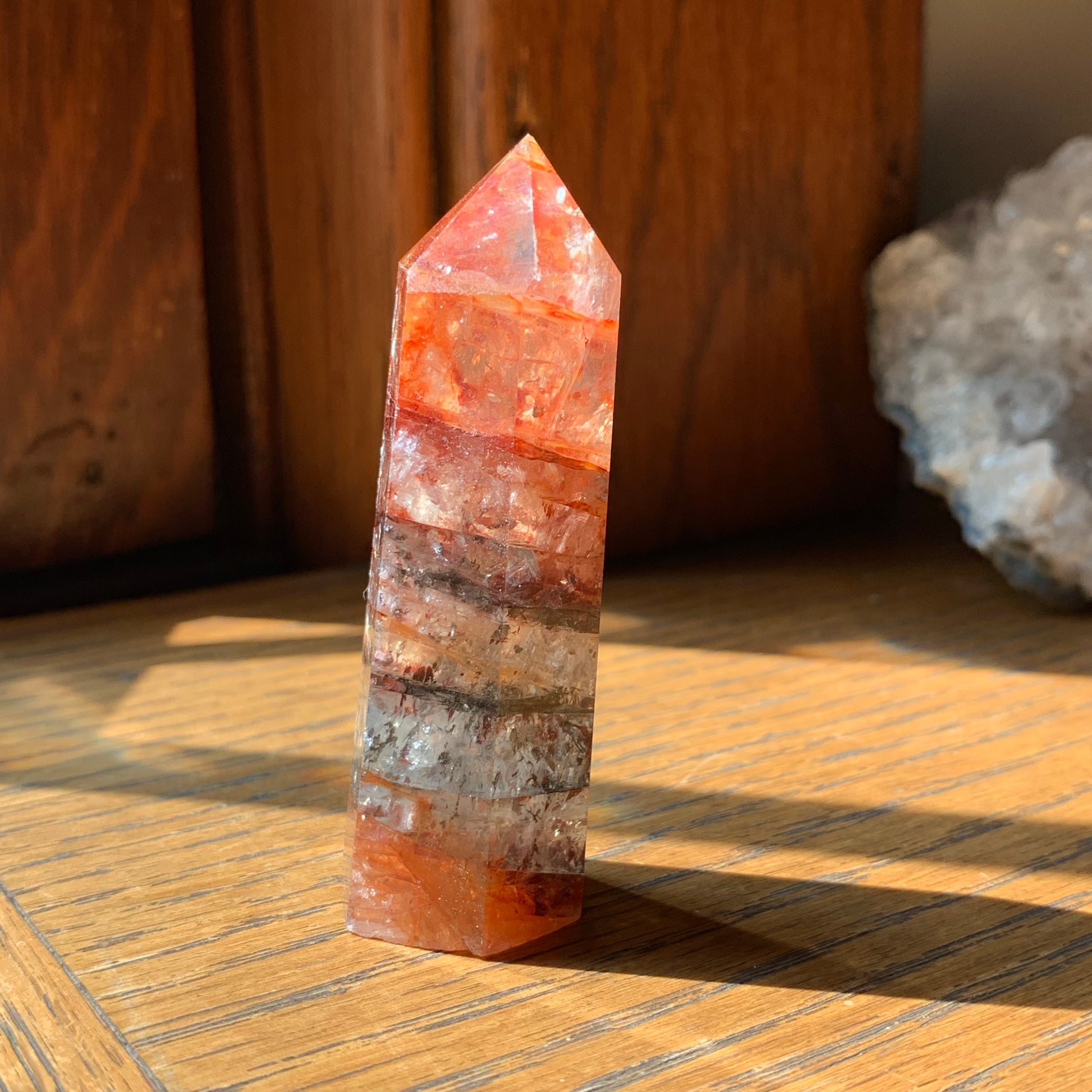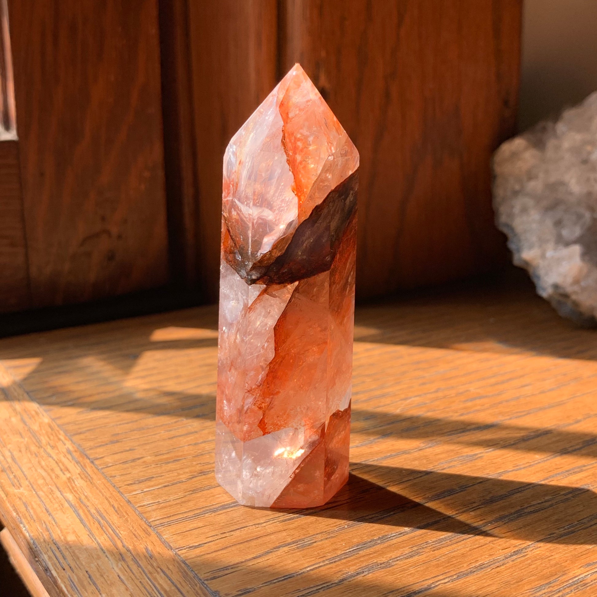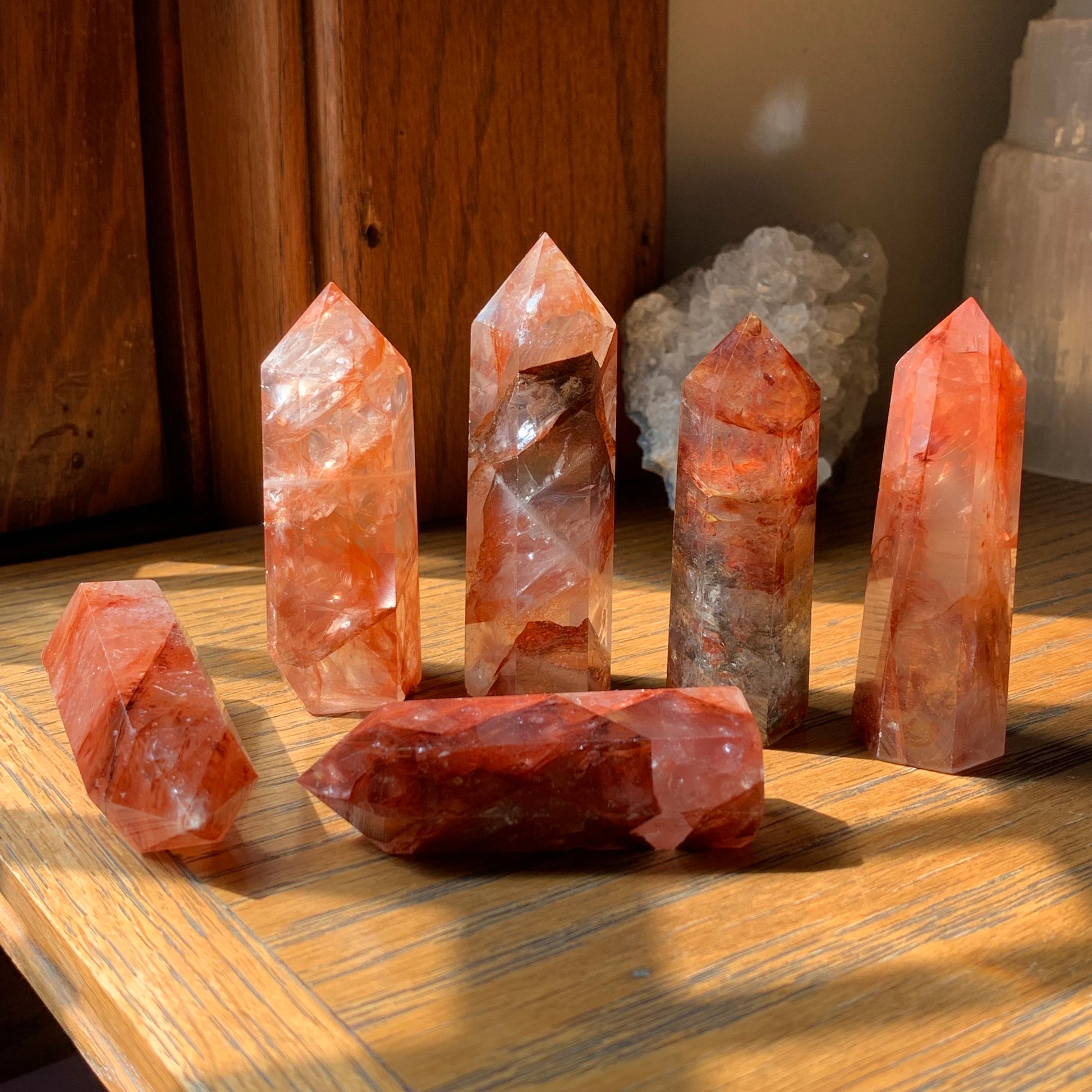 These amazing Fire Quartz Towers have amazing clarity, definition, rainbows and depth of color! We are obsessed with them and wish we sourced more!