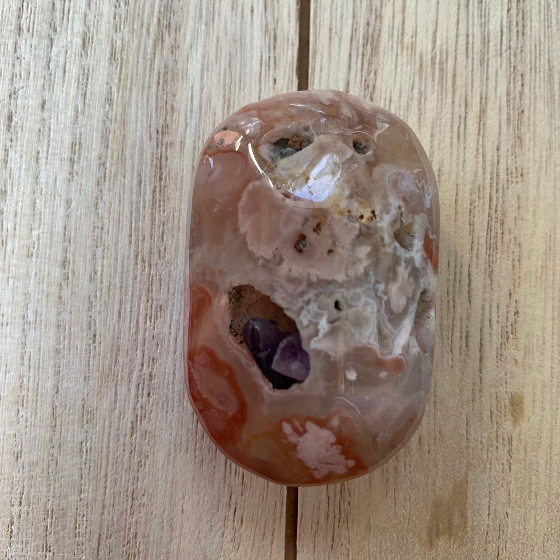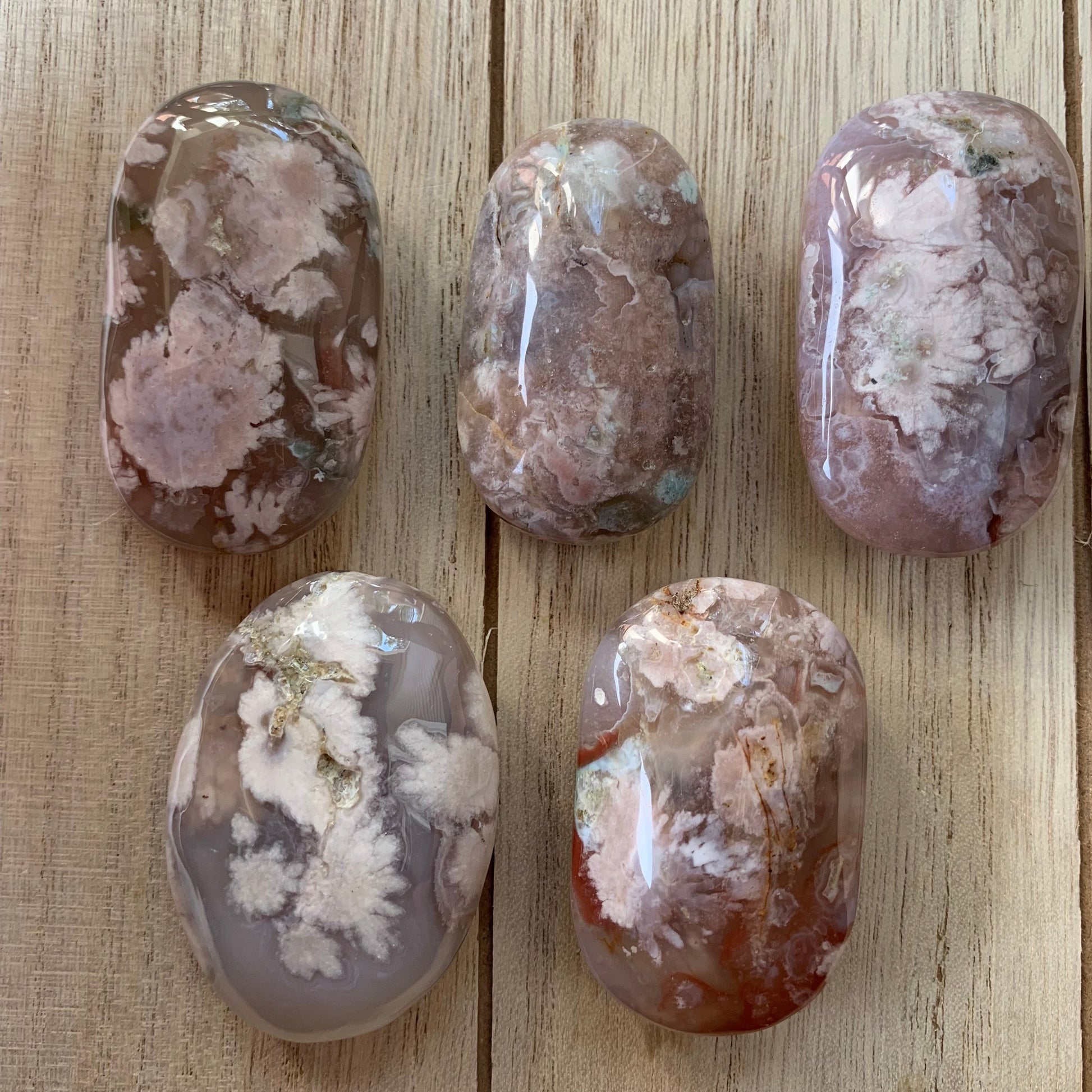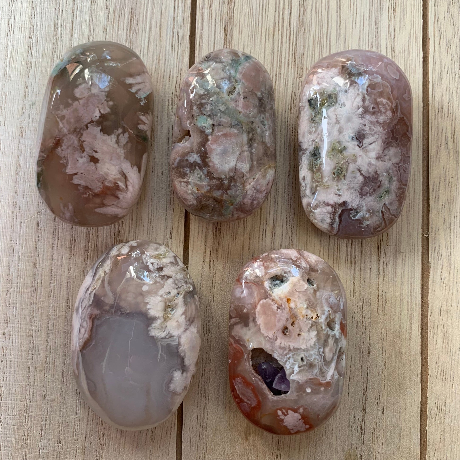 Flower Agate Palm Stones - Medium Size // 2" h x 1.25" w