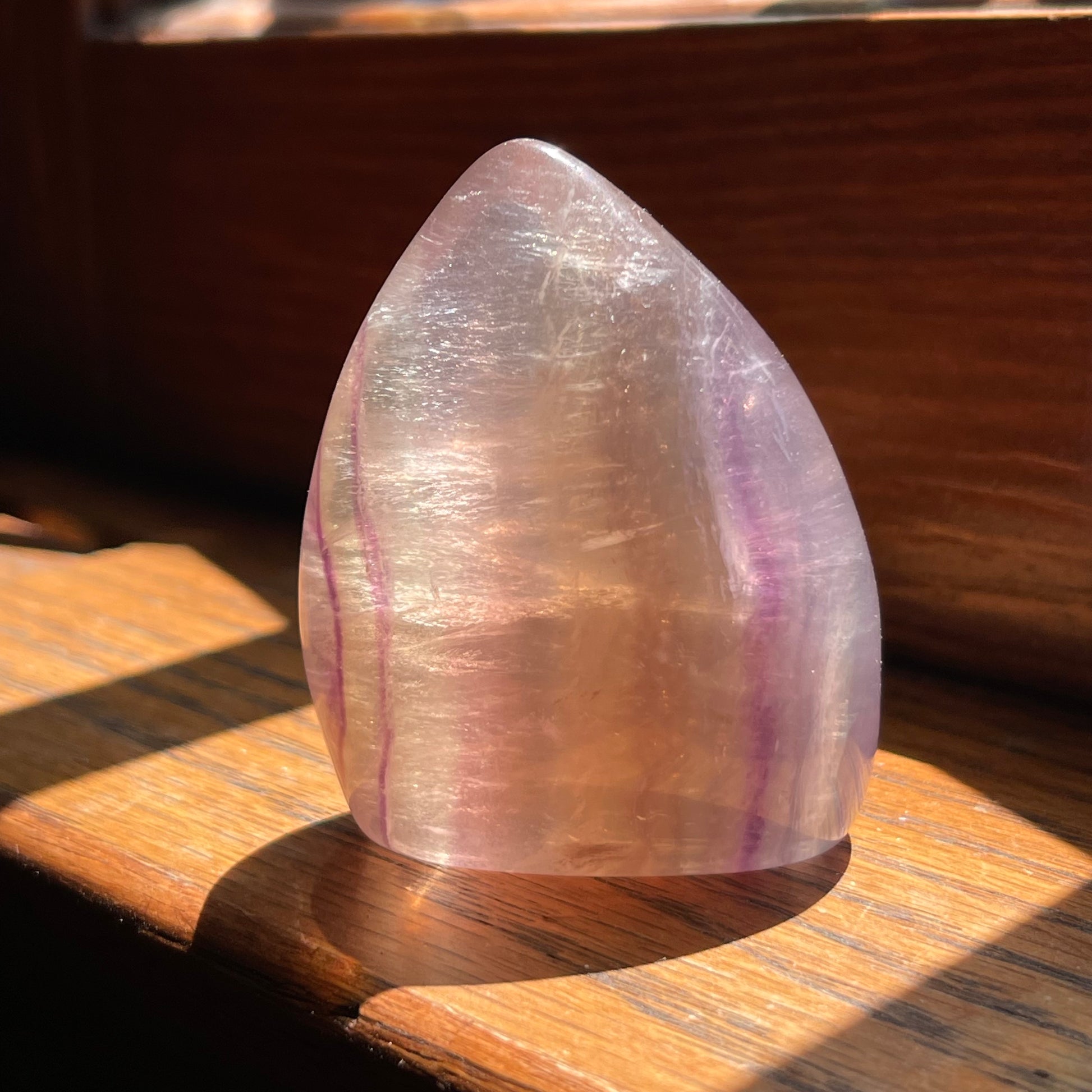 Check out these high-quality fluorite mimi flames that have gorgeous clarity, rainbow reflections and gorgeous banding. They won't disappoint!