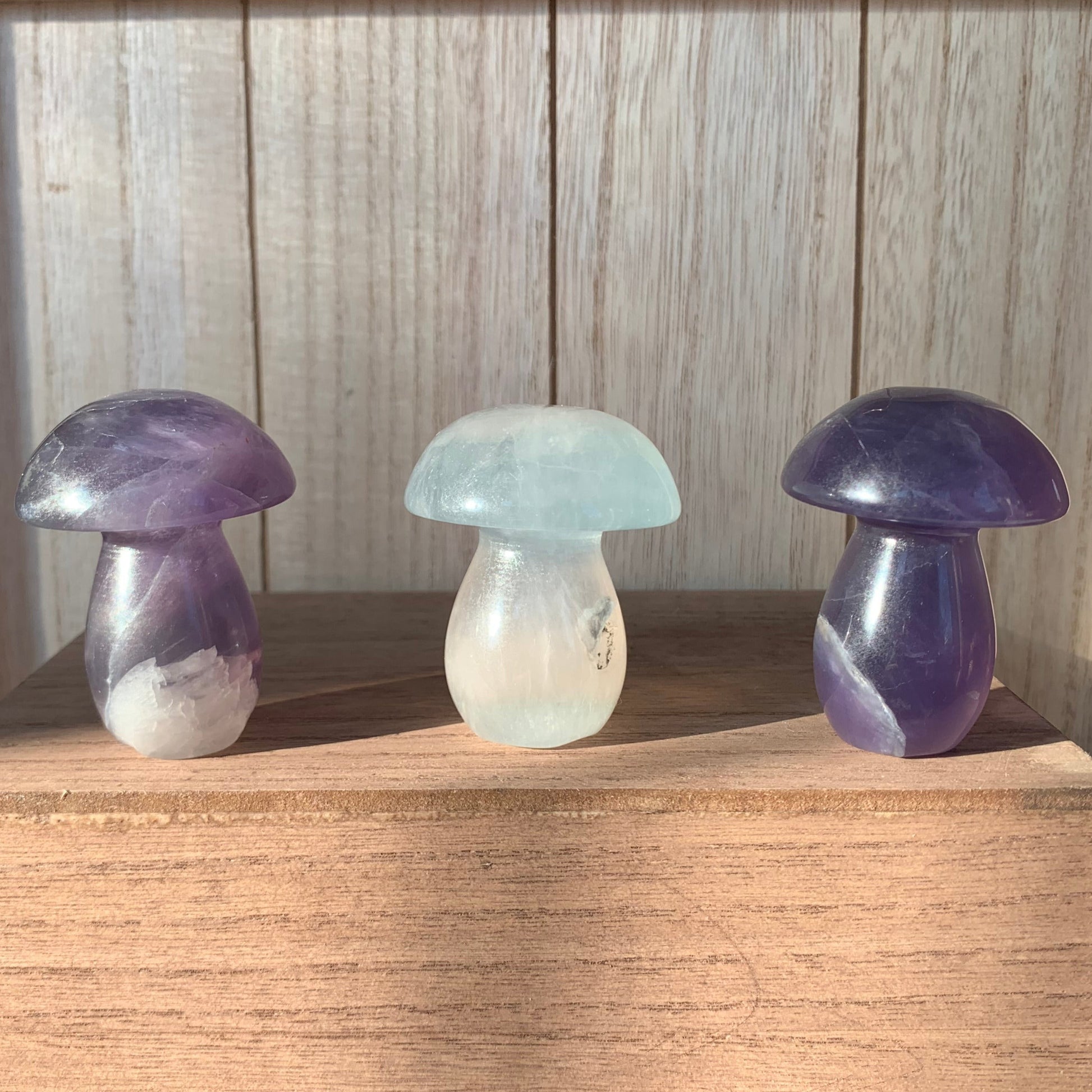 Check out these adorable fluorite mushies! They are all approx. 2.25" tall and come in three sizes (based on weight).