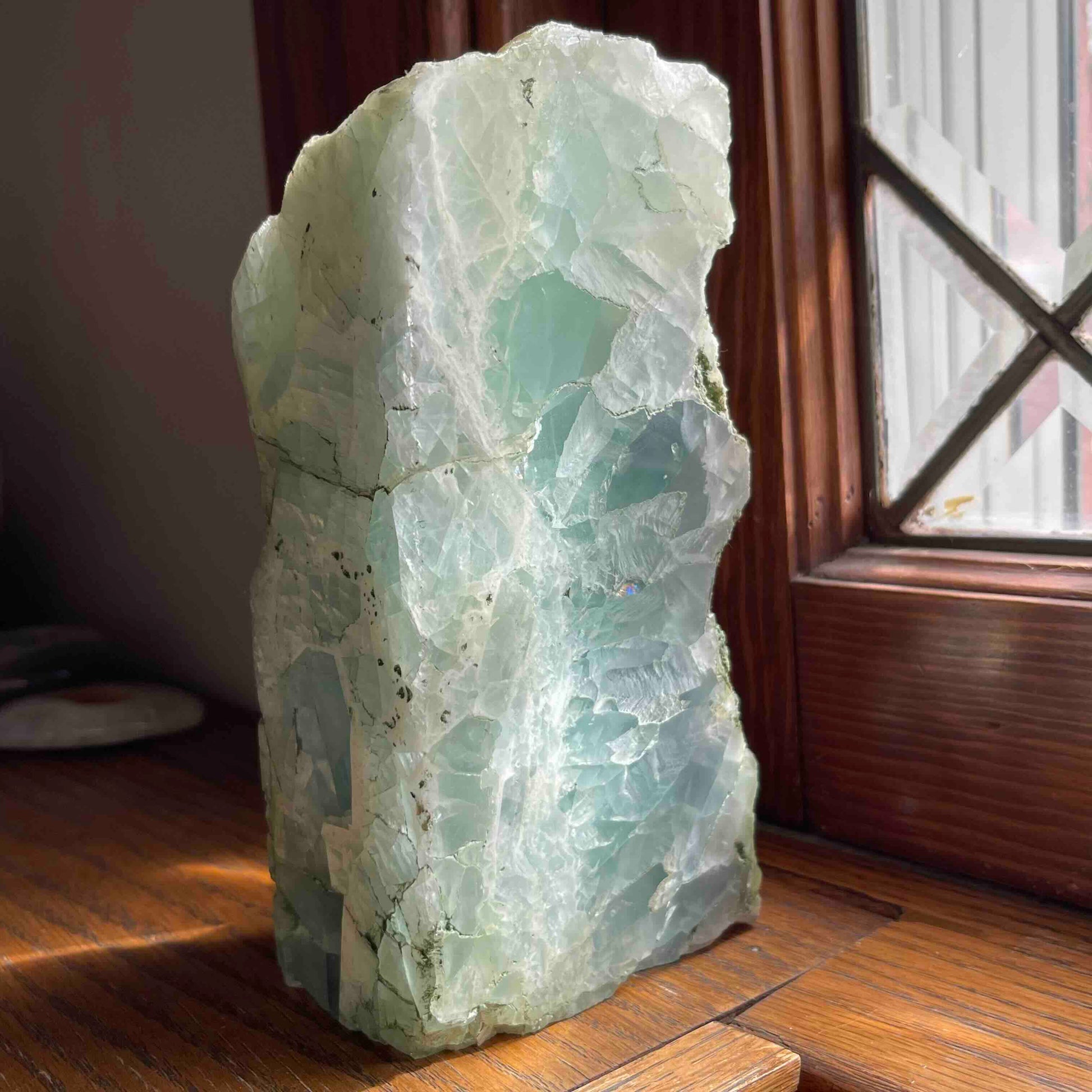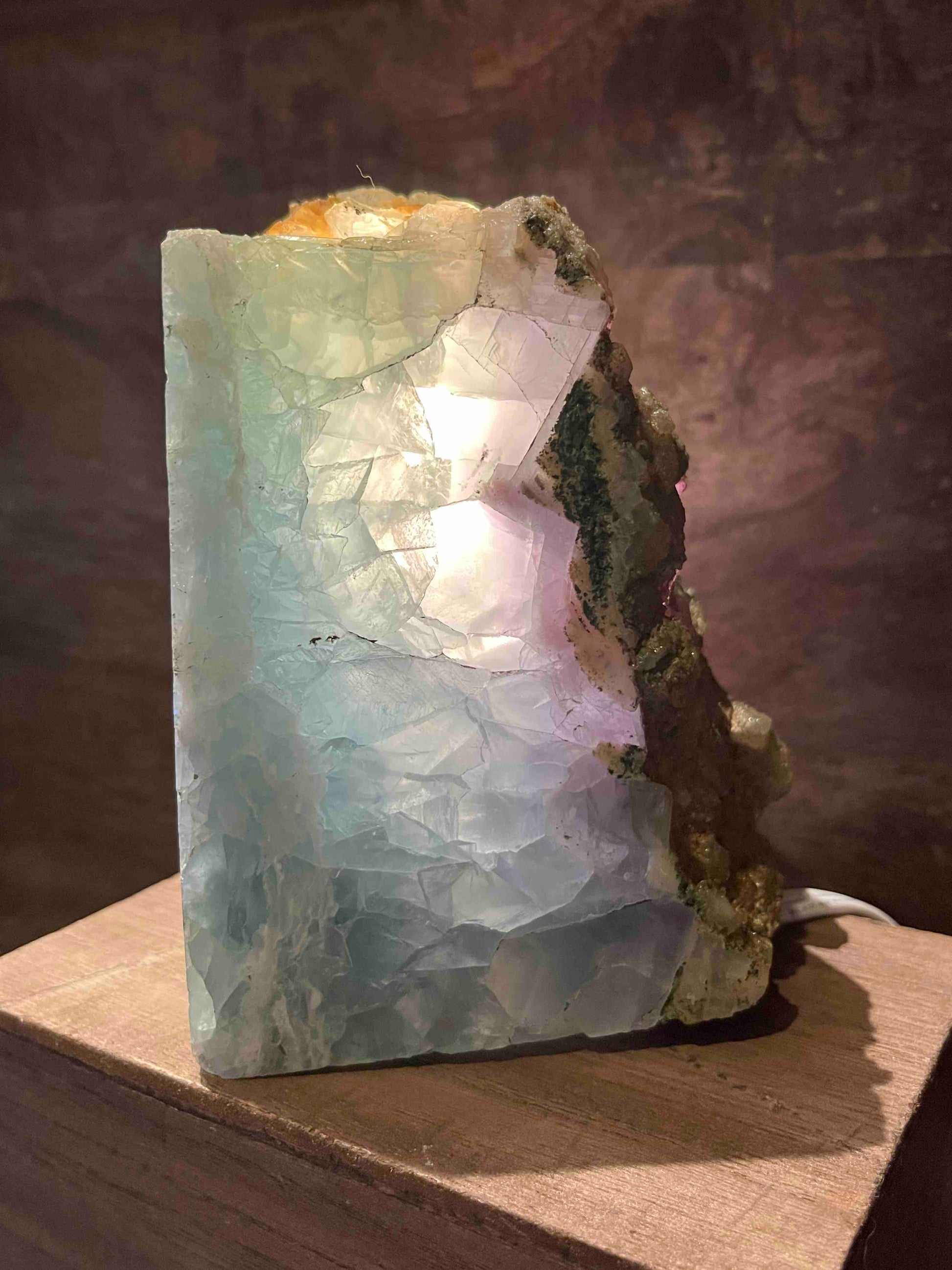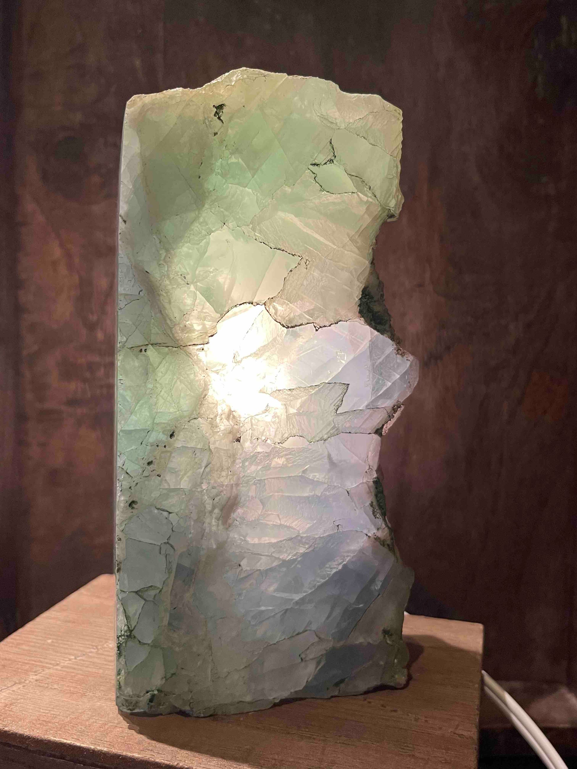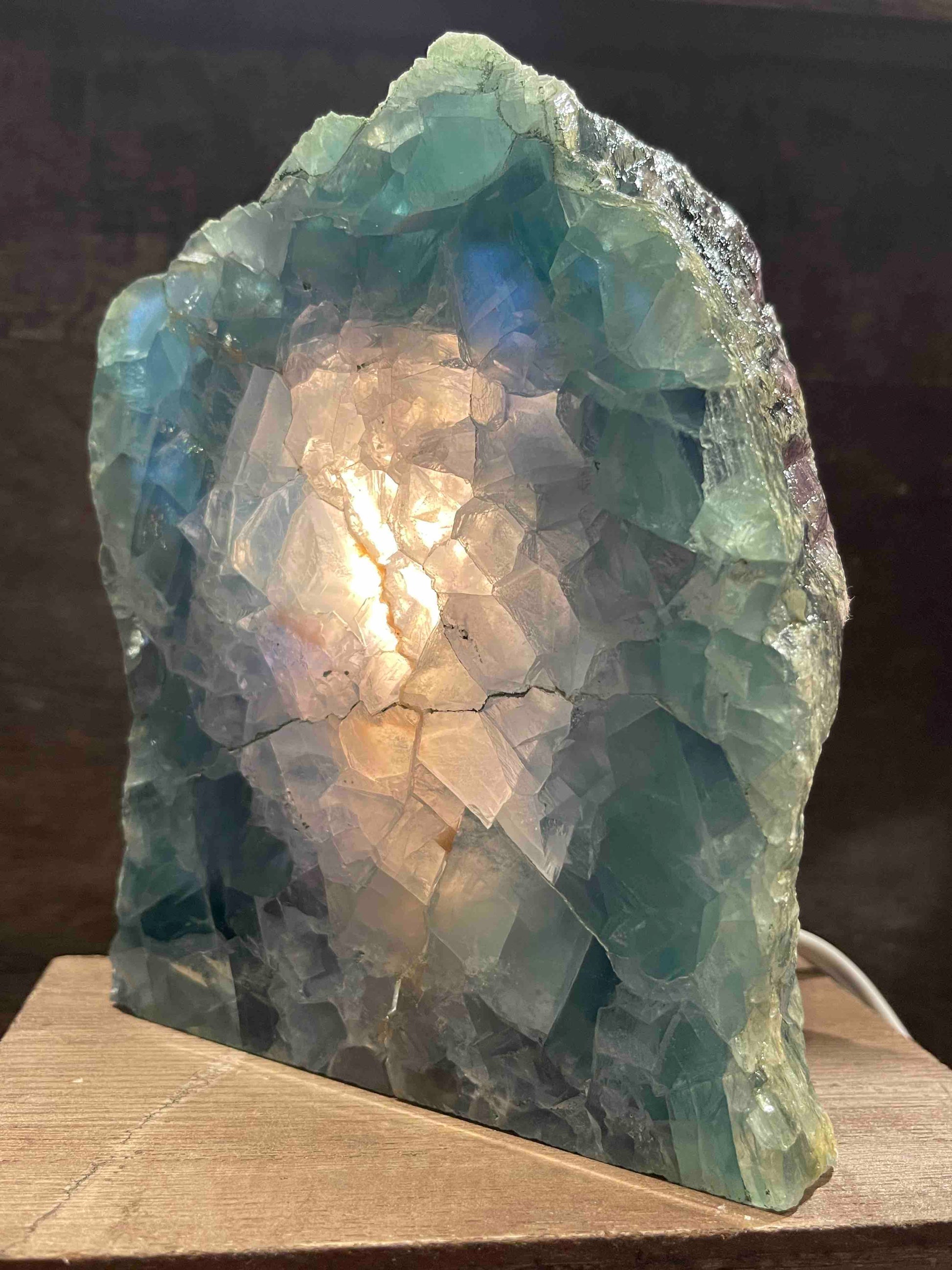Brighten up your space with one of these Mexican Fluorite Lamps. They provide a peaceful glow to any space. Each are unique. They come with a standard plug, lightbulb not included.