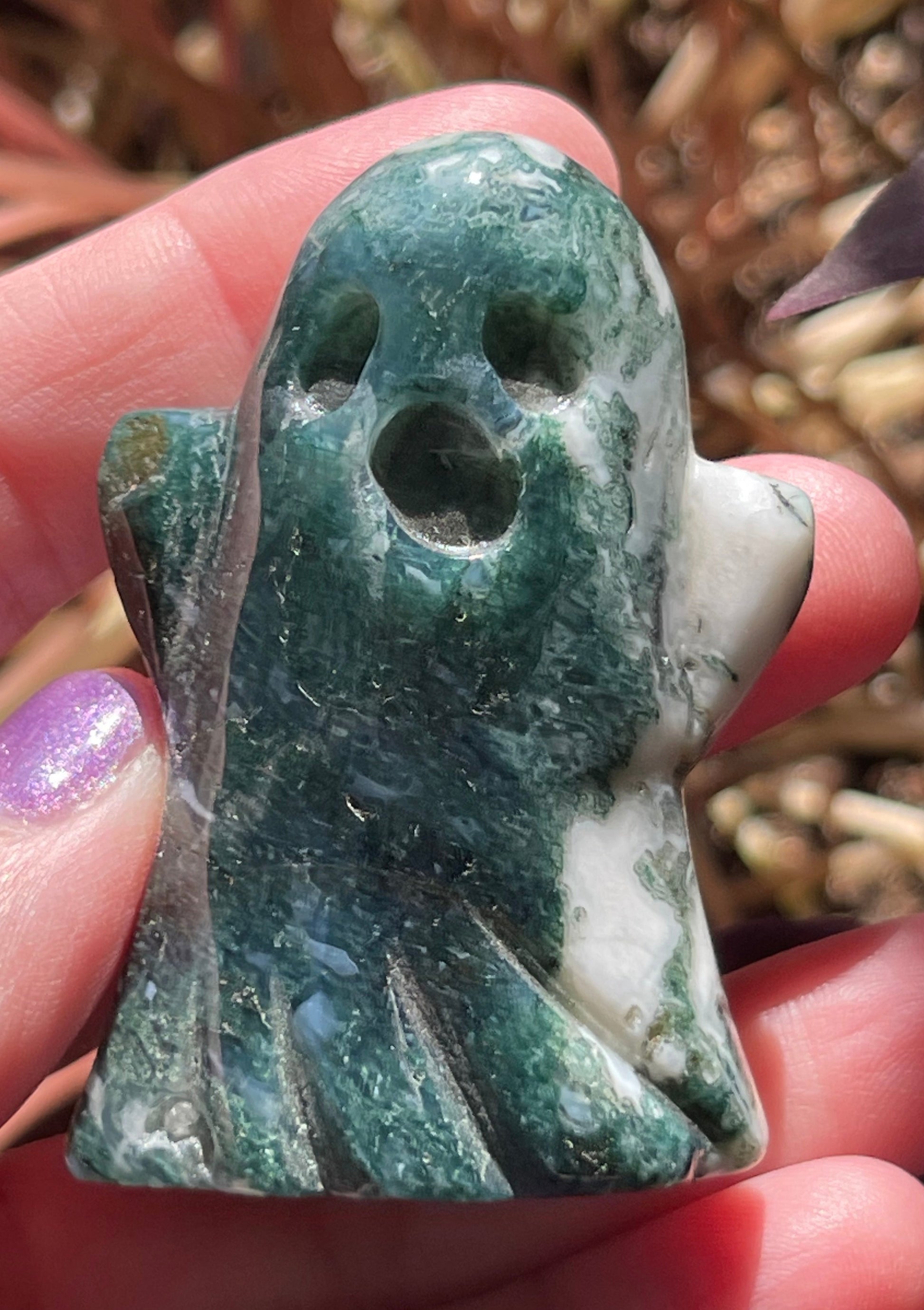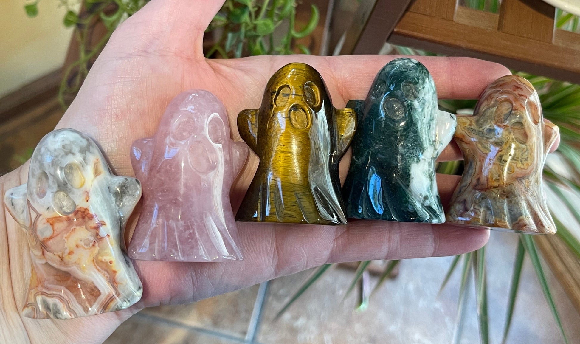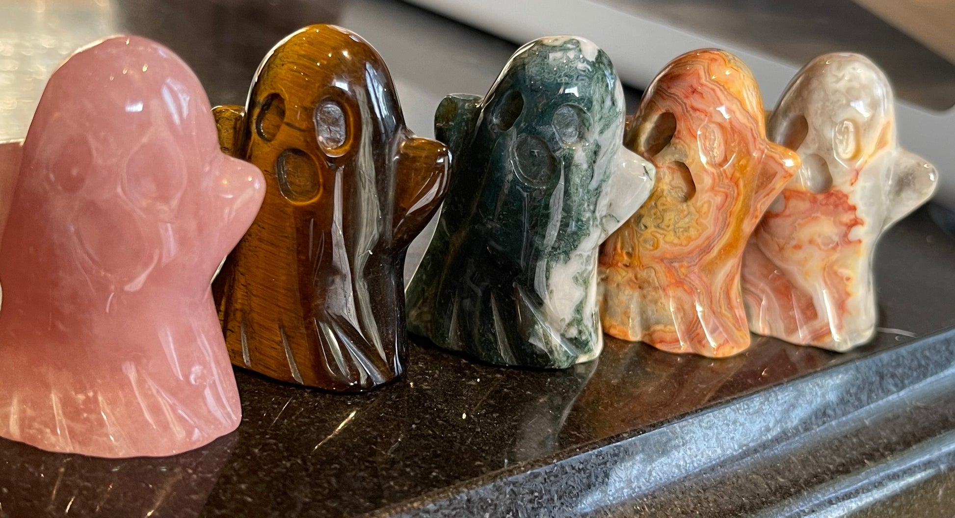 Ghost Carvings: Crazy Lace Agate (Orange or White), Moss Agate, Rose Quartz or Tigers Eye