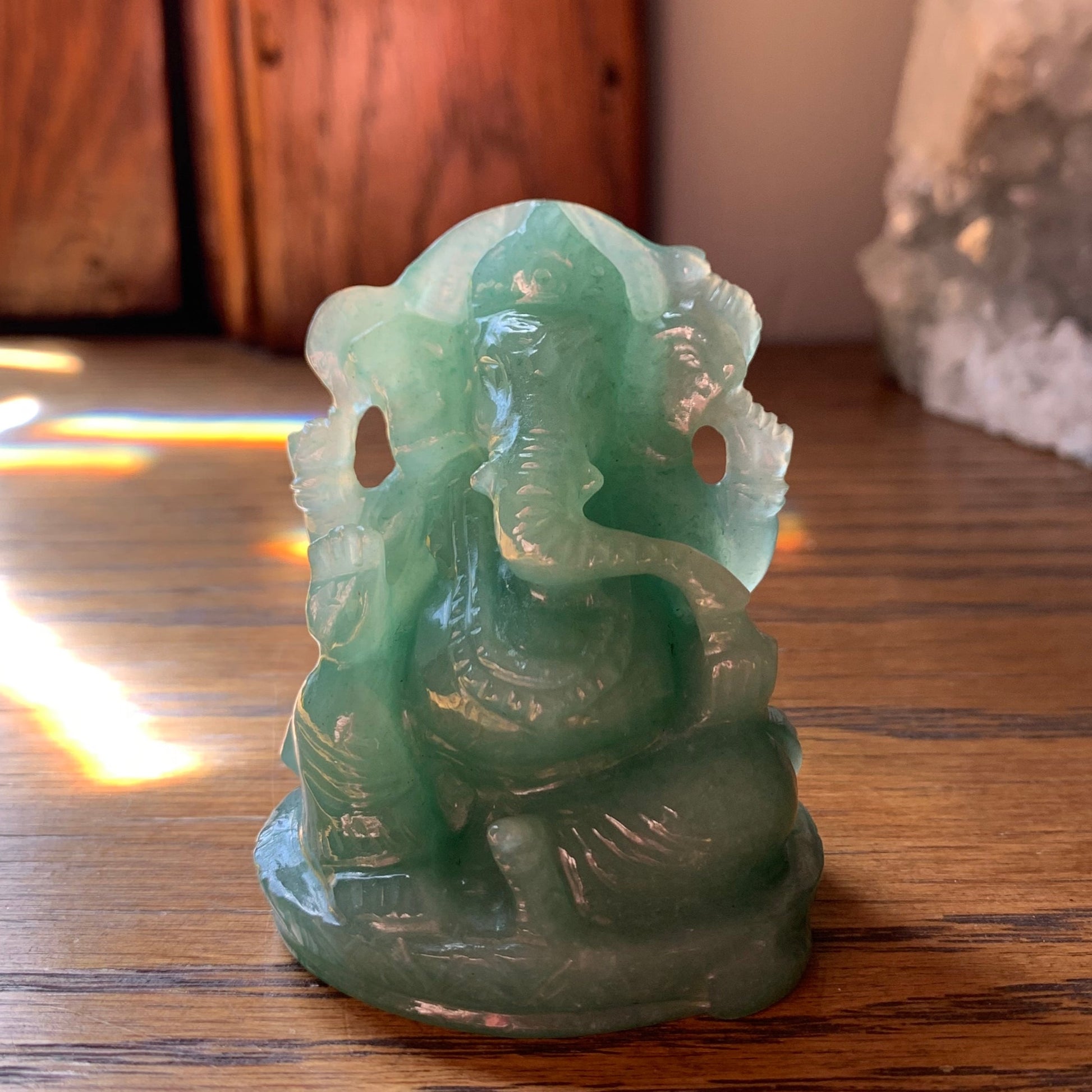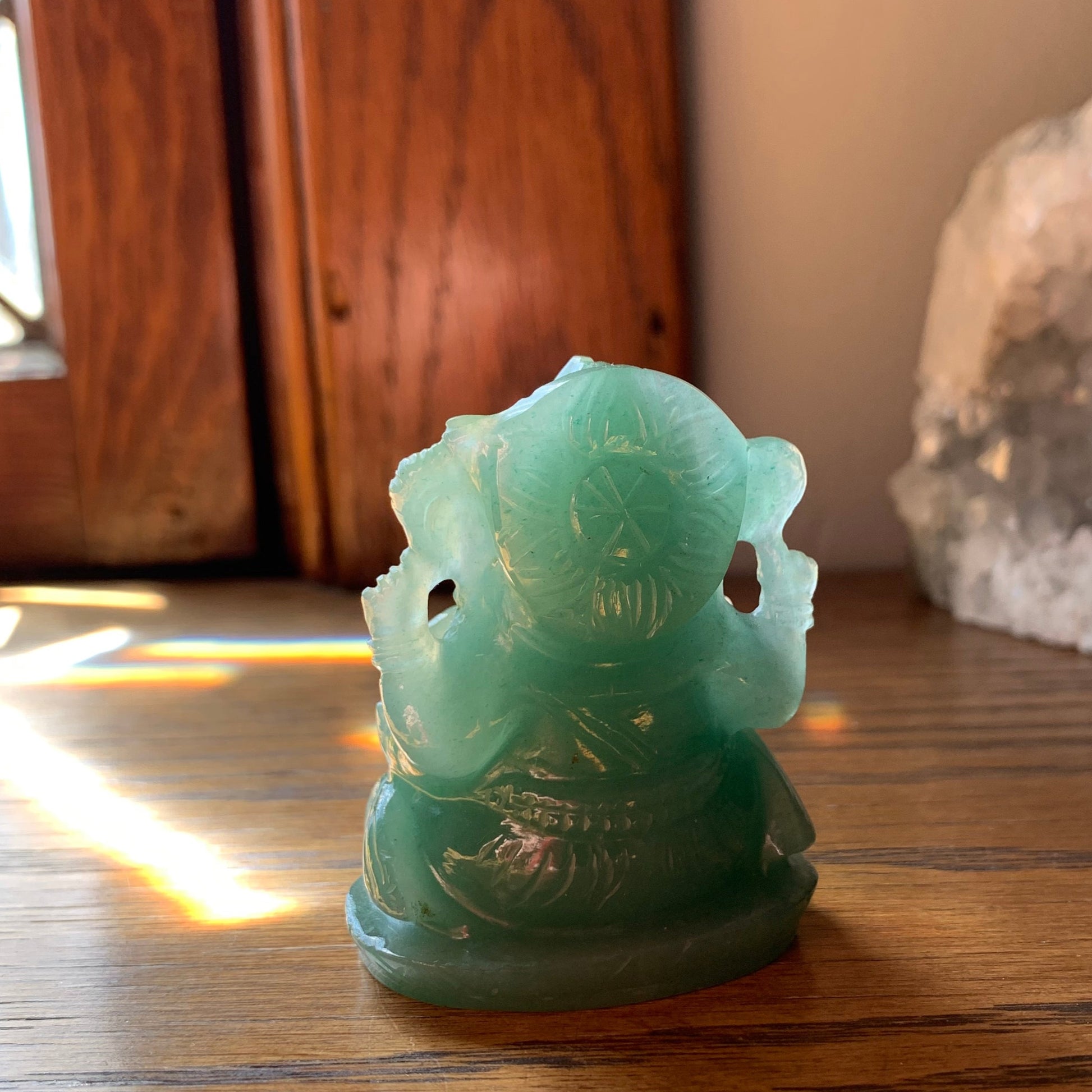 We are so honored to offer this hand carved Lord Ganesha carving from India made of Green Aventurine.