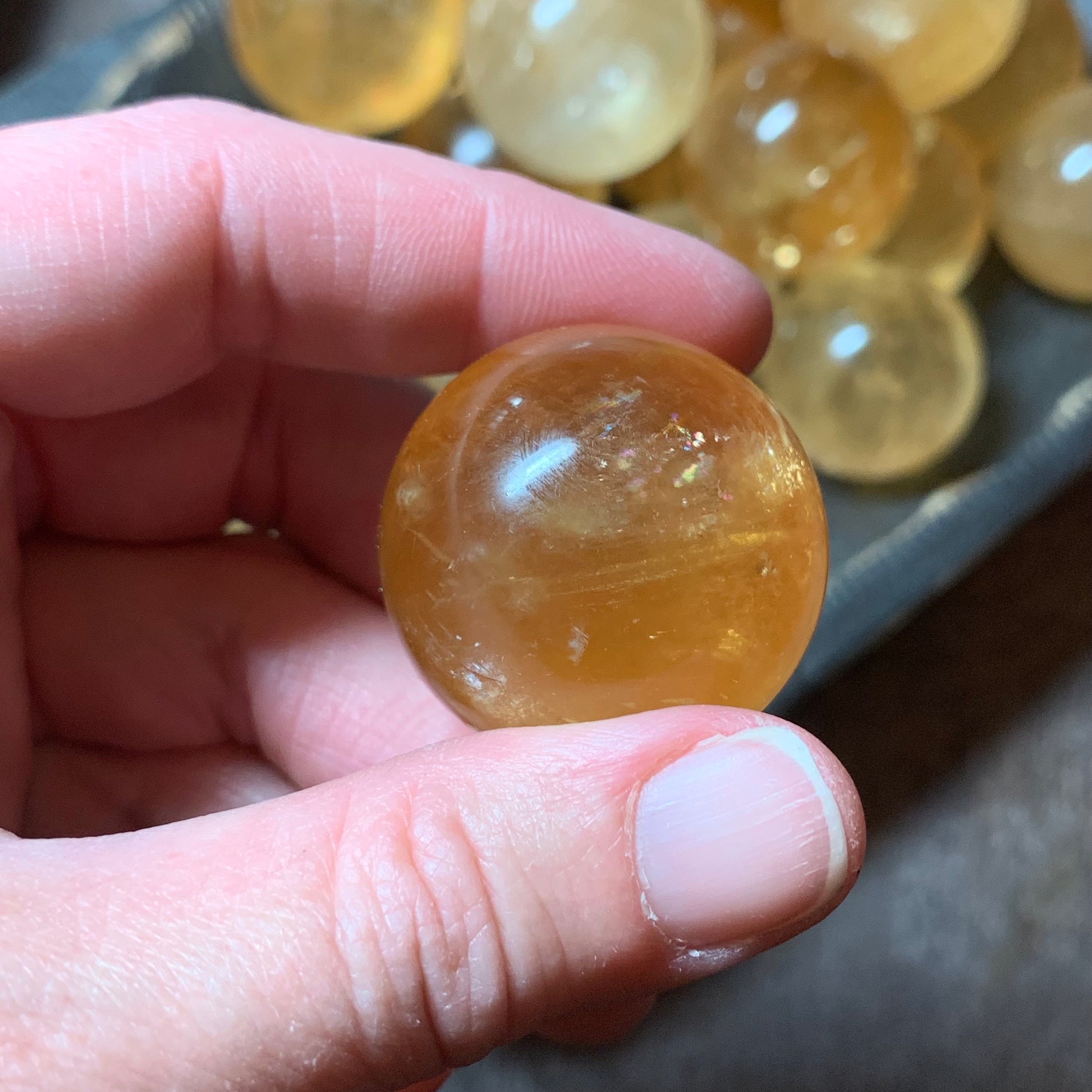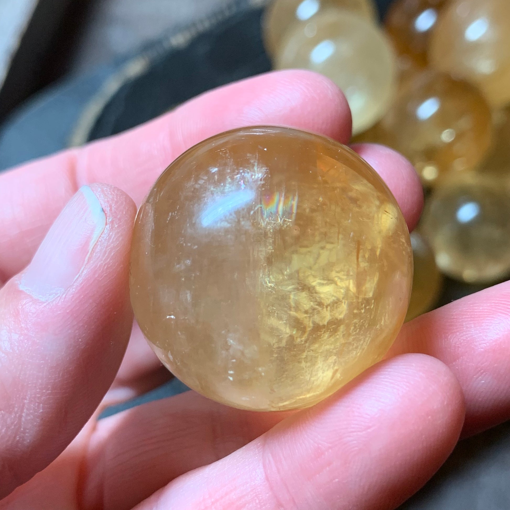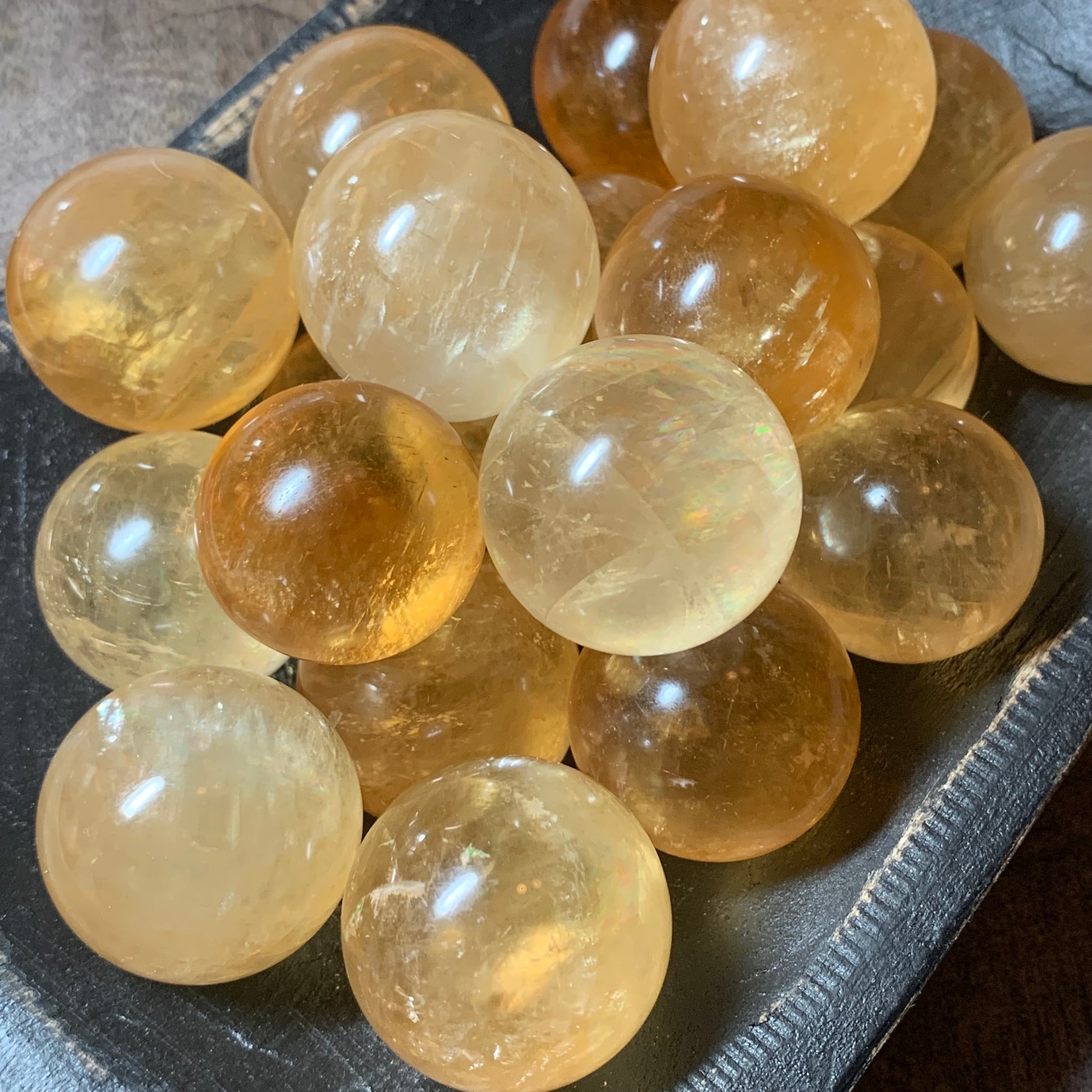 We adore these honey and rainbowed Honey Calcite spheres. Each one is absolutely gorgeous and has the most unbelievable clarity and amazing color.