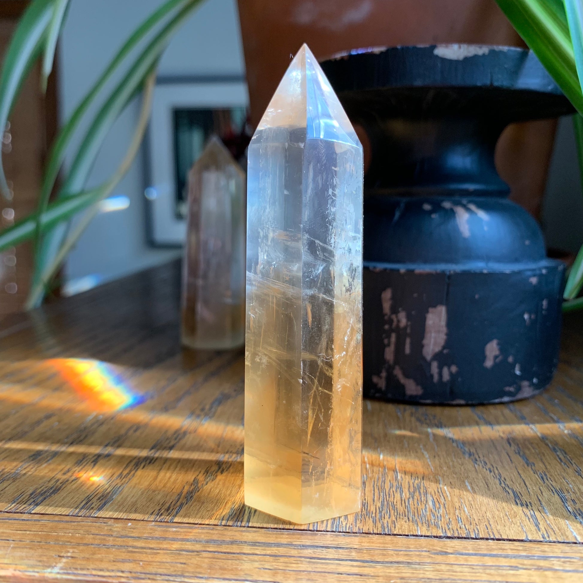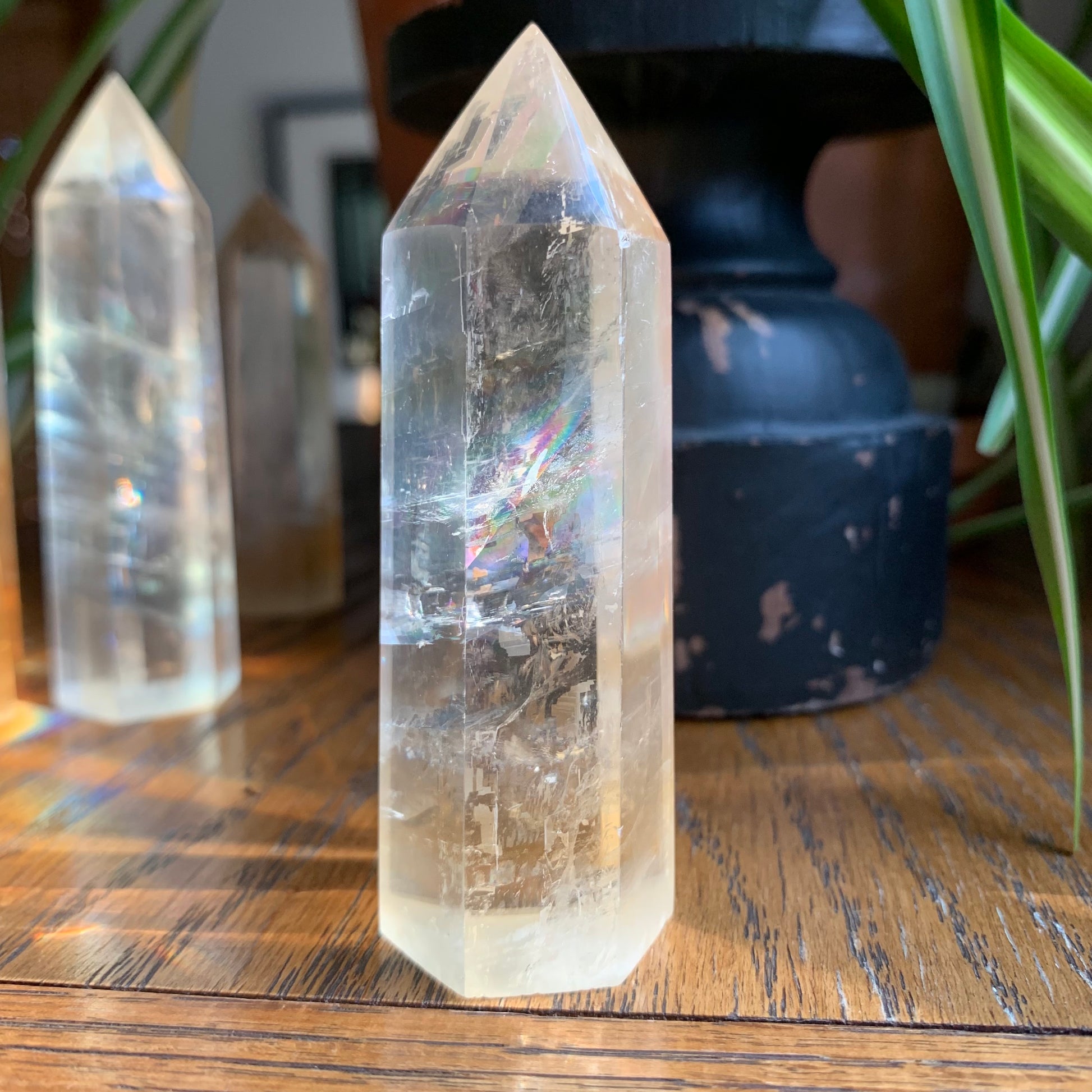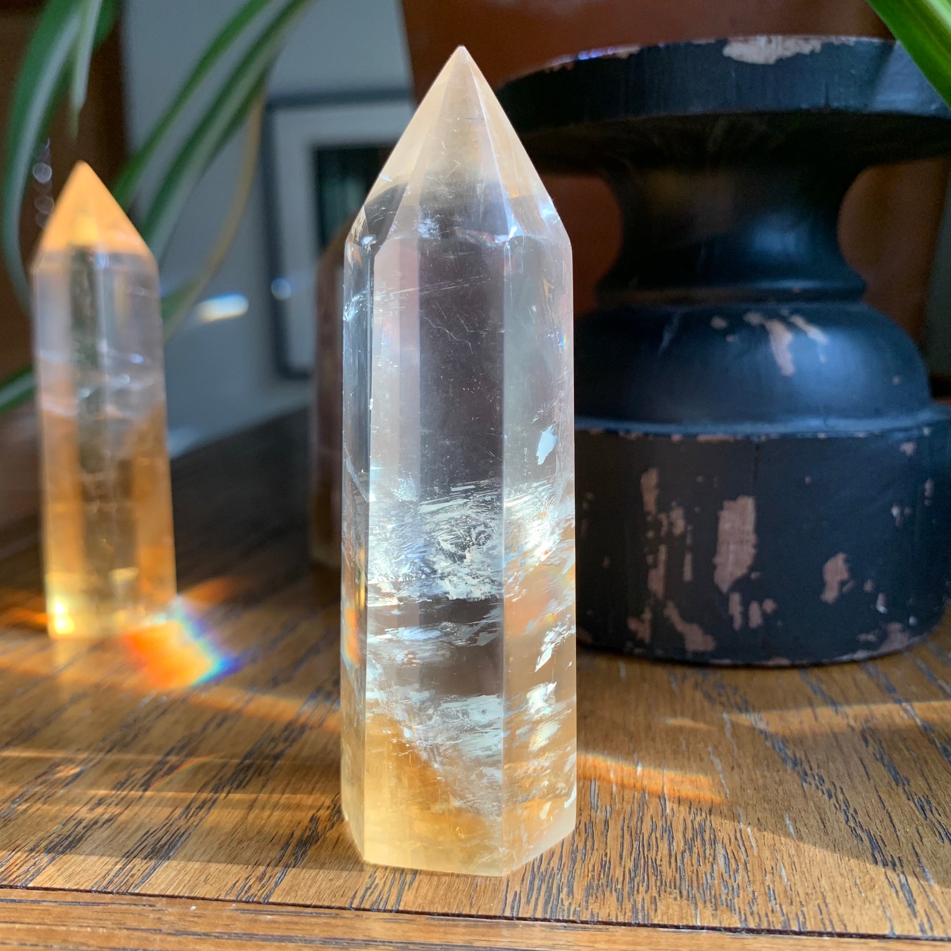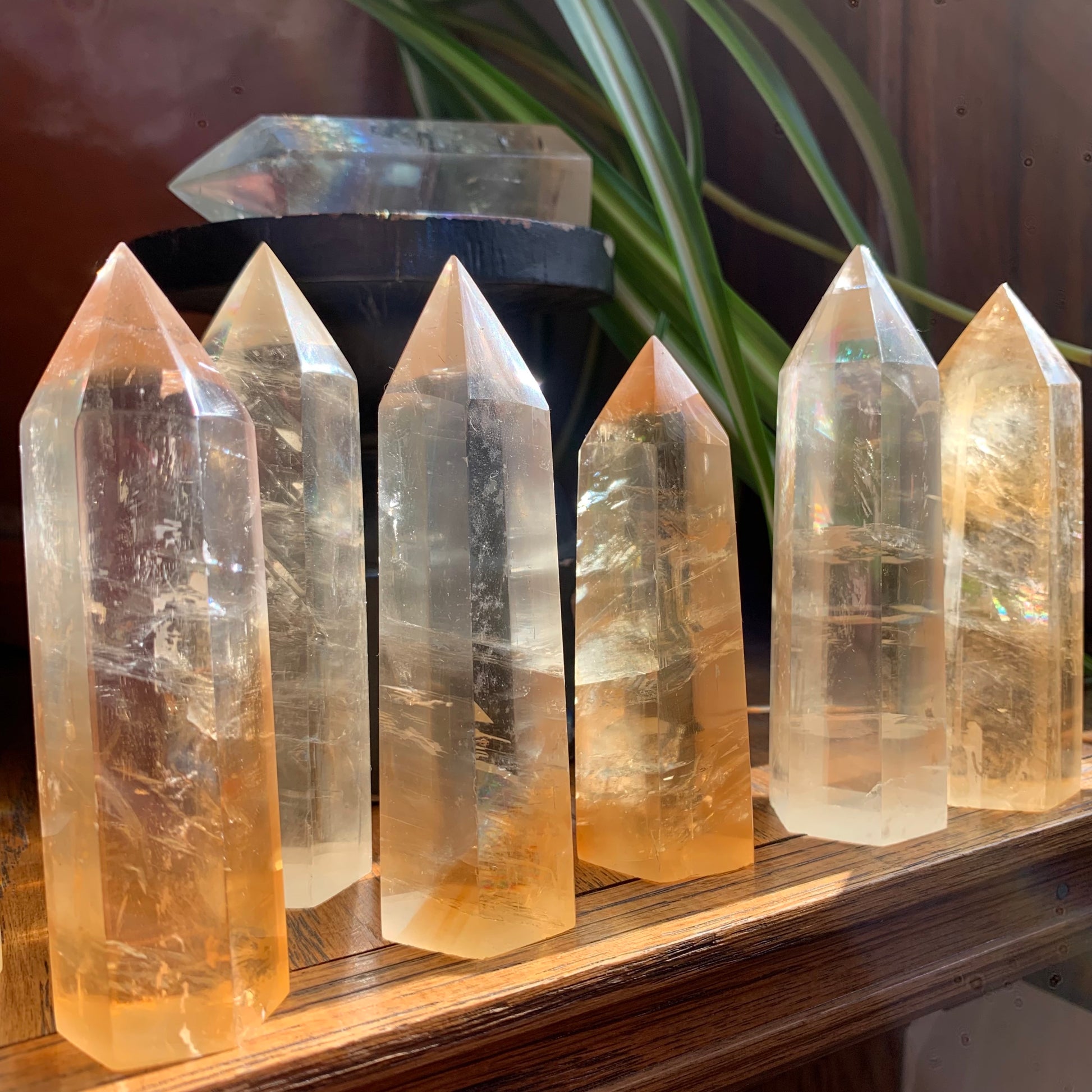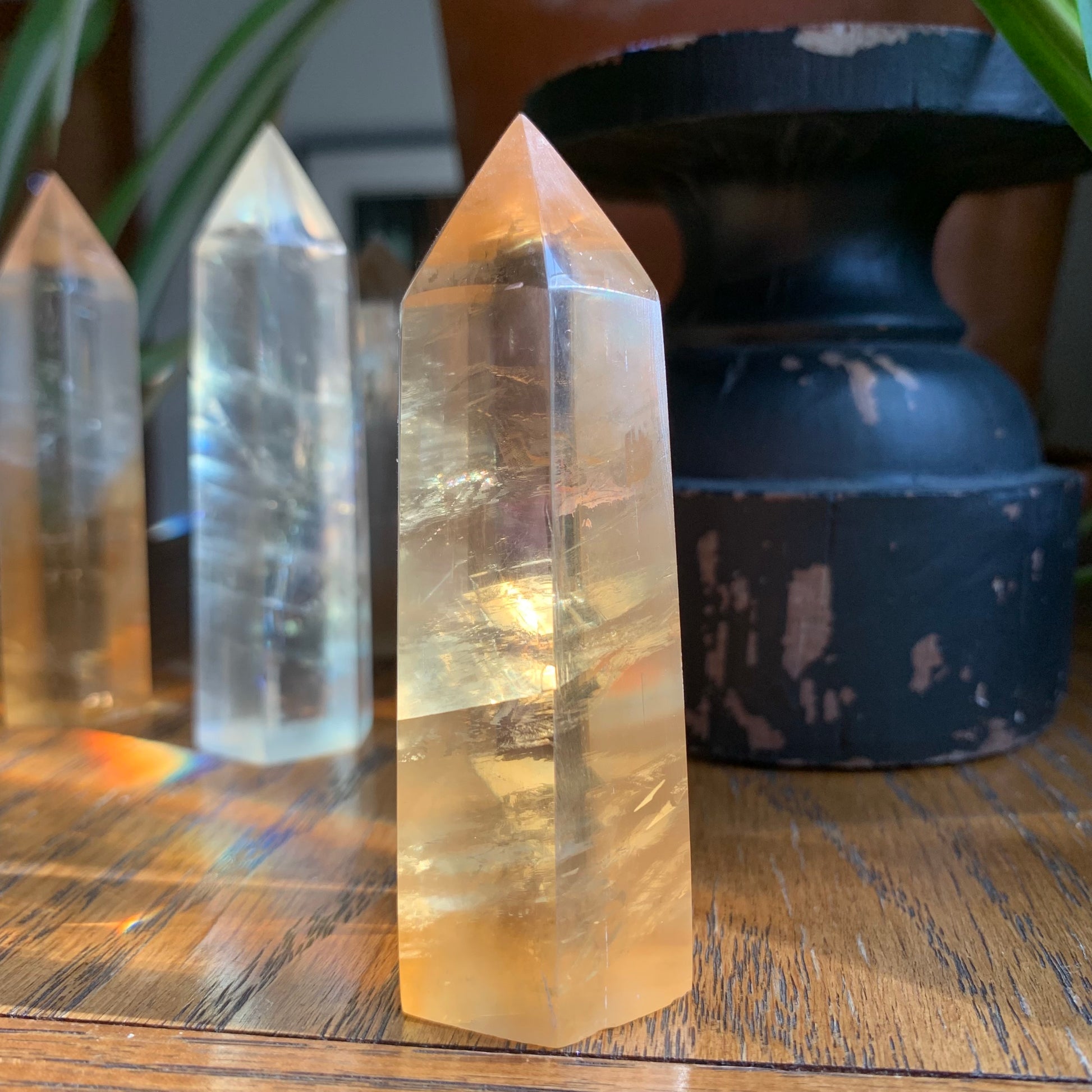 These icy, rainbowy and Honey Calcite towers are to die for. They are such stunners and so amazing with their rainbows, clarity, zoning and all around amazing-ness.