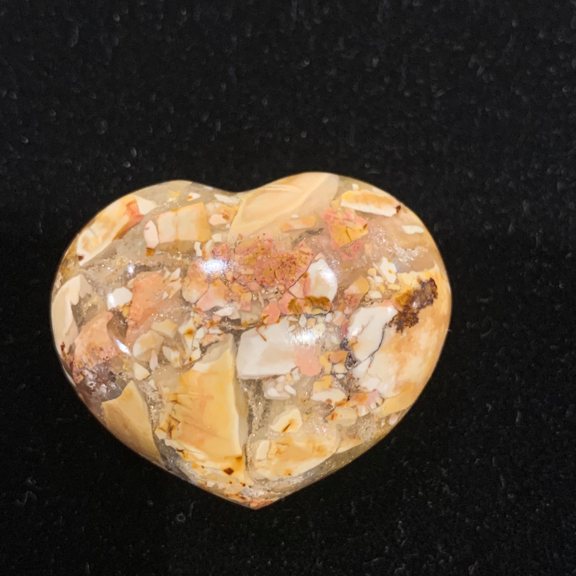 These adorable Ibis Jasper Hearts make your heart melt! They are the perfect puffy size at 1.5" w x 1.3" h with beautiful color, druzy, quartz and sparkle.