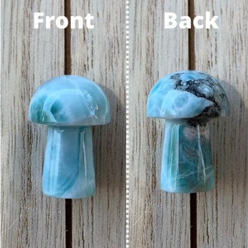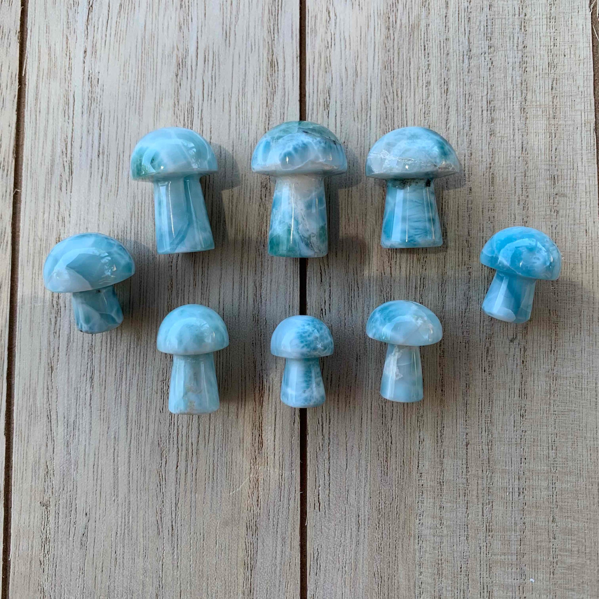 These Larimar Mushrooms are things that dreams are made of! They are made of the same batch of Larimar from our moons and points. They are so amazing! We only have a few so pick them while you can!