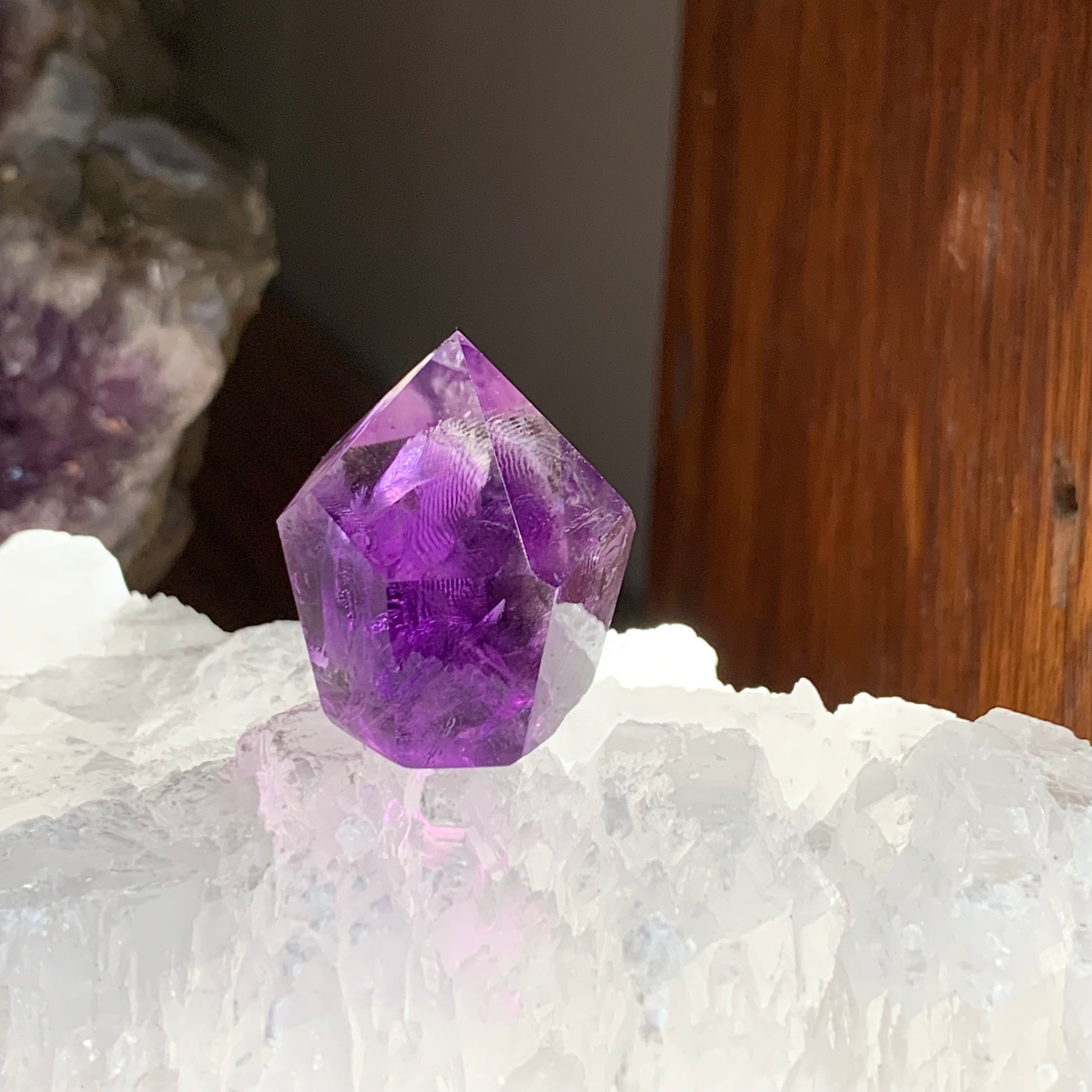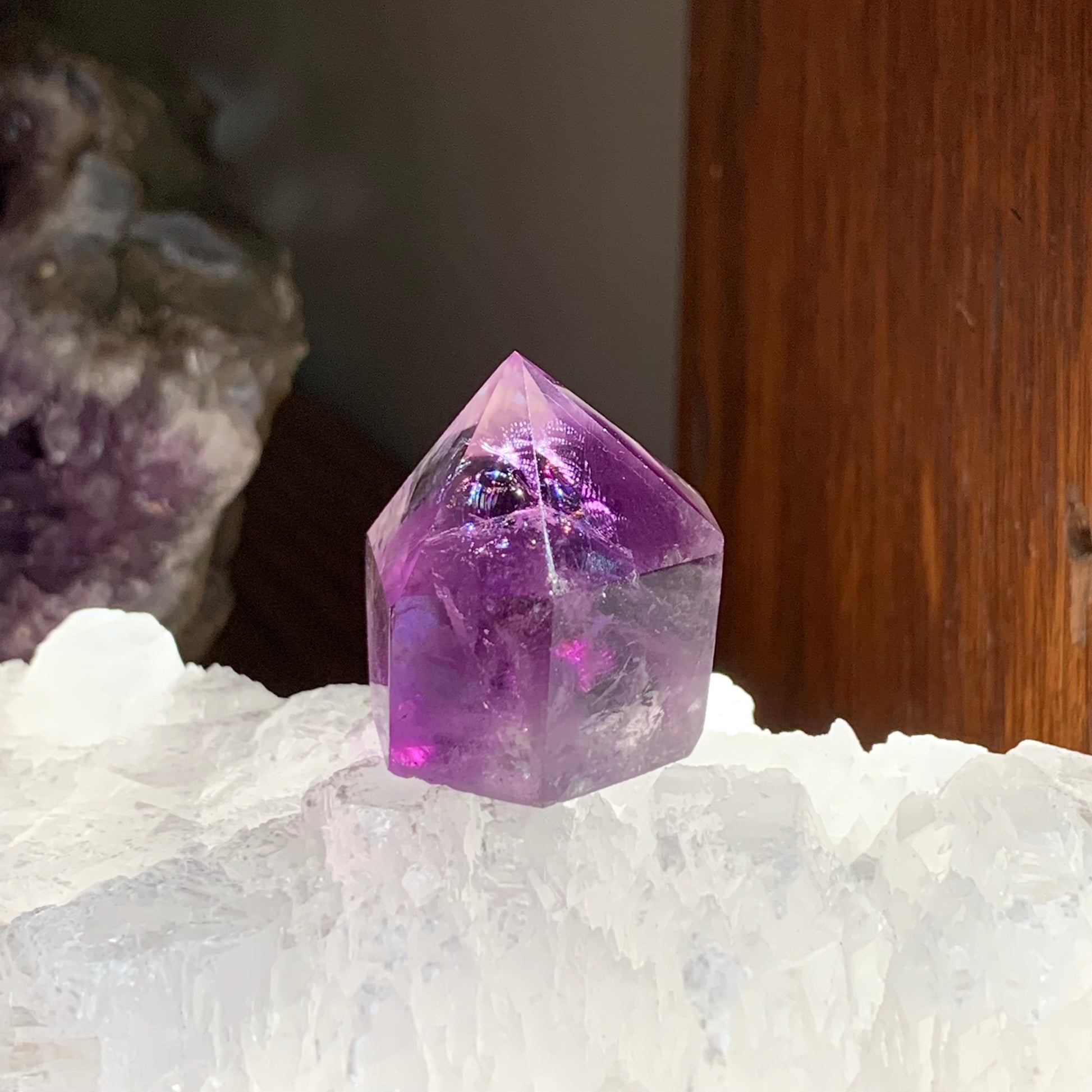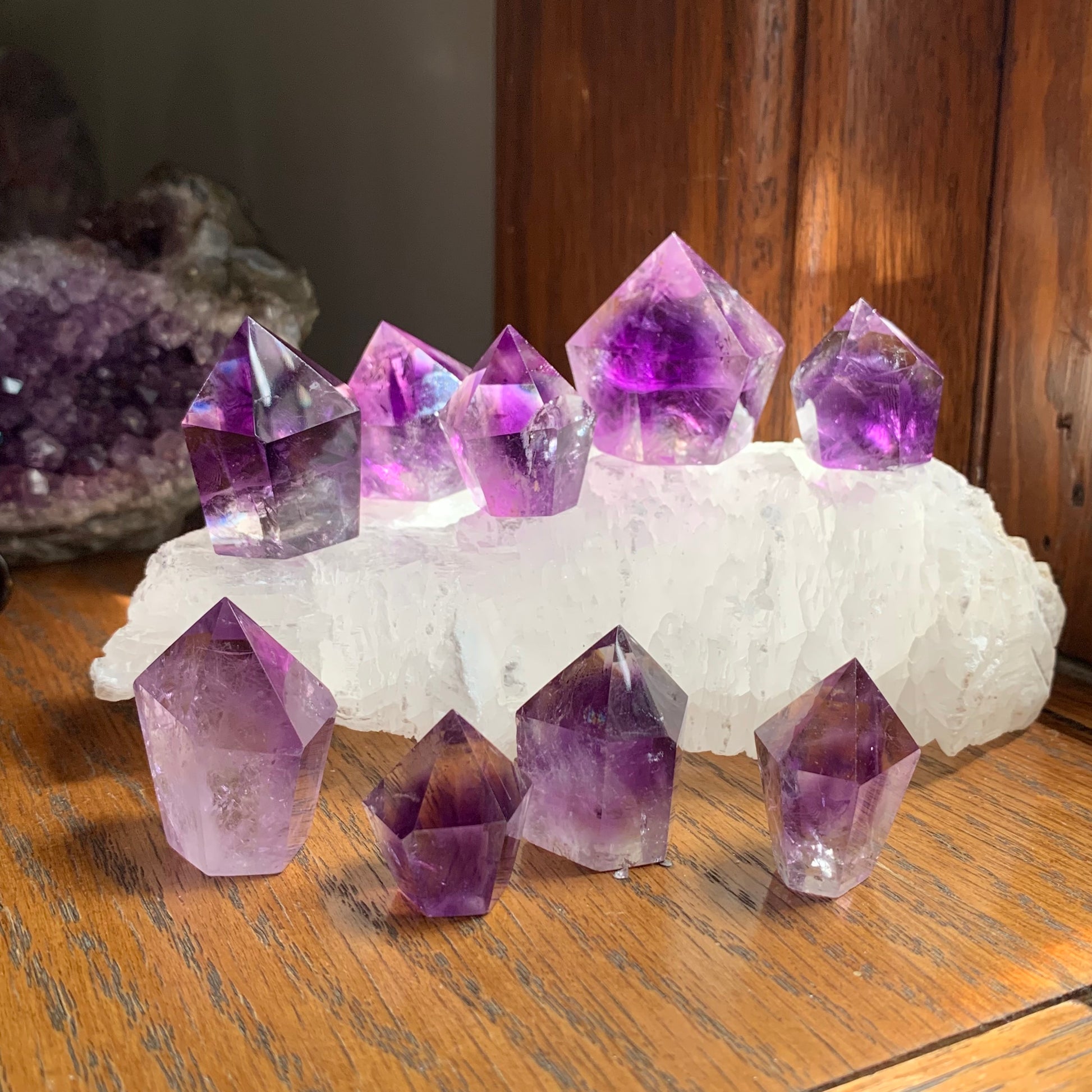 These super sweet Mini Amethyst Cupcake Towers are almost exact duplicates of some of our larger Amethyst Points. These babes each have something unique, whether it is a rainbow, gorgeous phantom or fingerprint inclusions. They are super fun.