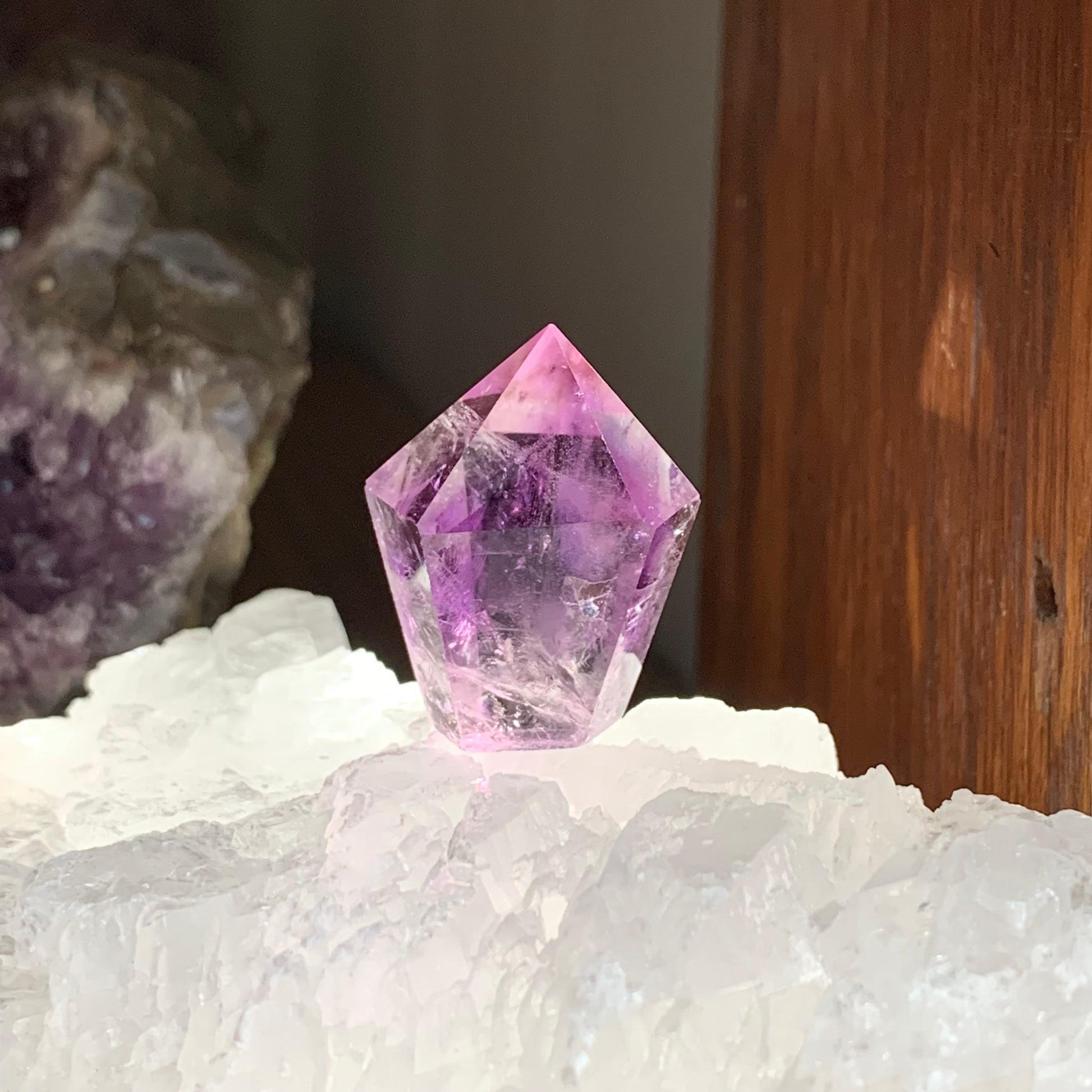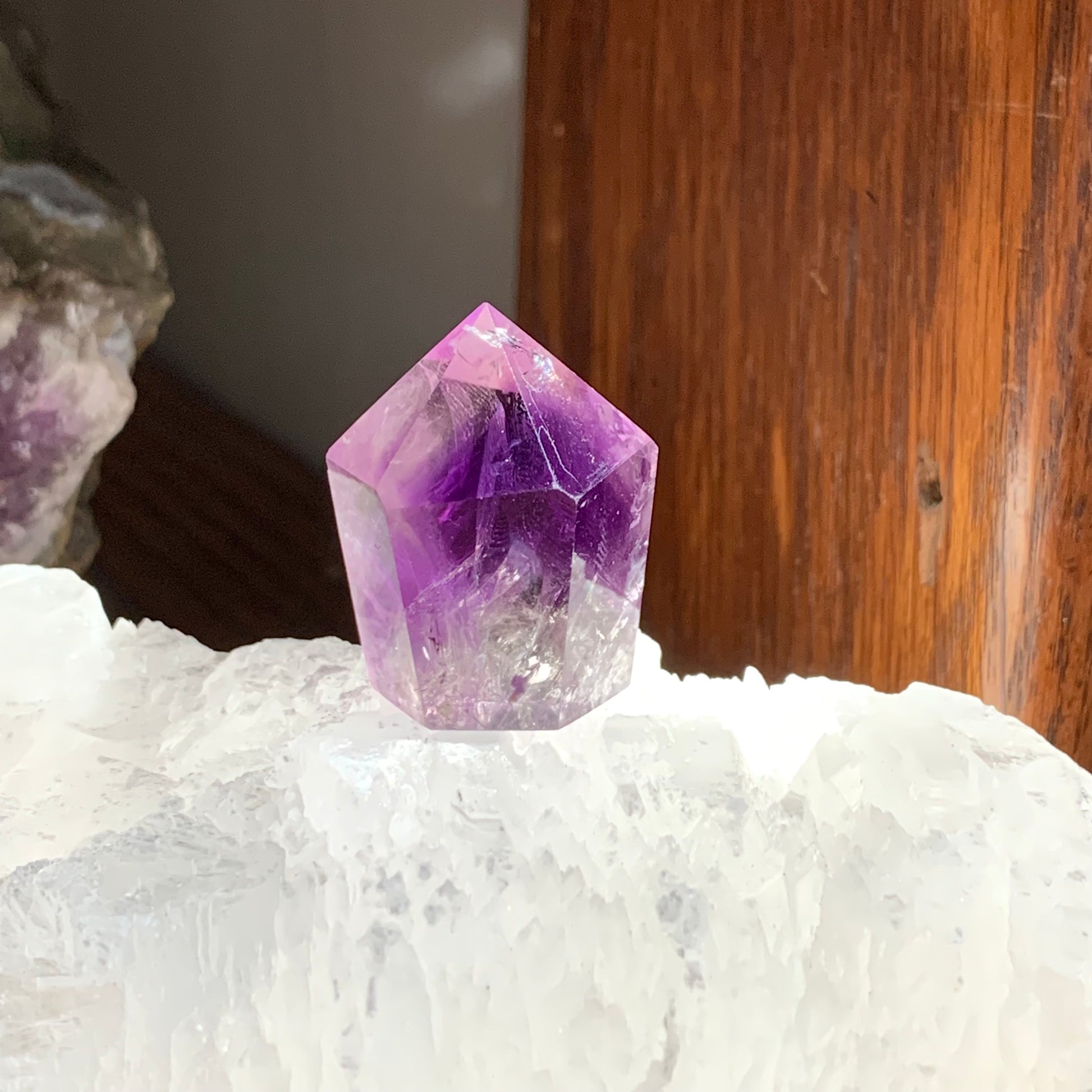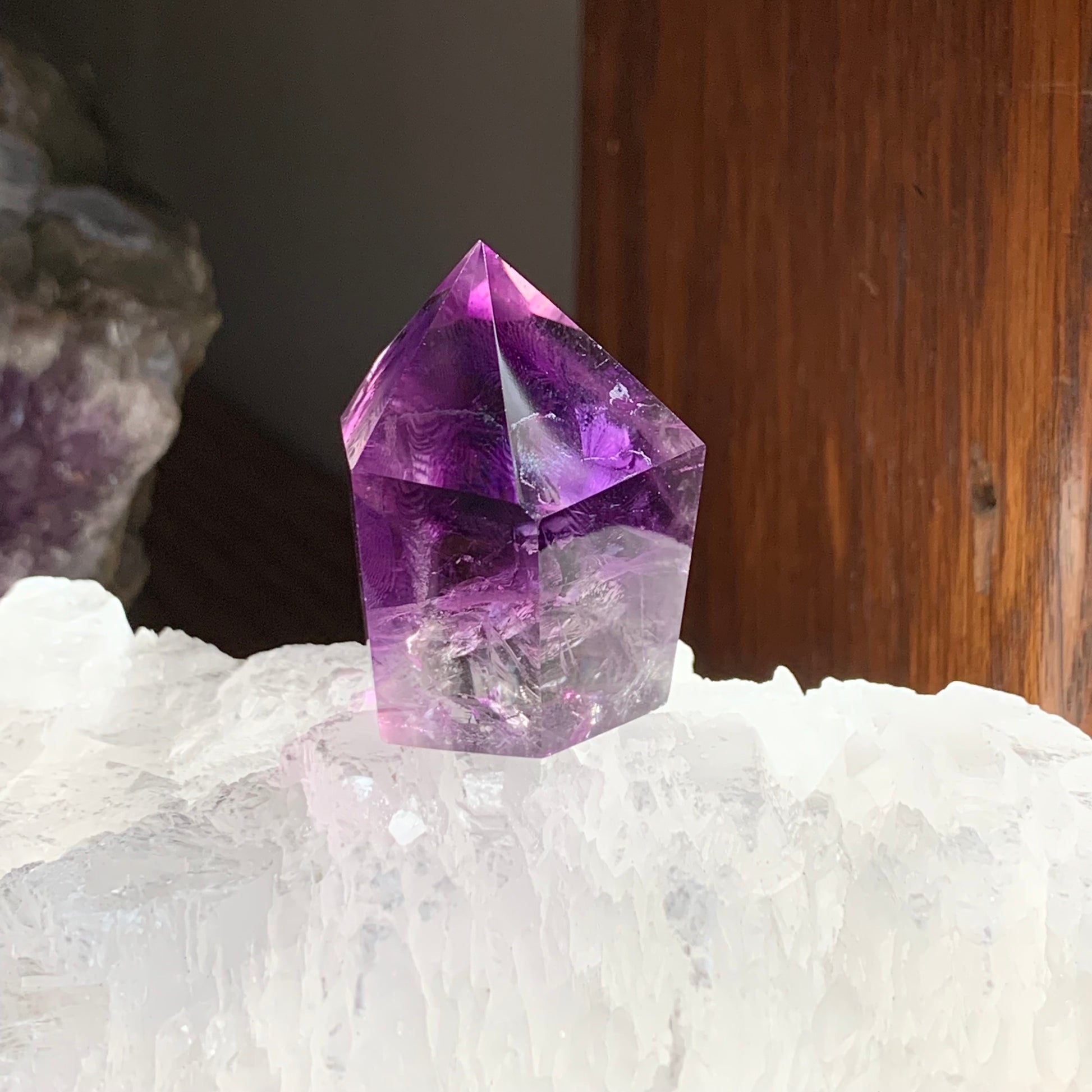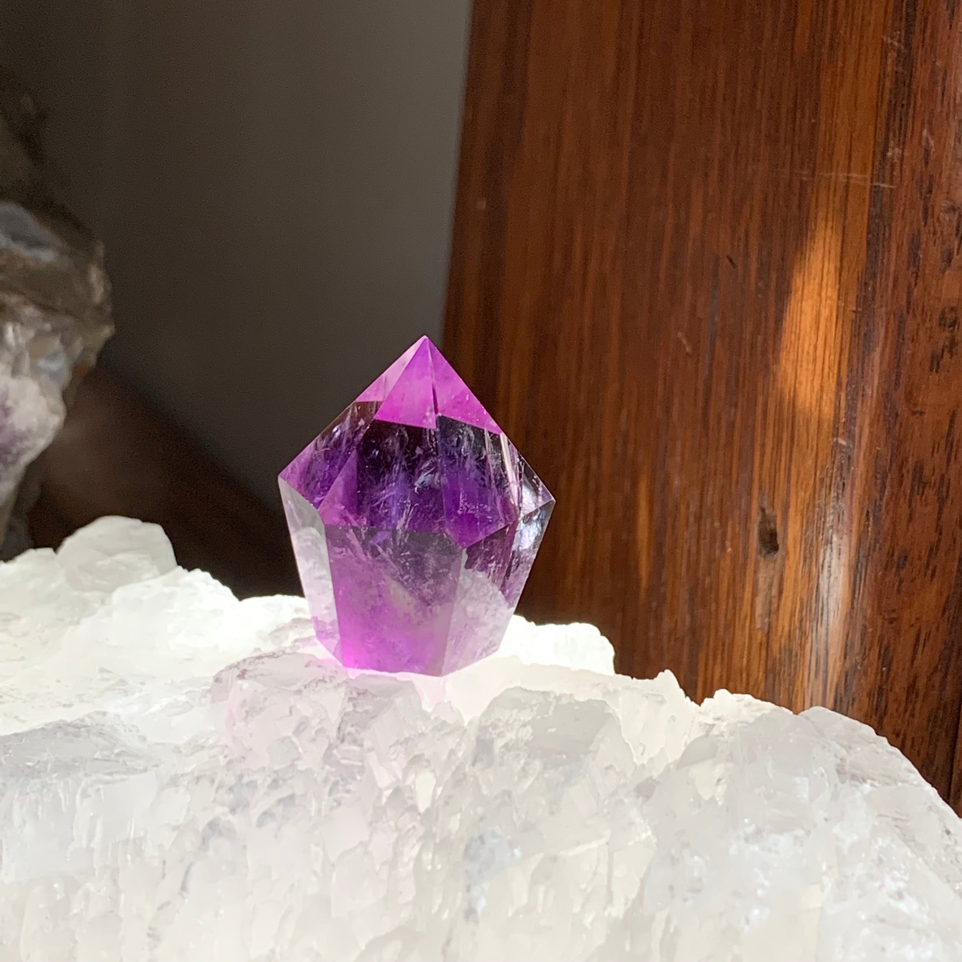 These super sweet Mini Amethyst Cupcake Towers are almost exact duplicates of some of our larger Amethyst Points. These babes each have something unique, whether it is a rainbow, gorgeous phantom or fingerprint inclusions. They are super fun.