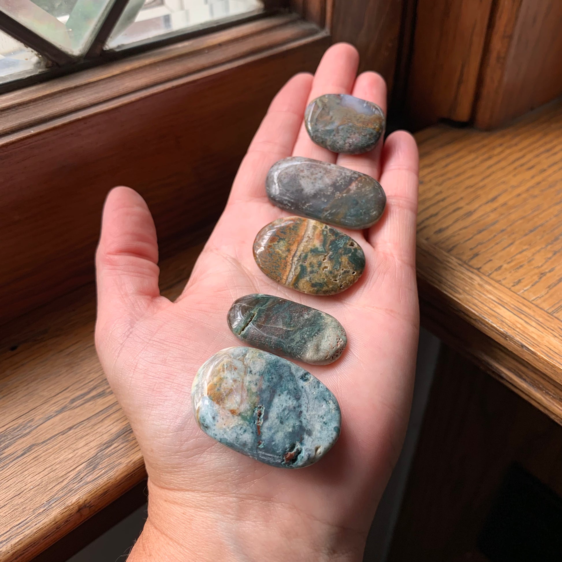 We love these Bahia Jasper Mini Palms from Brazil. They are very earthy and grounding, not to mention adorable