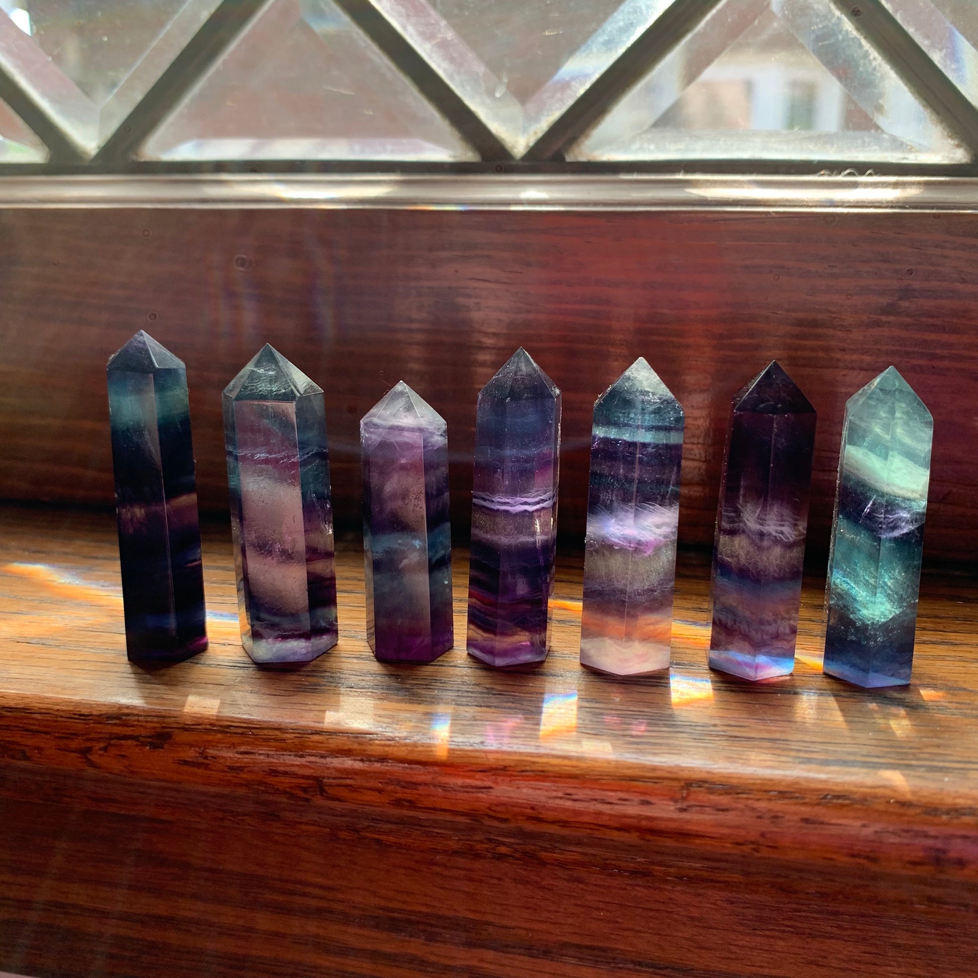 Mini Rainbow Fluorite Towers // 1.75" Gorgeous Clarity + Banding // Intuitively Chosen