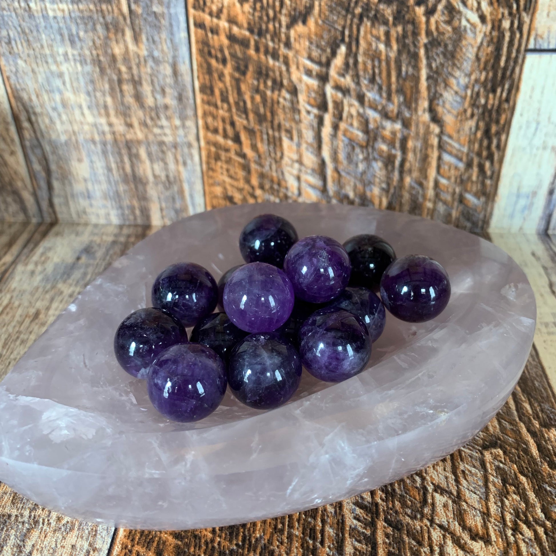 Chevron Amethyst, is a combination of Amethyst and Quartz, mixed to form a V-banded or striped pattern. These cute minis have slight banding and are a deep purple color.